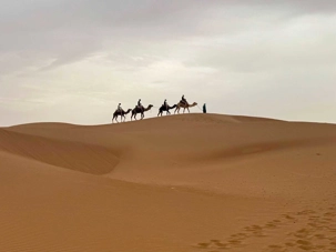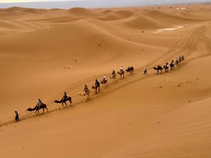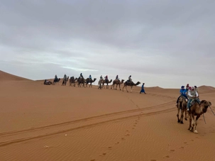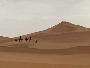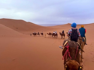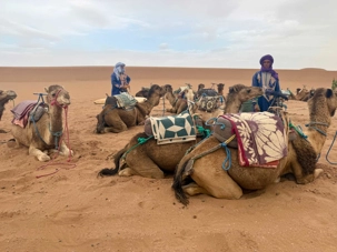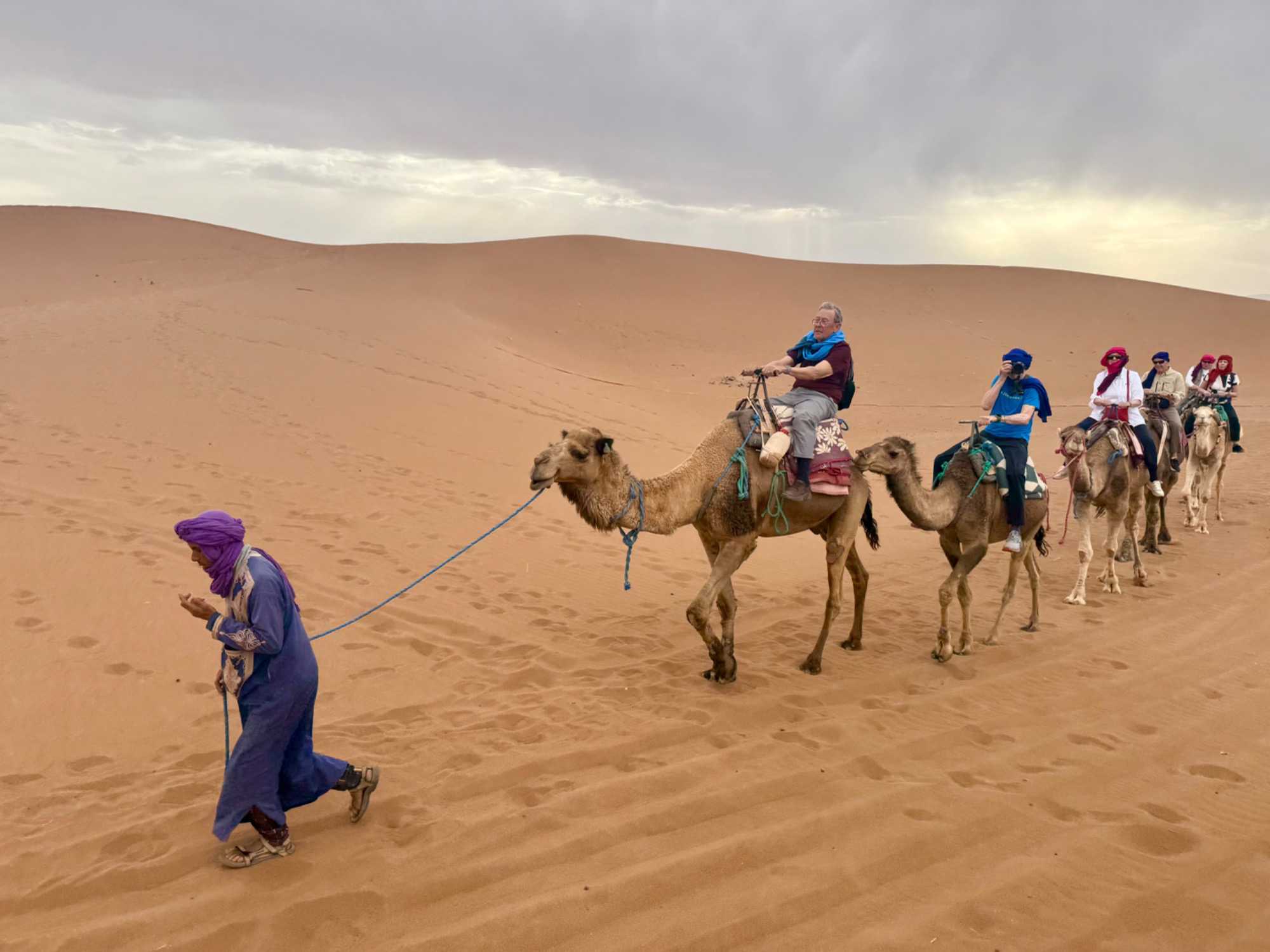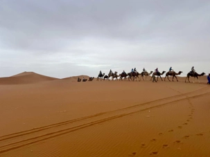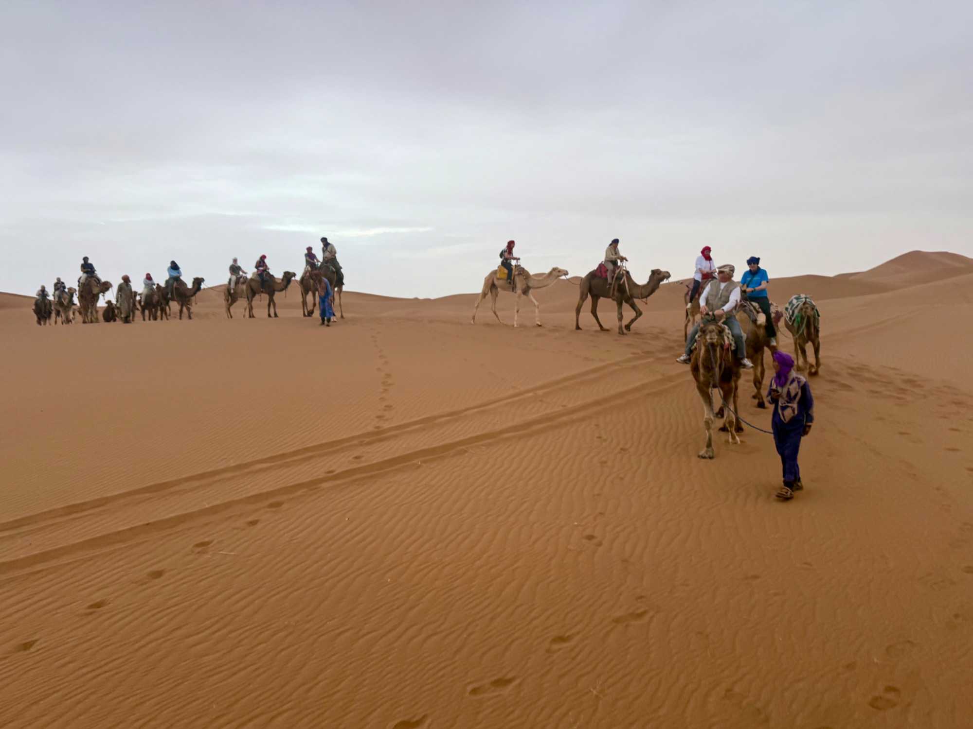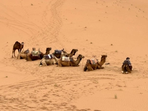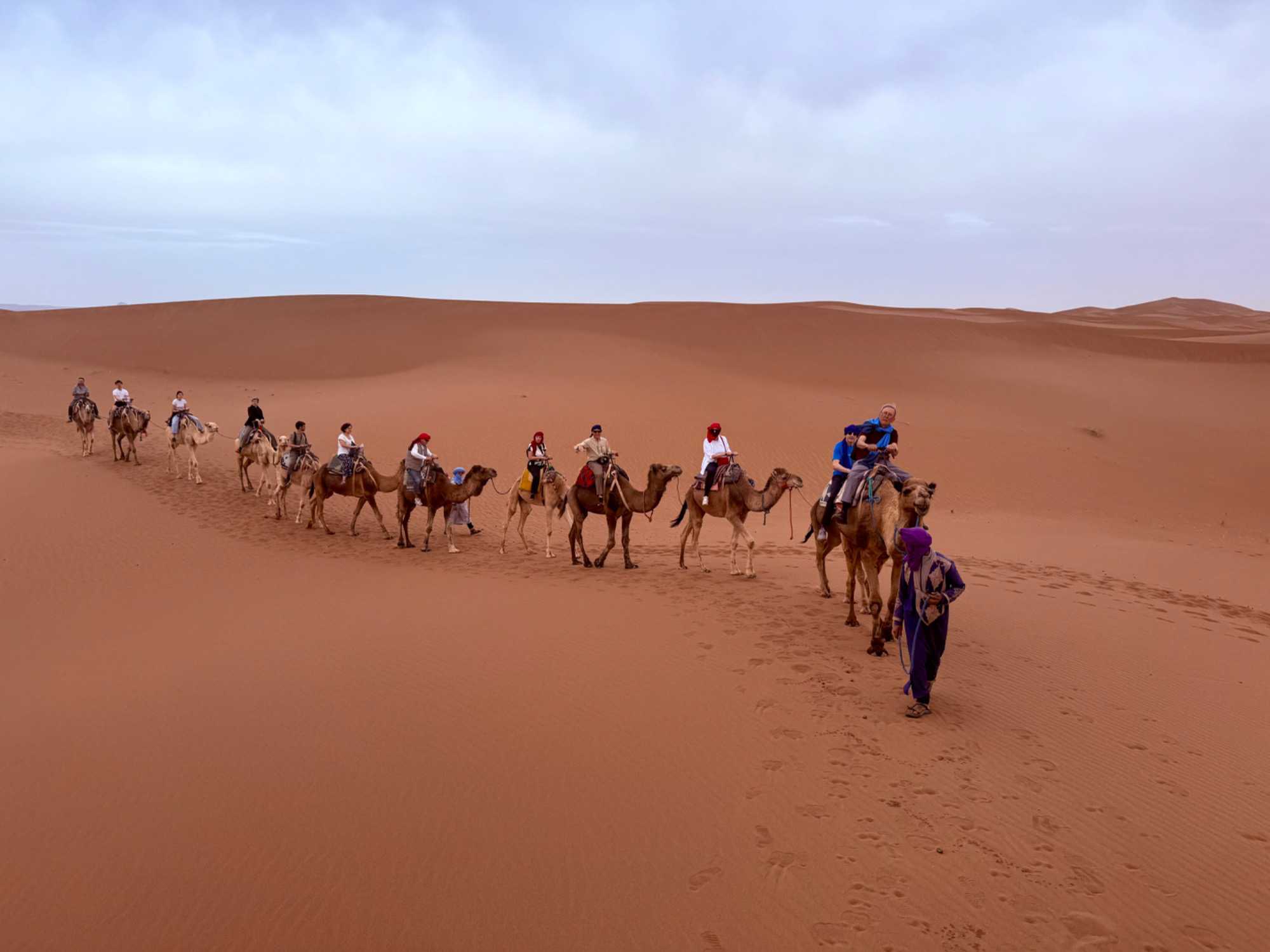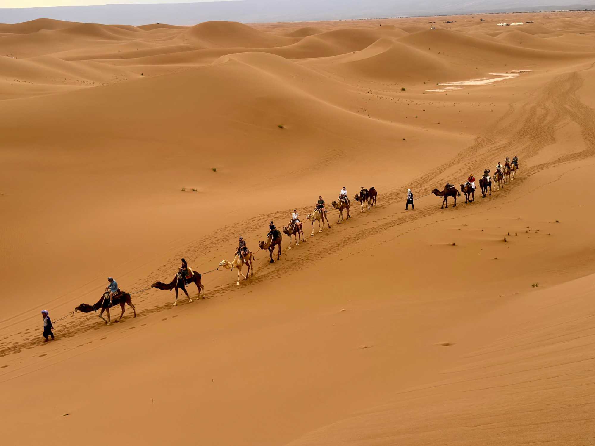 Le retour se fait tranquillement, à dos de dromadaire ou à pied pour ceux qui souhaitent prolonger le contact avec le sable.