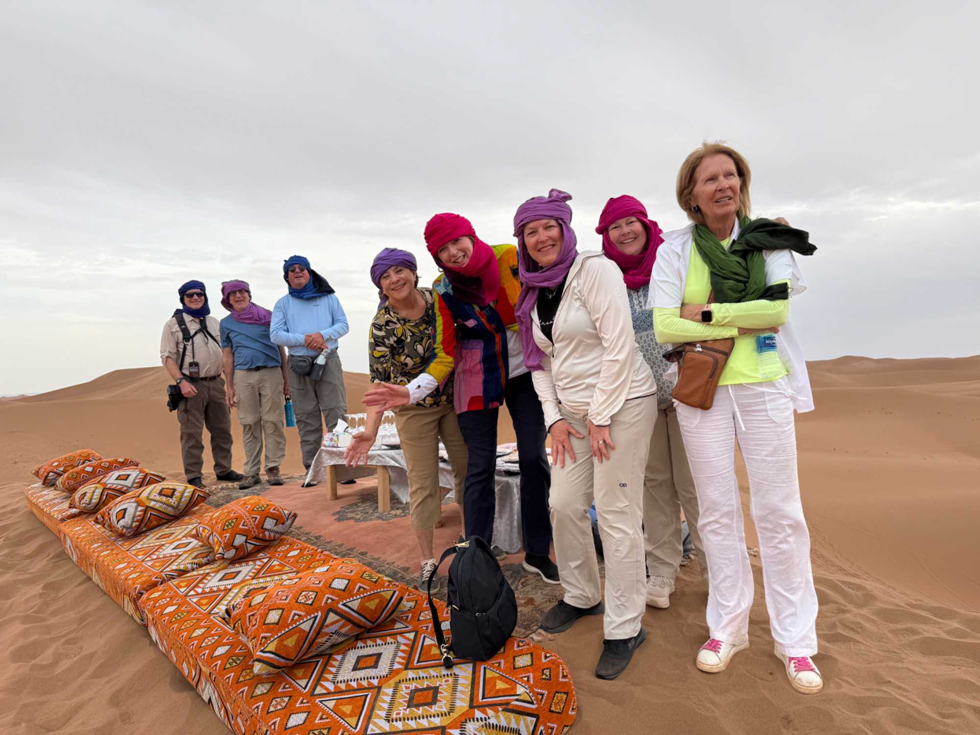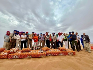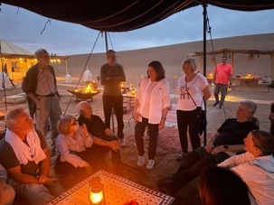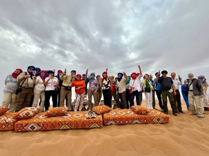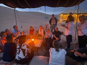 L’après-midi est consacrée au repos. Un moment précieux. Discussions, siestes, instants suspendus sur de grands coussins installés à même le sable. Le désert a ce pouvoir de nous ralentir, de nous recentrer.