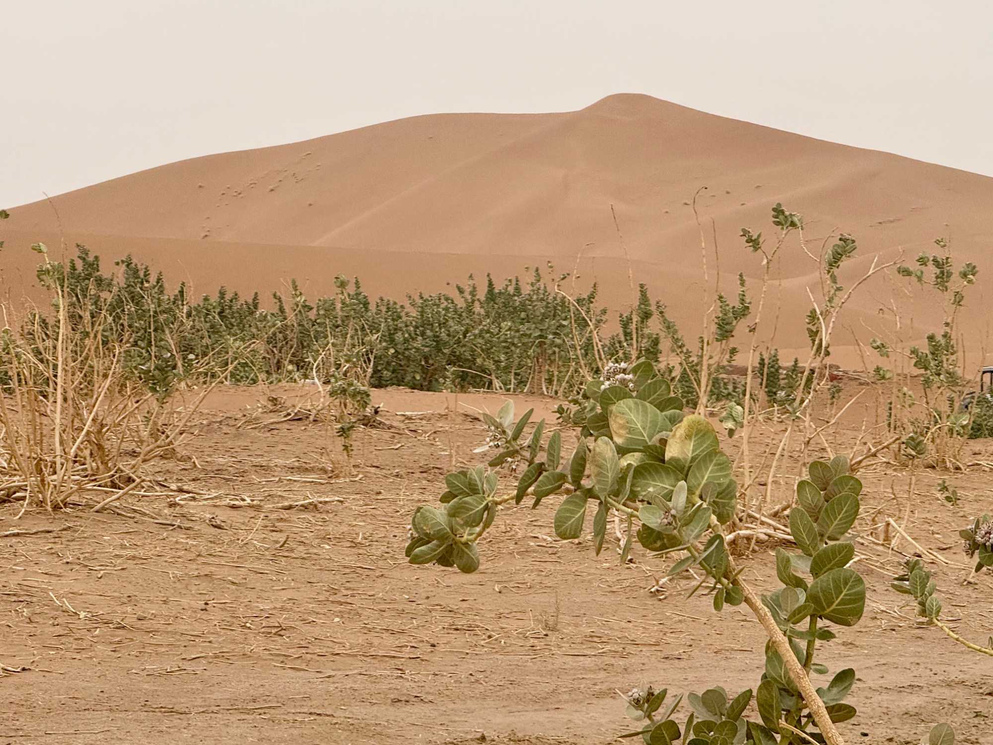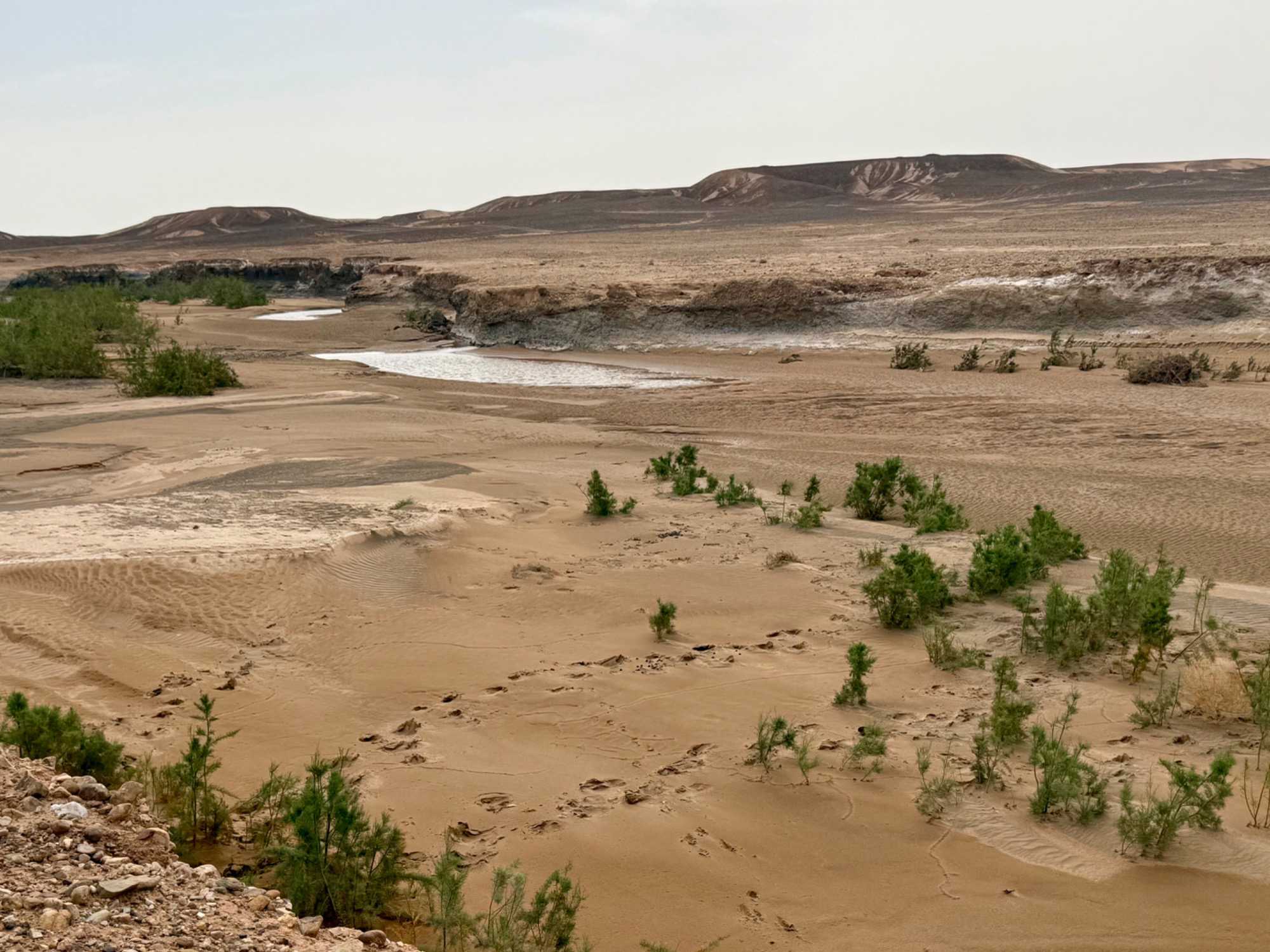 Nous atteignons le sommet d’une dune où une surprise nous attend.
