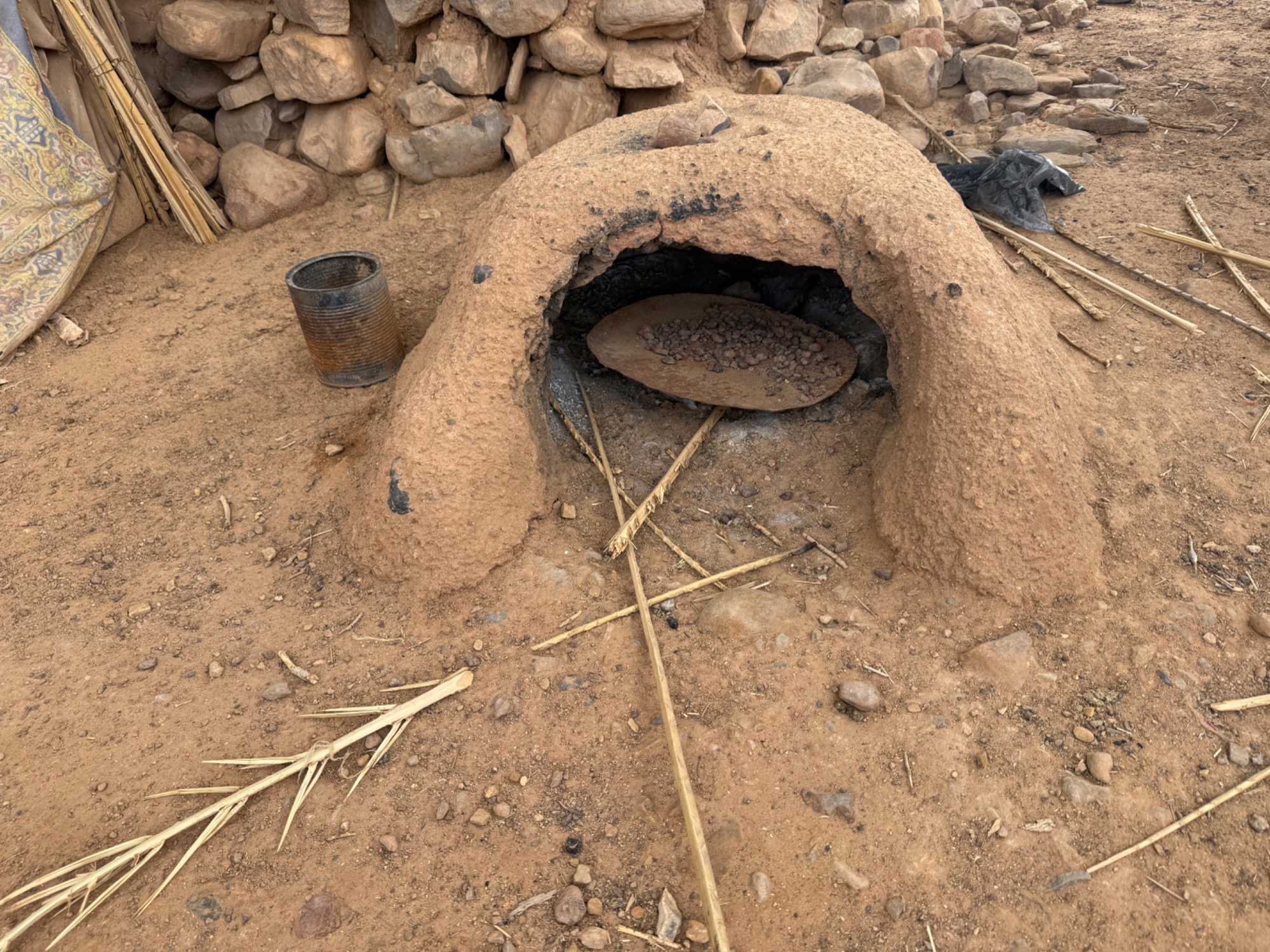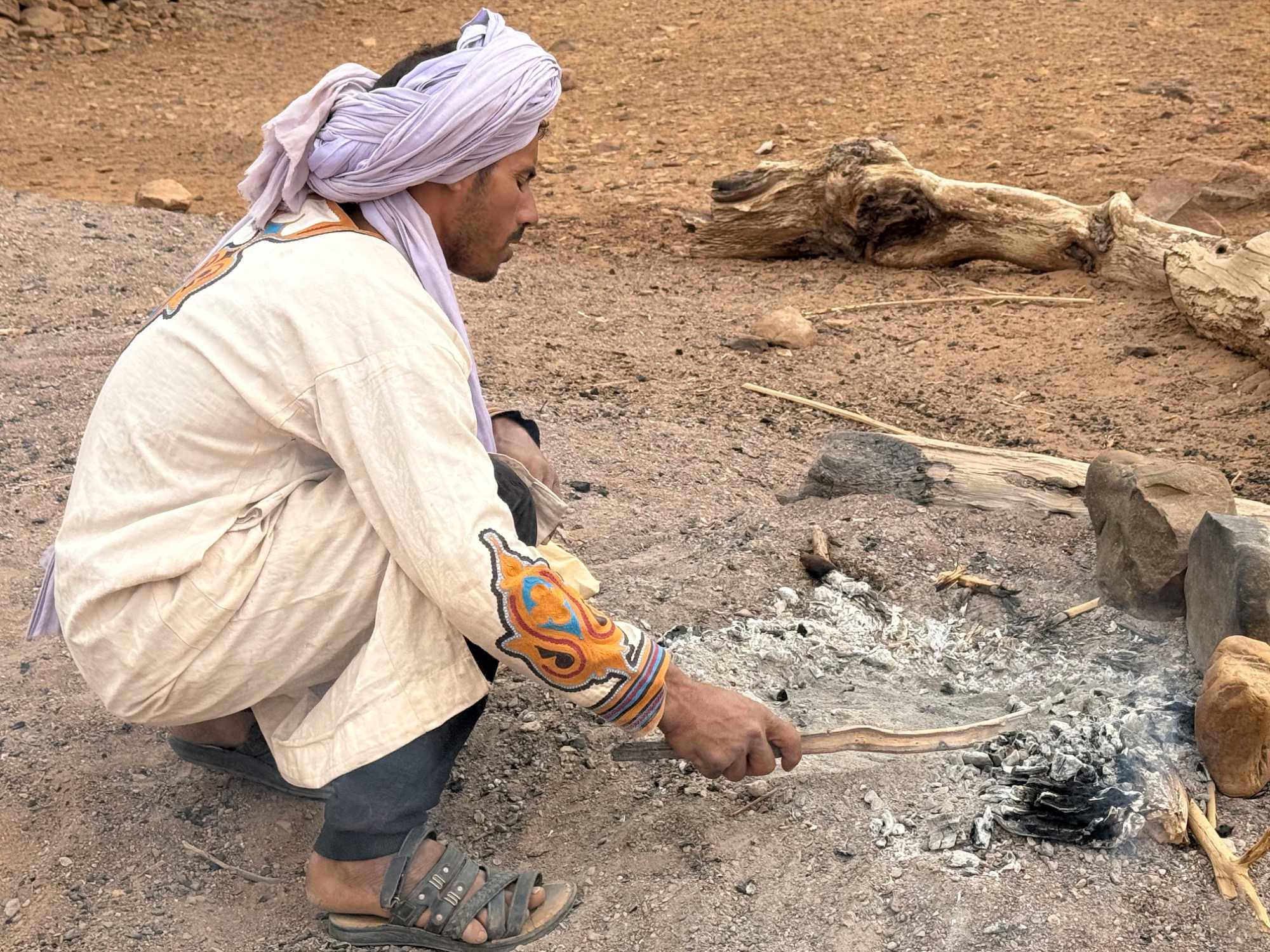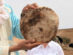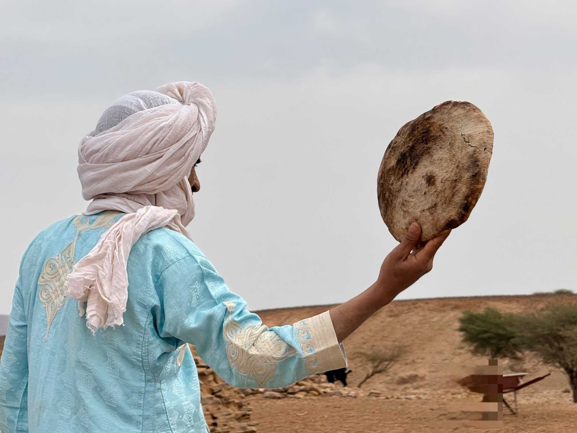 On nous présente une tradition fascinante : la cuisson du pain berbère dans le sable. La braise est enfouie, le sable devient brûlant, et le pain, déposé directement, cuit en quelques minutes seulement. Un savoir-faire ancestral, ingénieux, profondément lié à ce territoire.
