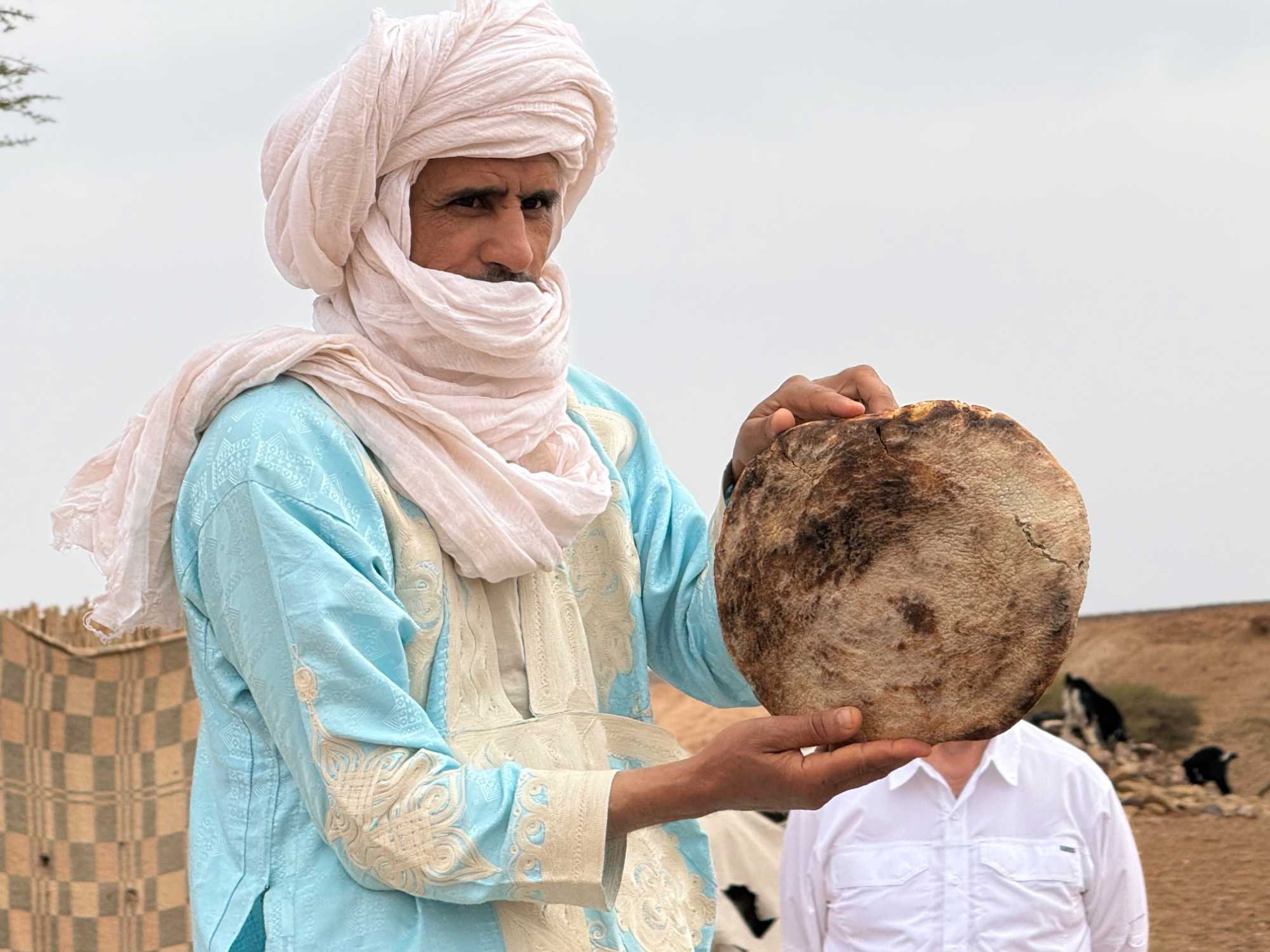 En voulant capturer la scène, j’ai pris une photo de notre conducteur tenant fièrement le pain fraîchement cuit… sans réaliser qu’à l’arrière, notre chère Esther s’était glissée dans le cadre. Le résultat est une photo absolument spontanée et très amusante, qu’Esther a généreusement accepté de partager avec vous. Vous la verrez dans le récit — un de ces moments imprévus qui font tout le charme du voyage.