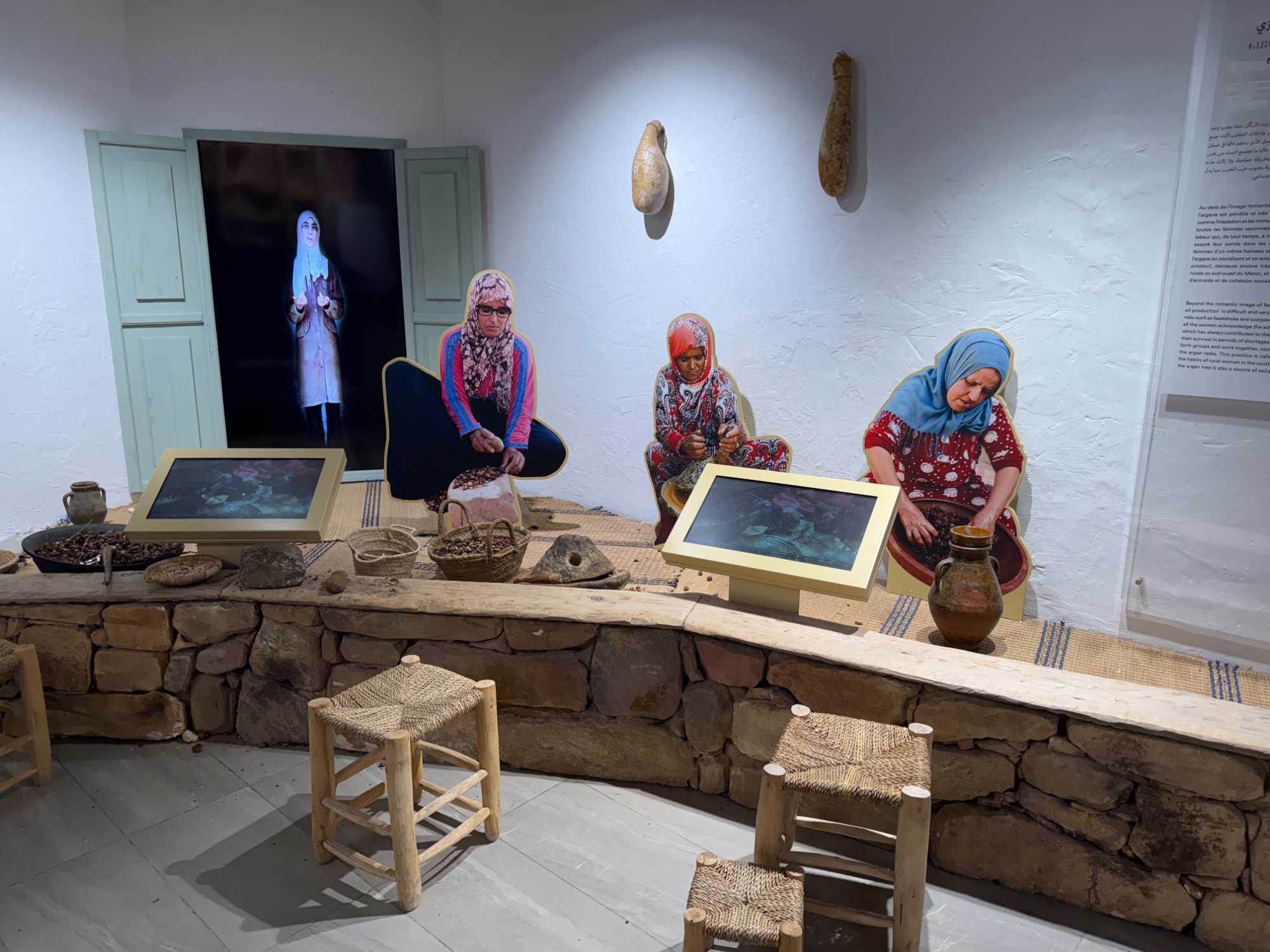 Accompagnés de Patrick, nous partons pour une expérience immersive au musée Targant, véritable vitrine de l’authenticité, de la durabilité et du savoir-faire ancestral marocain. Ce lieu unique met en lumière l’huile d’argan, souvent surnommée « l’or liquide du Maroc », issue d’un arbre rare qui pousse presque exclusivement dans cette région du monde.