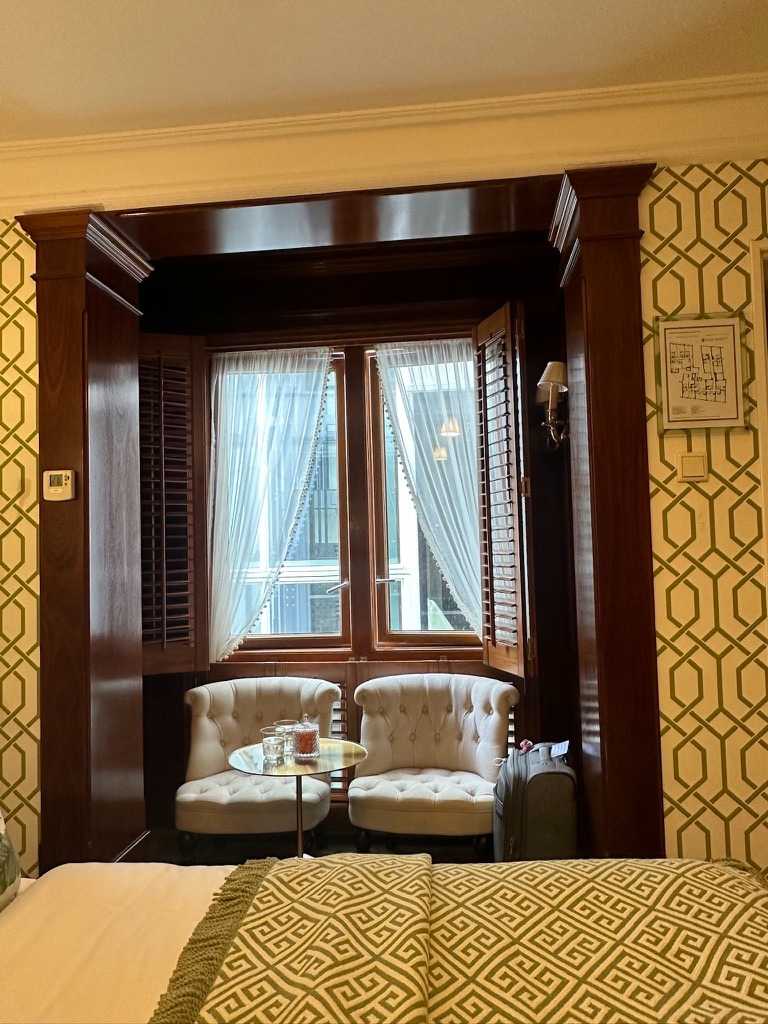 Au sujet de l’hôtel, voici un extrait du descriptif web: “Cet hôtel-boutique est dirigé en famille depuis près de 80 ans, a connu de nombreux changements tout au long de son histoire. L’immeuble du dix-septième siècle, situé sur l'un des plus anciens canaux d’Amsterdam, le Singel, est désormais classé au patrimoine mondial de l’UNESCO. L’hôtel vous plonge dans le charme authentique de la ville. Laissez-vous charmer par l’intérieur coloré, les lustres en cristal, les tissus de luxe et les imprimés expressifs