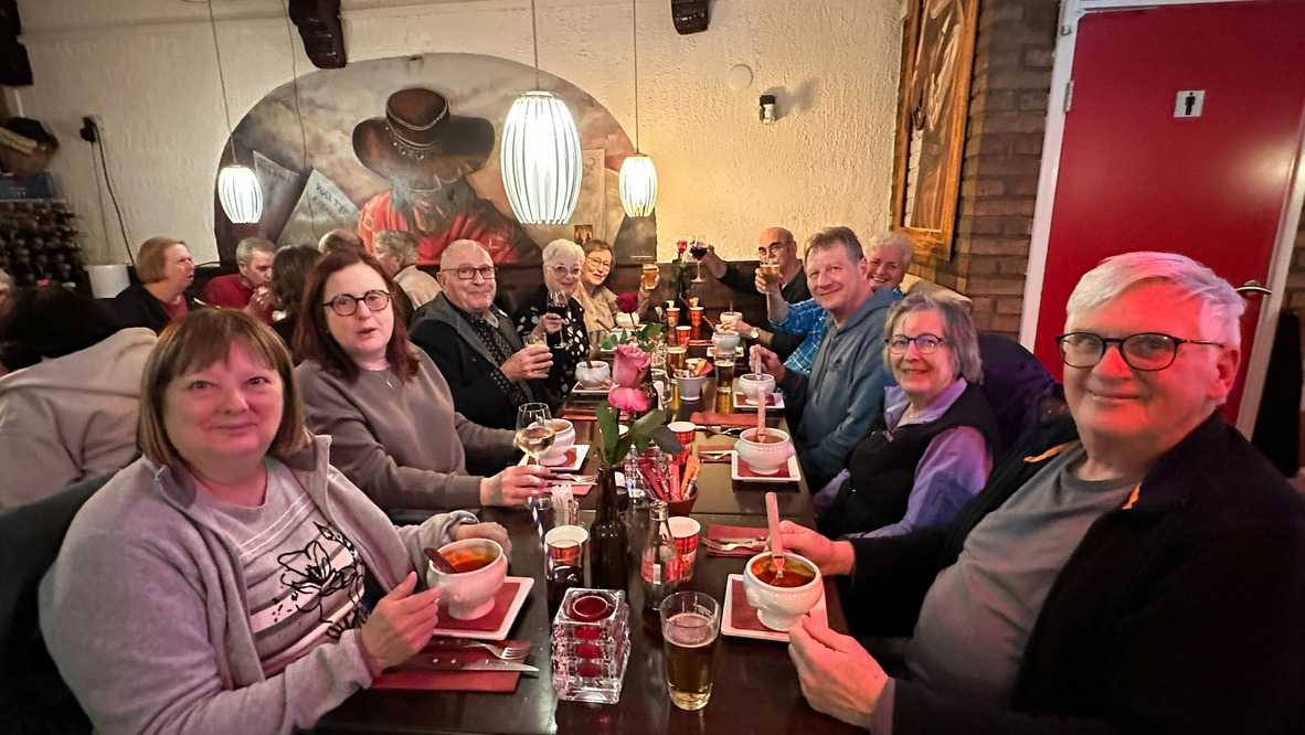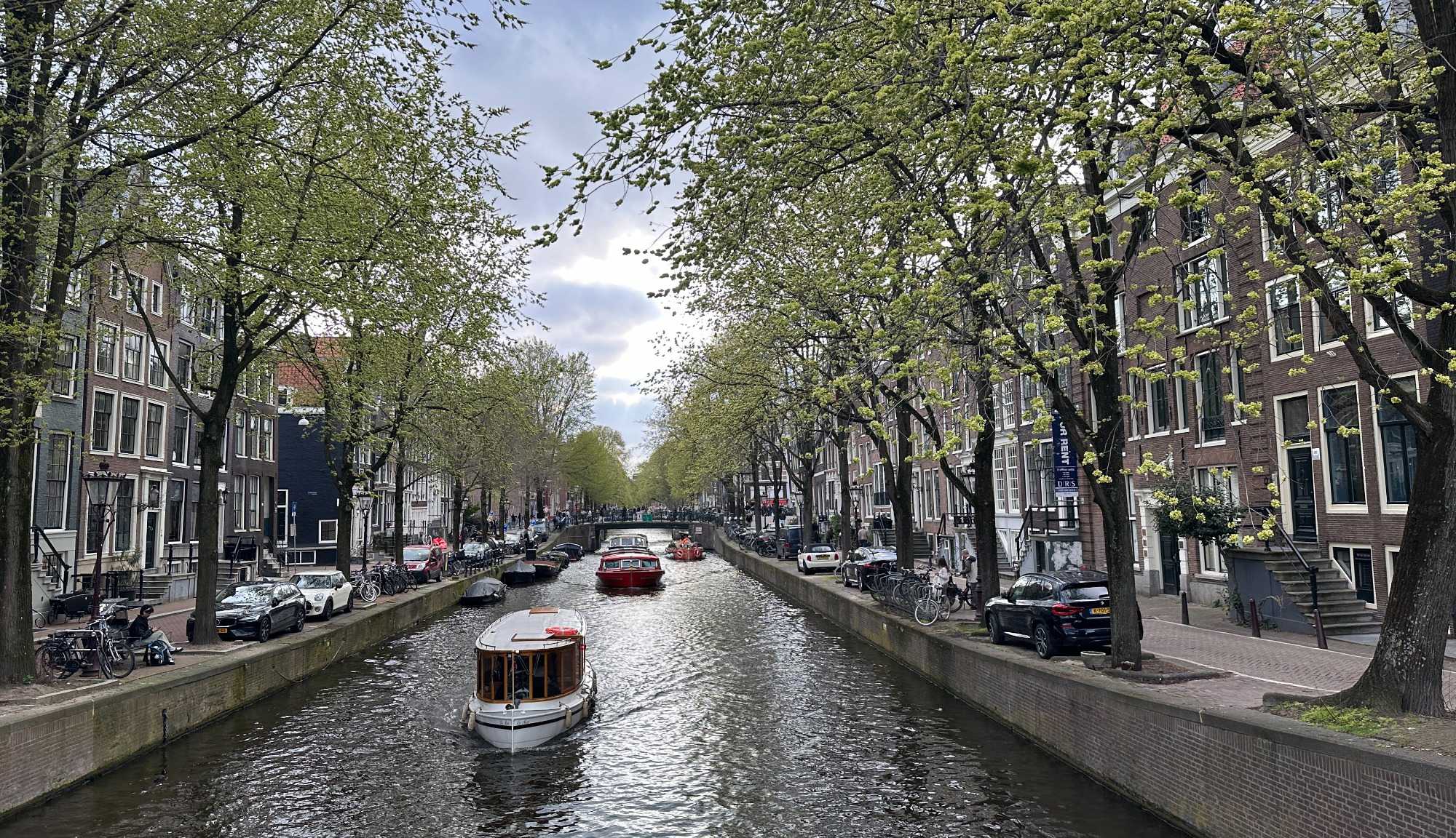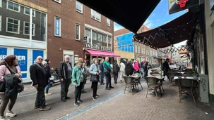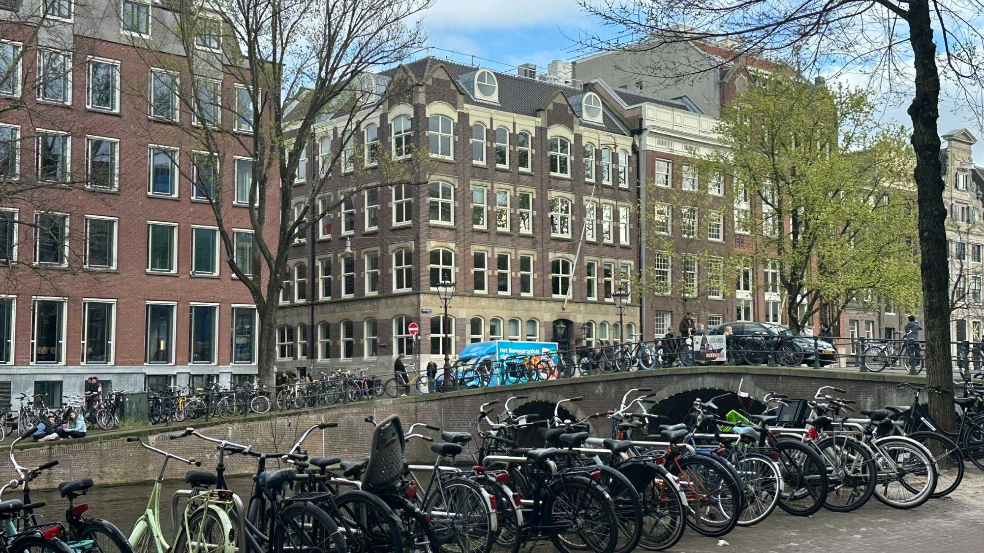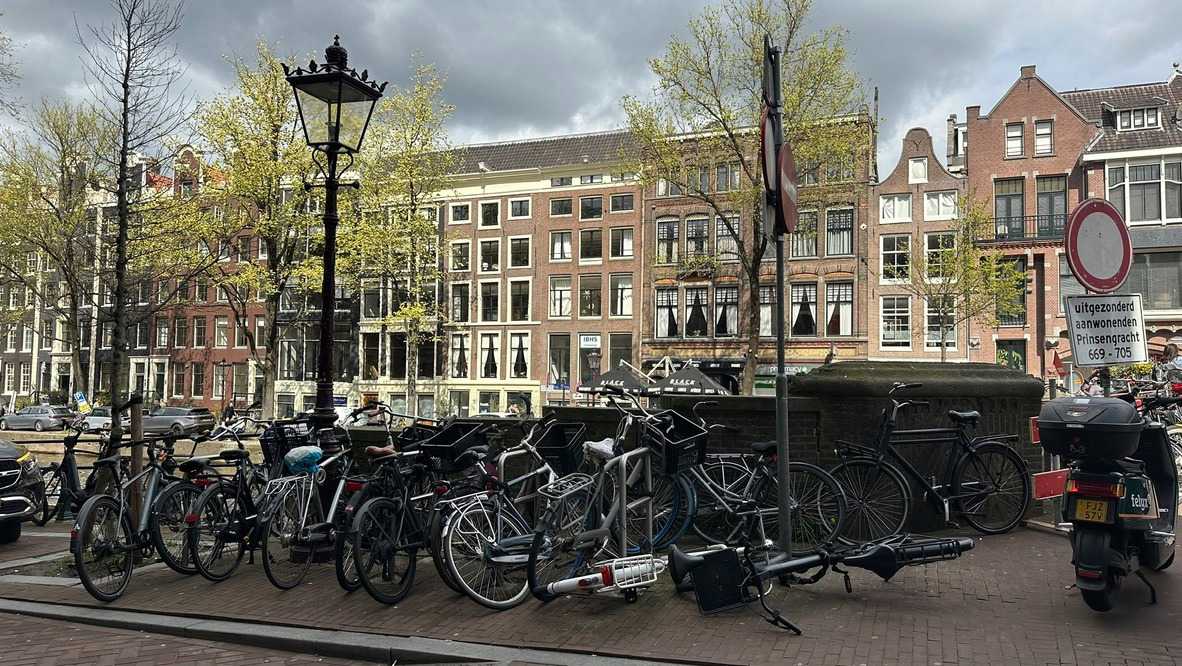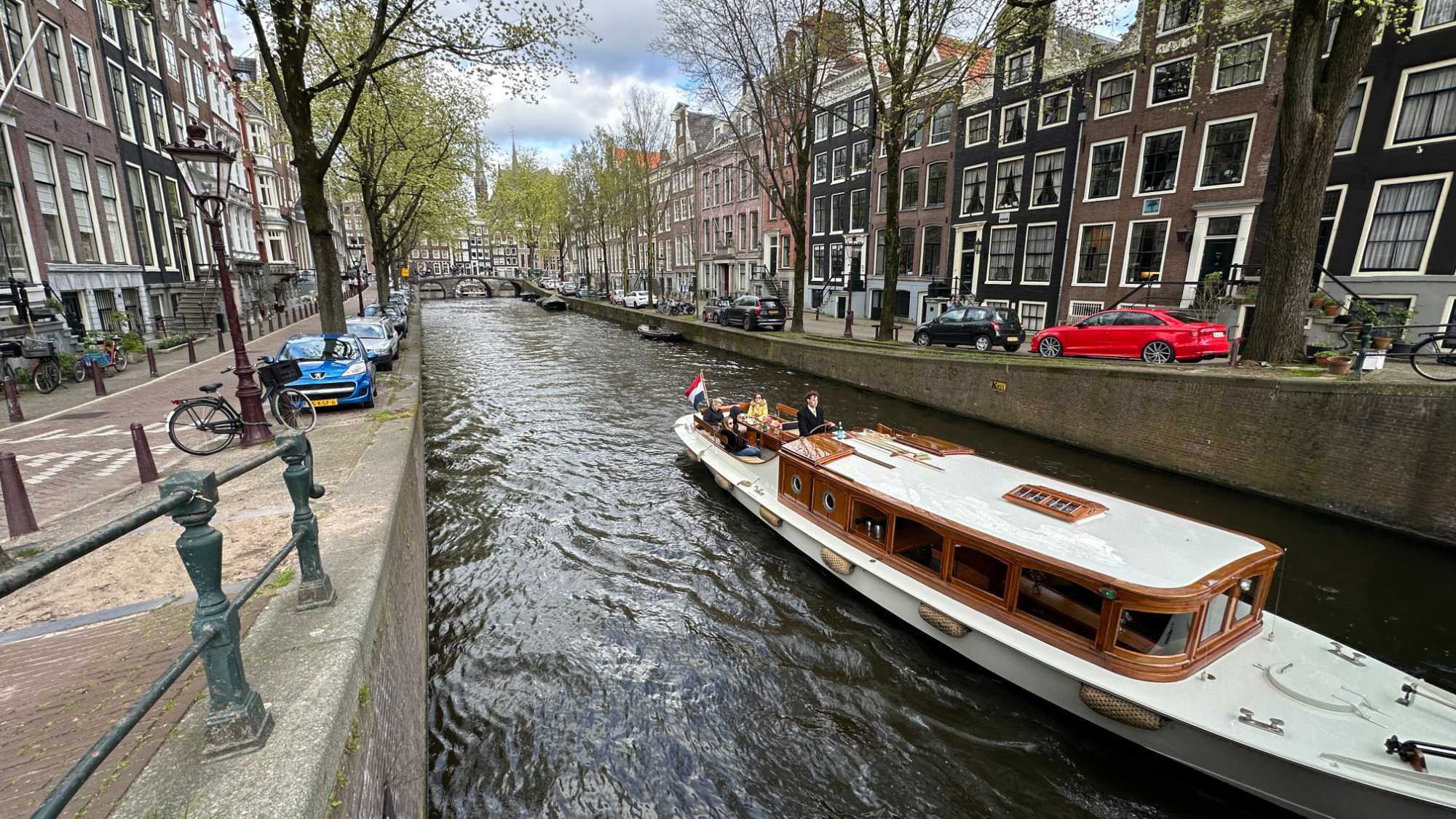 Nous apercevons nos premiers canaux, le réseau de pistes cyclables omniprésent le long de ces derniers, et ces maisons en hauteur typiques d’Amsterdam. Des gargouillements au ventre nous font comprendre que l’heure du lunch approche. Mon expérience d’accompagnatrice me fait réaliser que le premier dîner après un vol de nuit est salutaire pour ragaillardir 25 voyageurs un peu amochés. De généreuses portions nous attendent : crème de tomates, suivi d’un blanc de poulet, de frites, d’une salade et de profiteroles accompagnés d’une traditionnelle crème chantilly. Un bon verre de vin ou une bière rafraîchissante, et hop, les batteries sont rechargées !