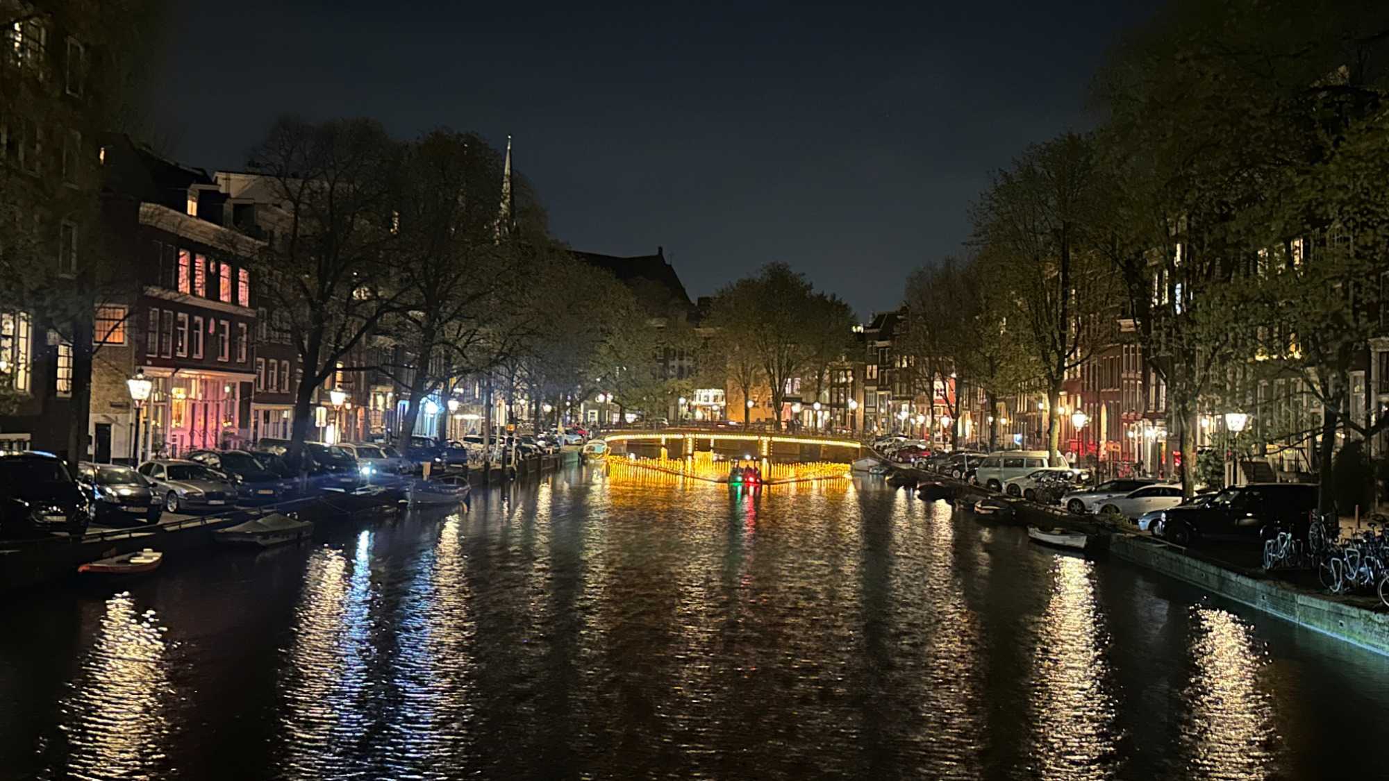 Comme nous sommes arrivés en après-midi, ce serait dommage de ne pas profiter du super emplacement de l’hôtel pour se familiariser avec les alentours. J’invite donc ceux qui veulent se joindre à moi à faire une marche de reconnaissance du quartier. On se dit qu’on est vraiment privilégié d’être au cœur même du centre historique d’Amsterdam et de pouvoir déambuler doucement dans ce décor. Le souper a lieu au resto Van Puffelen, à distance de marche de l’hôtel.