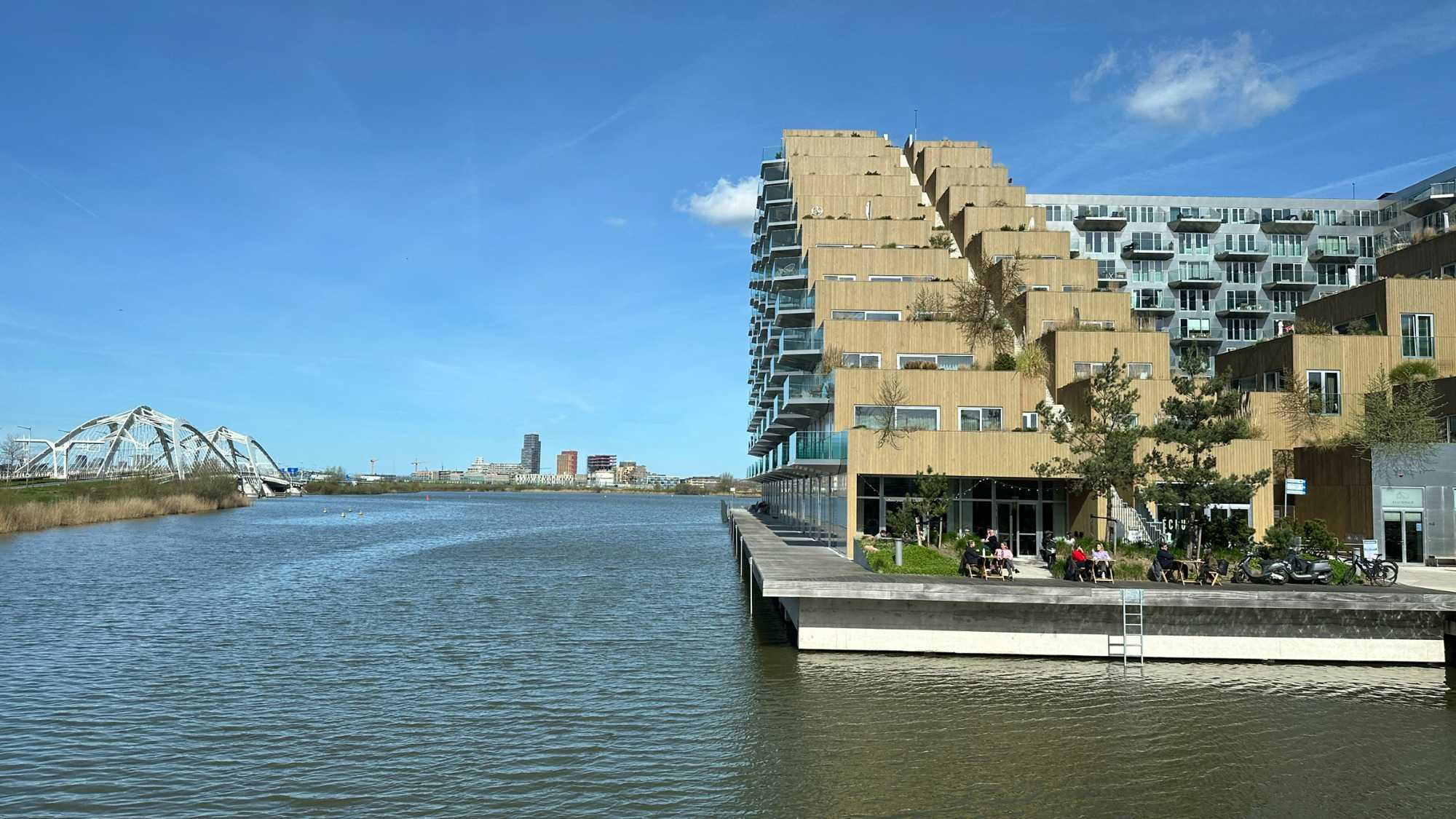 Dernière portion en autocar, mais vraiment très intéressante et ingénieuse; la visite du quartier Ij Berg. Ce quartier est né d’un projet d’urbanisme lancé à la fin des années 1990, dont les premières habitations ont été livrées au début des années 2000. Construit sur des îles artificielles, il répond à la croissance de la ville tout en encadrant son expansion.