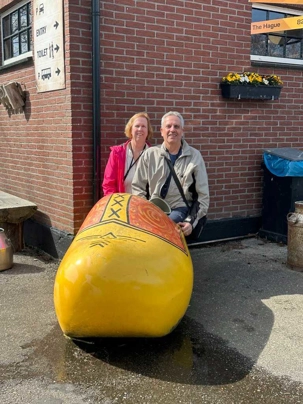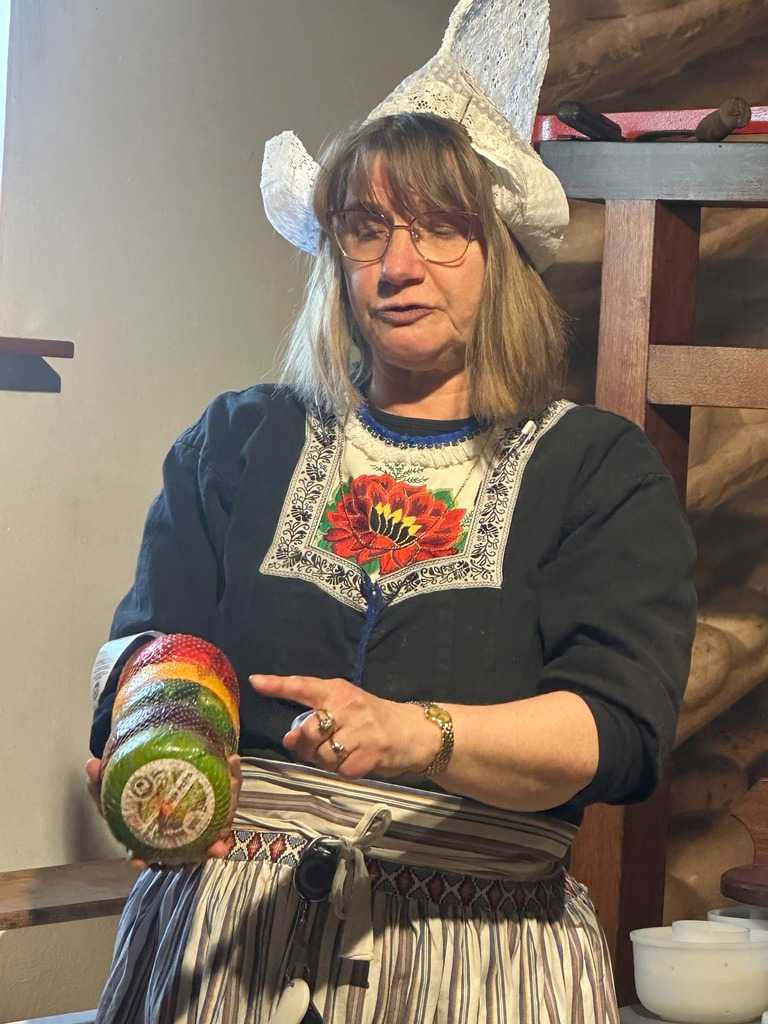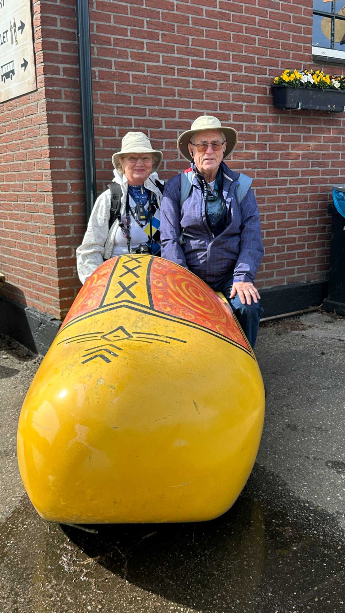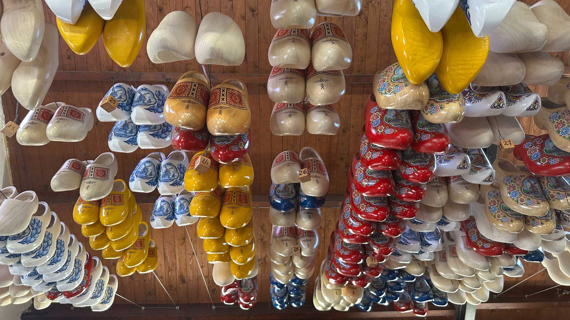 Le rythme est plus lent aujourd’hui et nous en sommes fort aise ! Vers 14h, c’est l’heure de faire de nouvelles découvertes. C’est vers Volendam que nous nous dirigeons en autocar avec notre guide Sophie. Mais avant, prenons quelques minutes pour nous arrêter à la saboterie de l’Amitié (fabrique de sabots) où on nous apprend les bases de la fabrication artisanale des sabots. C’est le peuplier qui est utilisé pour leur fabrication. L’entreprise en produit environ 1M par année, et ce, majoritairement pour les touristes. Savez-vous que le fait qu’il soit plus grand permettait de ne pas s’enfoncer dans la boue des champs et que si une vache pilait sur le pied d’un fermier, le bois épais protégeait d’une blessure.