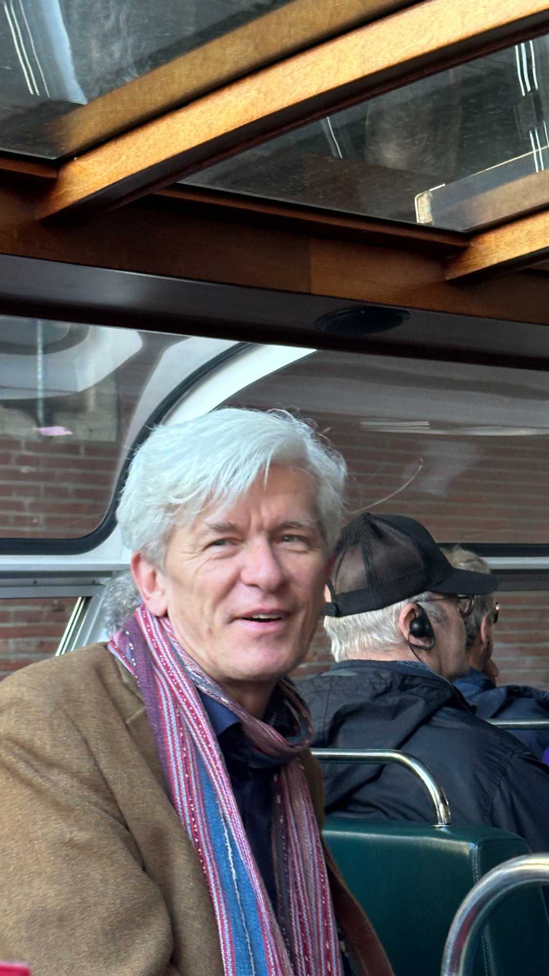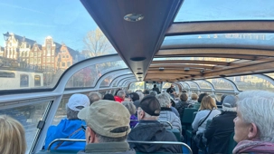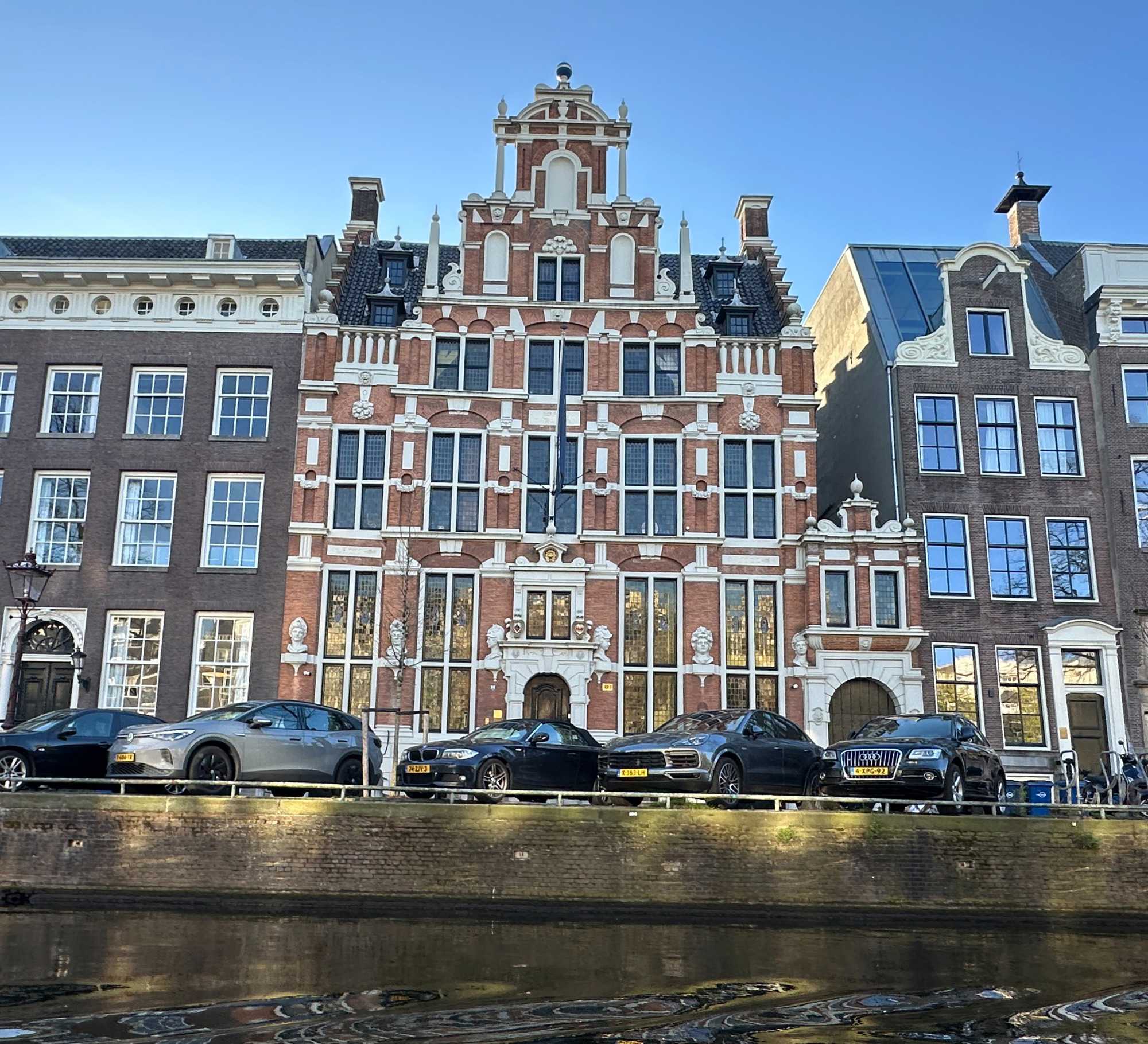 Nous nous retrouvons tous pour le petit-déjeuner, bien reposé après notre journée intense d’hier. Puis, quelques pas seulement nous ont suffi pour rejoindre le bateau mouche amarré au quai voisin. En compagnie de Robert, le guide attitré à cette visite, nous parcourons pendant près d’une heure, quelques-uns des 100 km de canaux d'Amsterdam. Le réseau compte aussi plus de 1500 ponts reliant environ 90 îles. Ce tour nous fait constater l’ampleur qu’a pris ce moyen de transport dès la création d’Amsterdam. Lors de cette mini-croisière, nous naviguons essentiellement sur le canal Prinsengracht (canal du princes) puis sur le Keizersgracht (canal de l’empereur), le Brouwersgracht (le canal des brasseurs) et le Herengracht (canal des seigneurs), qui de l'avis de la majorité, est le plus beau avec ses maisons nobles et riches. Il a conservé le cachet de l’effervescence économique du 17e siècle. Nous aboutissons au pied de la majestueuse gare d’Amsterdam que nous prenons plaisir à voir du point de vue de l’eau.