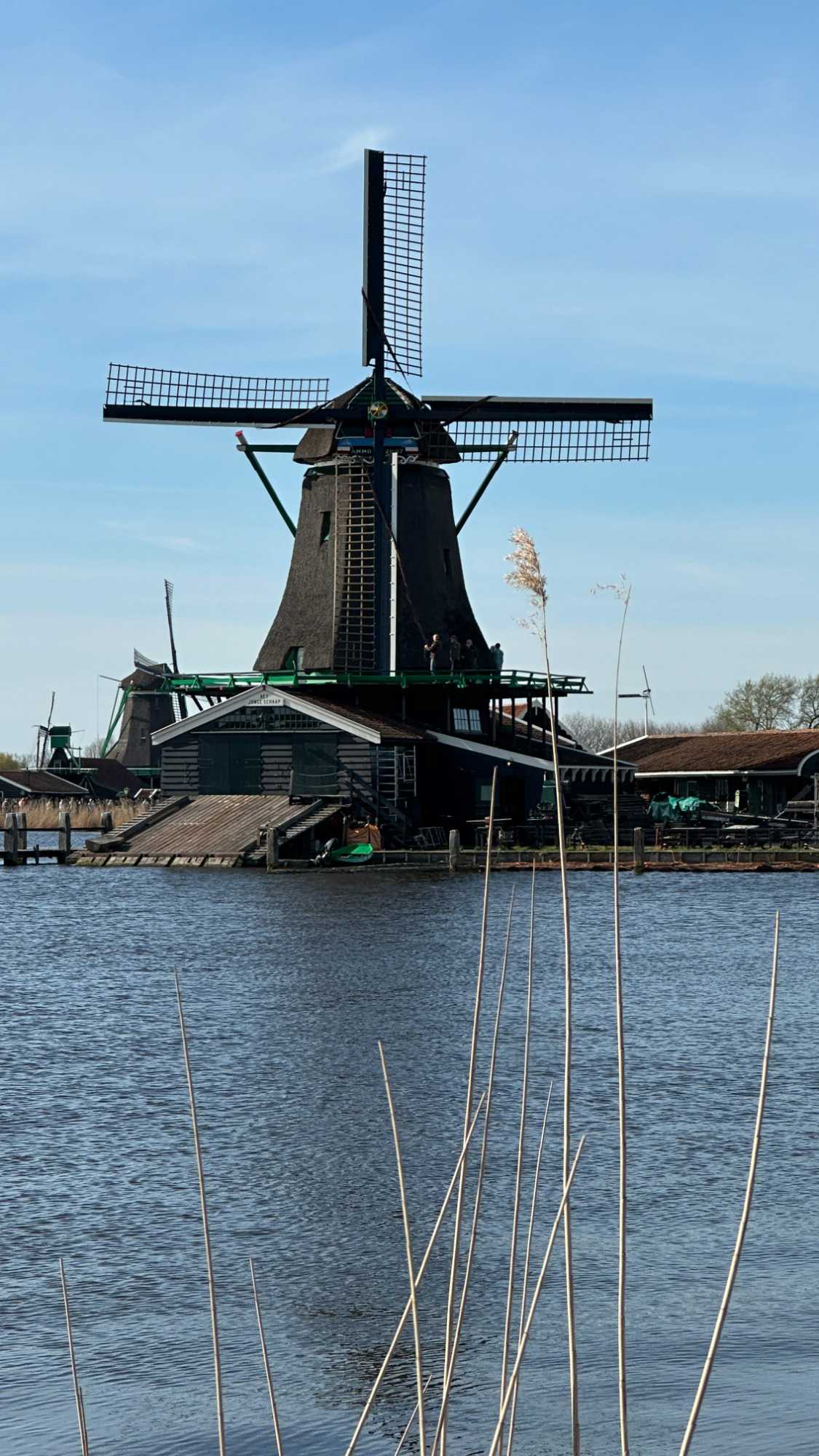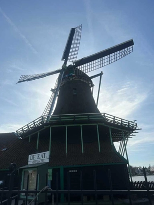 Quand on pense aux Pays-Bas, l’image de ses moulins à vent nous vient tout de suite en tête. C’est surtout à Zaanse Schans qu’on les retrouve, un petit village répertorié au patrimoine culturel de l’UNESCO, rempli de beauté et d'histoire. Nous arrivons donc sur les lieux d’un musée en plein air, où 8 gigantesques moulins, autrefois répartis dans la région, ont été rassemblés et nous offrent un splendide point de vue sur ces mastodontes qui sont, pour certains, encore fonctionnels. On y trouve aussi des ateliers de fabrication de sabots, des fromageries, une scierie. On dit qu’il y avait autrefois près de 1000 moulins à vent, utilisés pour scier le bois, presser les grains pour en extraire l’huile ou broyer les ingrédients pour la peinture et pour bien d’autres utilités quotidiennes. Bien que le site soit très achalandé, Zaanse Schans est un lieu incontournable et nous avons été chanceux de voir tourner les pales des moulins en cette journée ensoleillée.