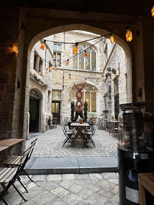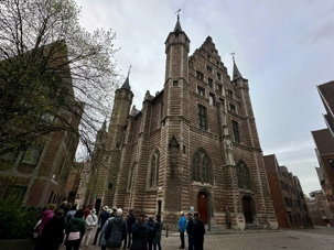 Au détour d’une ruelle, la Maison des Bouchers, ou Vleeshuis. Impossible de la manquer avec ses briques rouges lardées de bandes de pierre blanche. Construite au XVIe siècle, elle appartenait à la puissante guilde des bouchers à une époque où ces corporations avaient un poids économique et politique énorme. Son allure massive, presque fortifiée, en dit long sur leur influence.