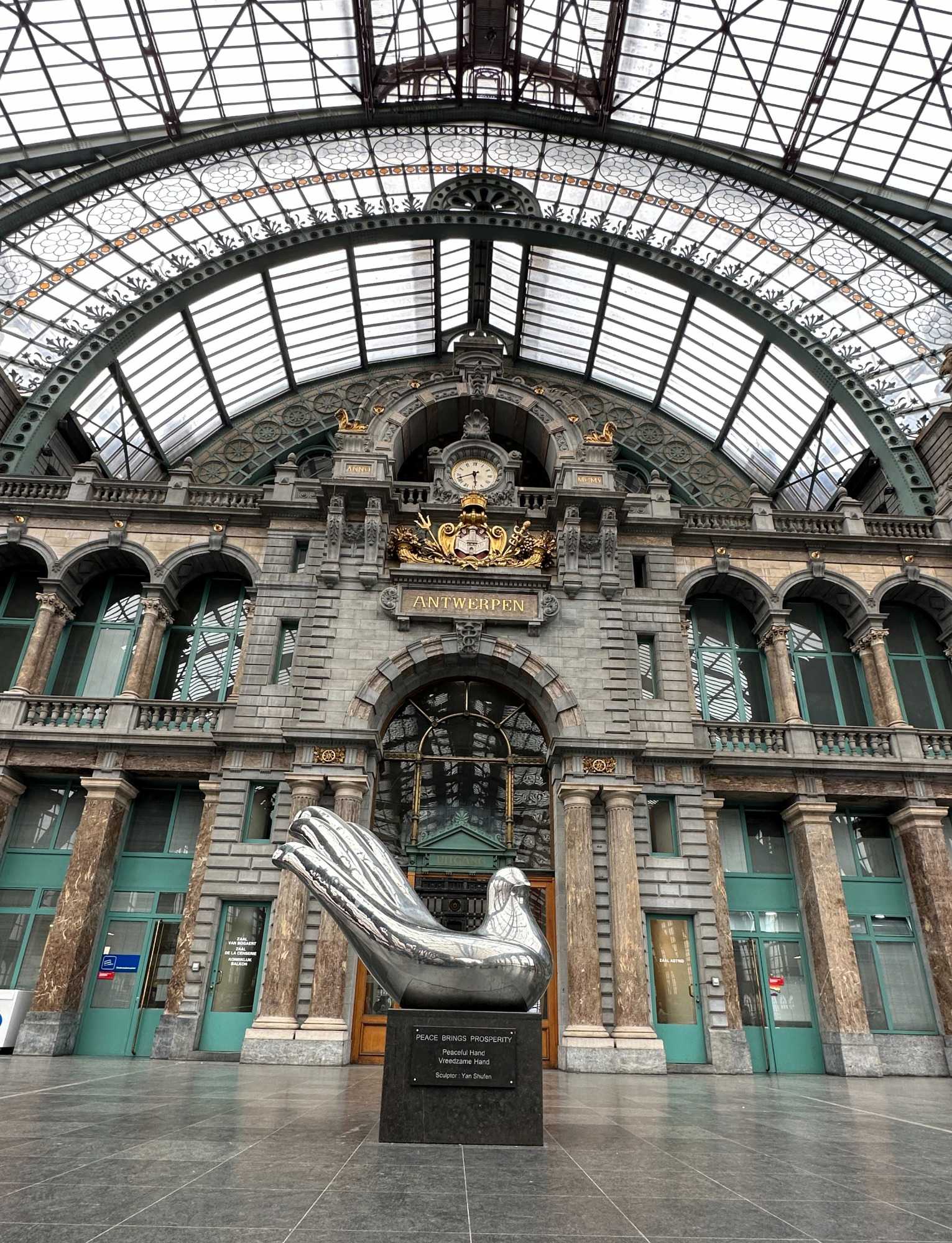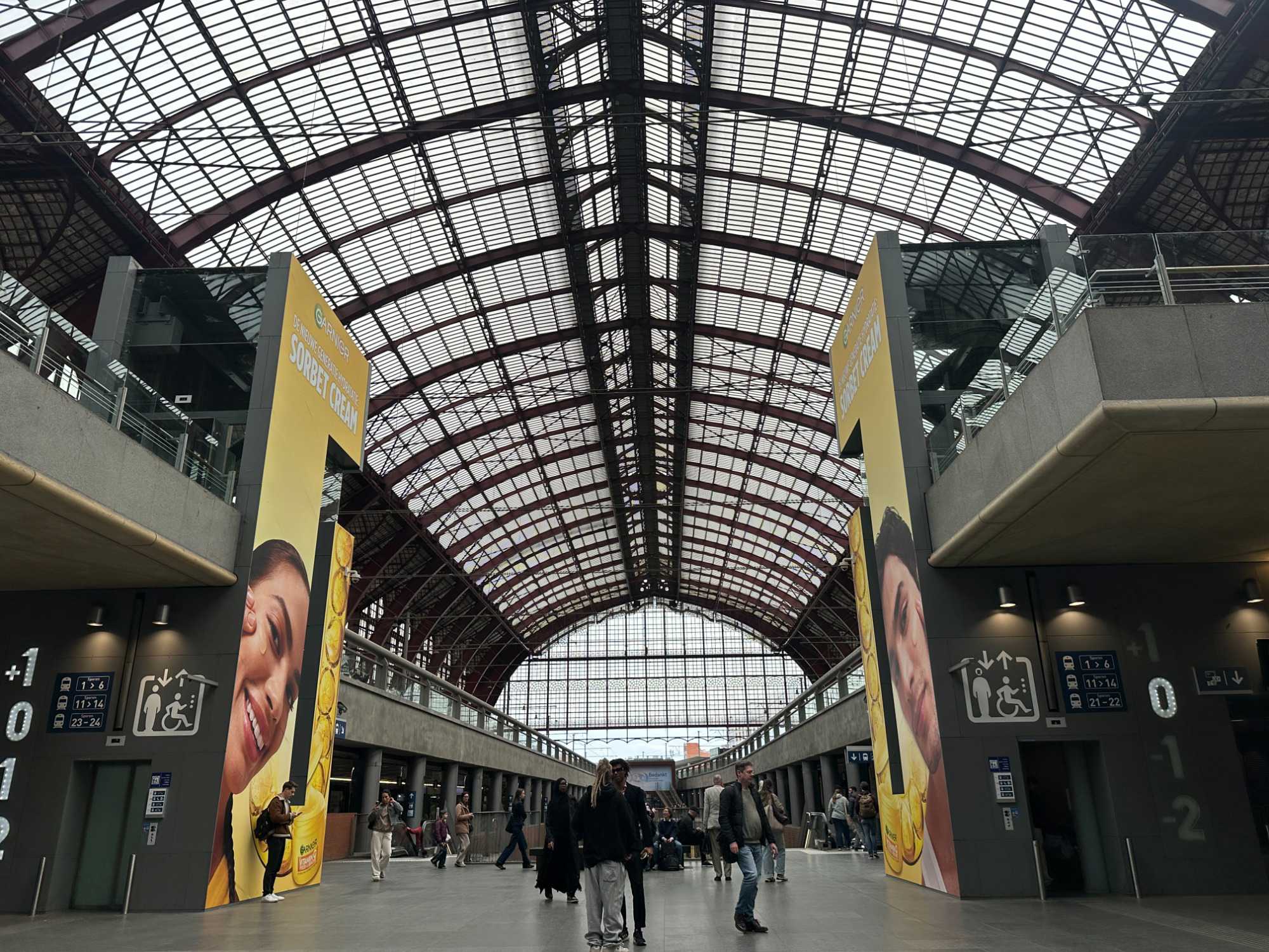 À preuve, l’imposante structure de la gare d’Anvers, un bijoux exceptionnel, souvent classé parmi les plus belles gares du monde, et surnommée la cathédrale du rail. Célèbre pour son dôme monumental de 75m de haut, son architecture néo-baroque en marbre, et une verrière recouvrant les rails, de 185 m de long. Majestueux ! Et ça ne fait que commencer …