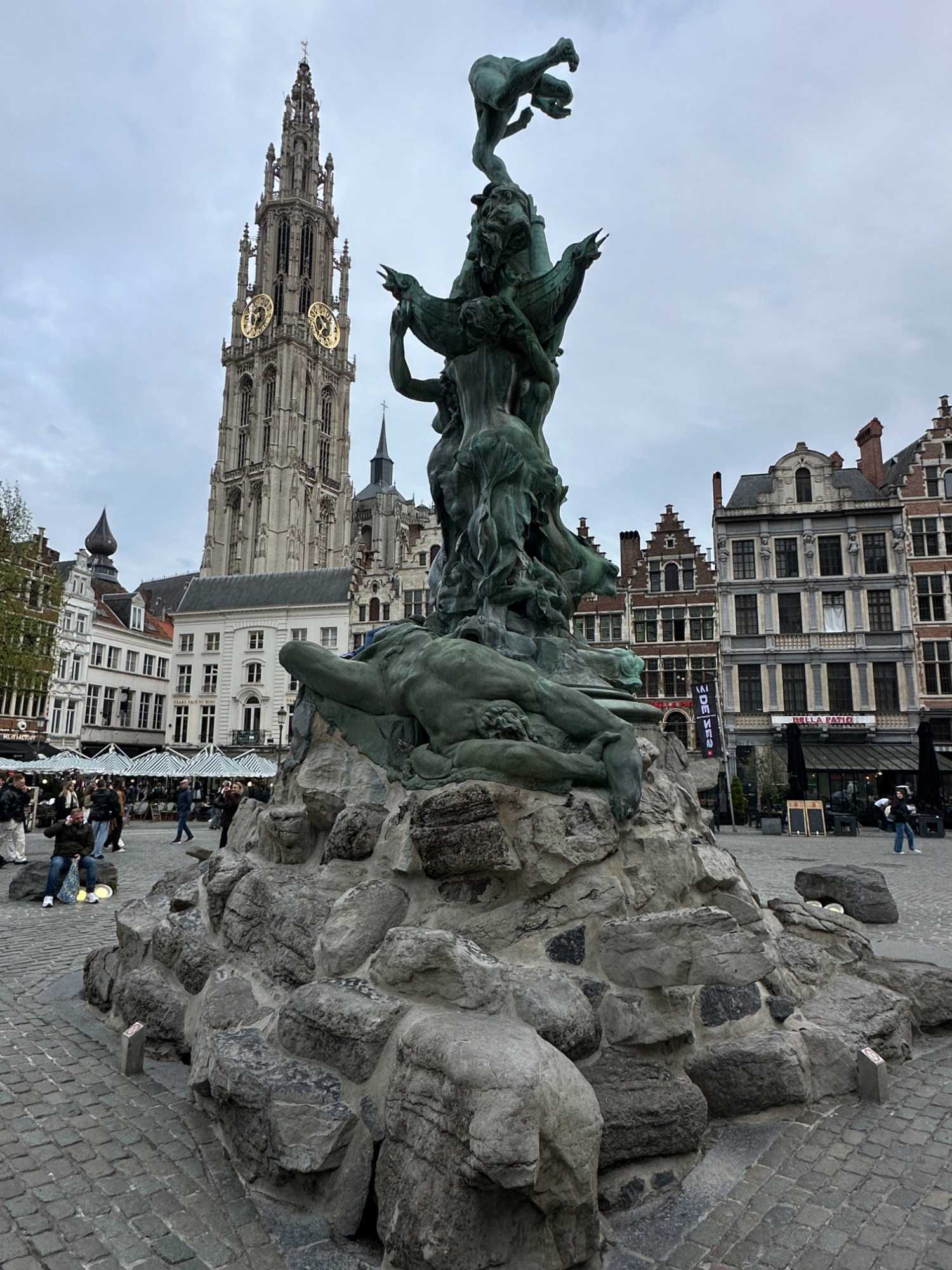 On continue vers le cœur vibrant de la ville : la Grand-Place d’Anvers. Ici, tout est question de détails. Les maisons de corporations, avec leurs façades richement décorées, racontent la prospérité des XVIe et XVIIe siècles. Au centre, la fontaine de Brabo attire les regards. Une légende locale raconte que ce héros aurait jeté la main d’un géant dans le fleuve, donnant ainsi son nom à la ville (hand werpen, “jeter la main”).