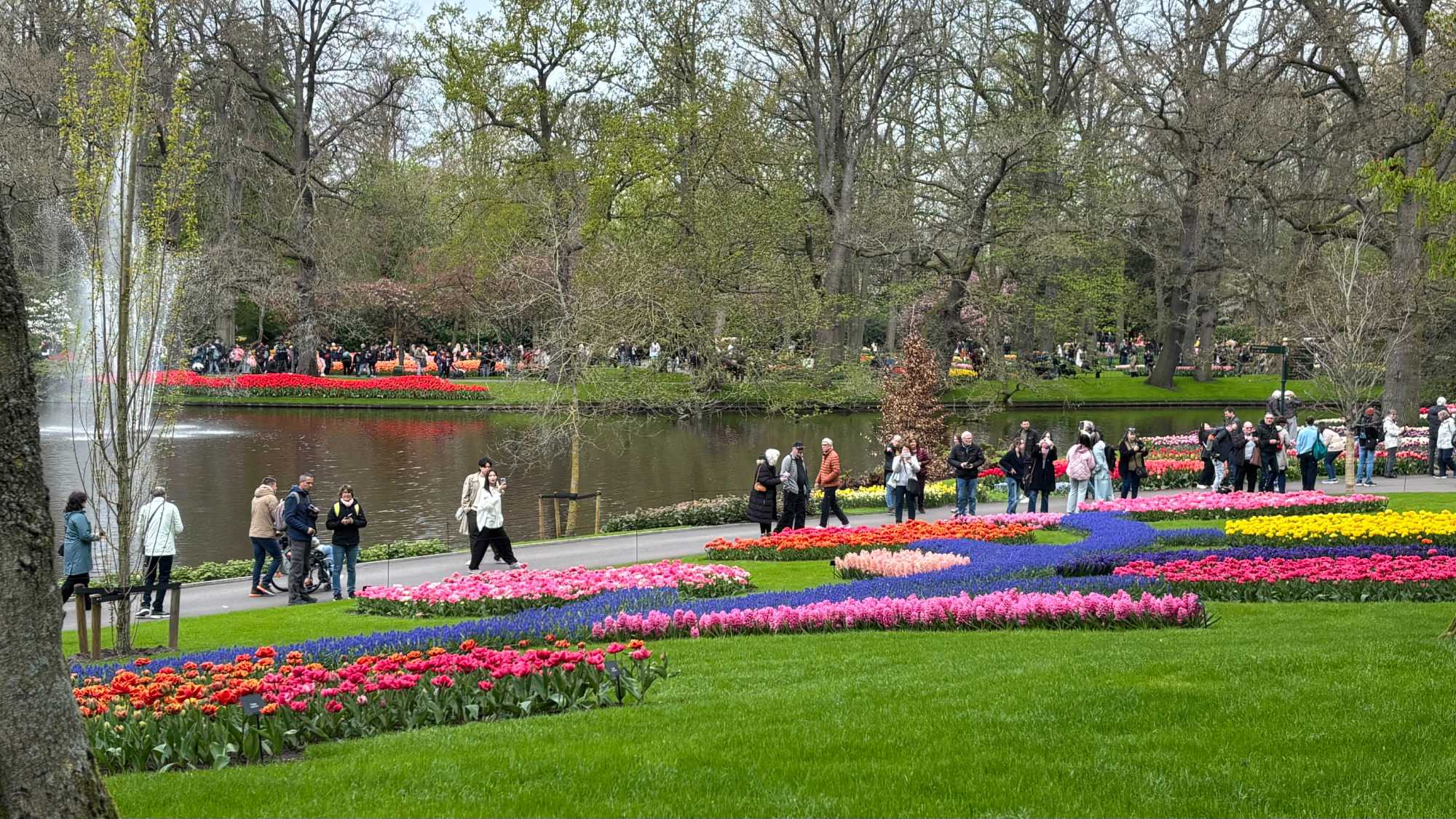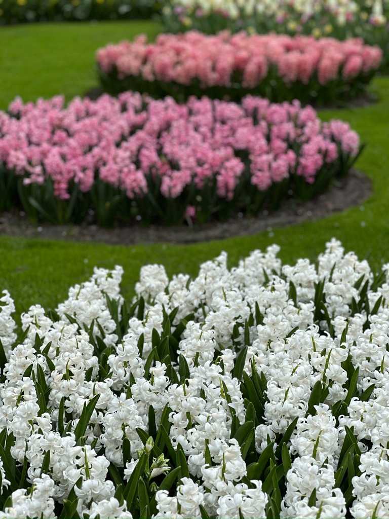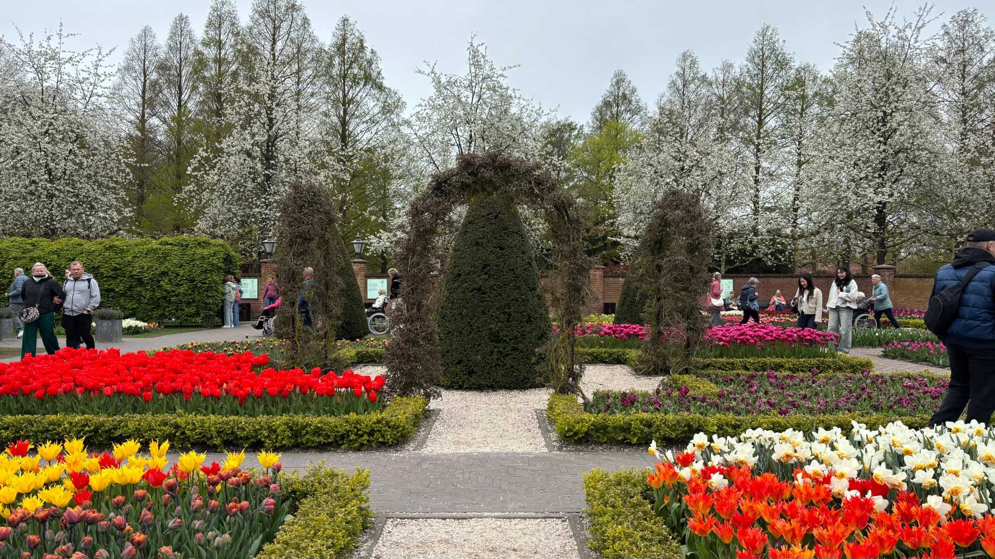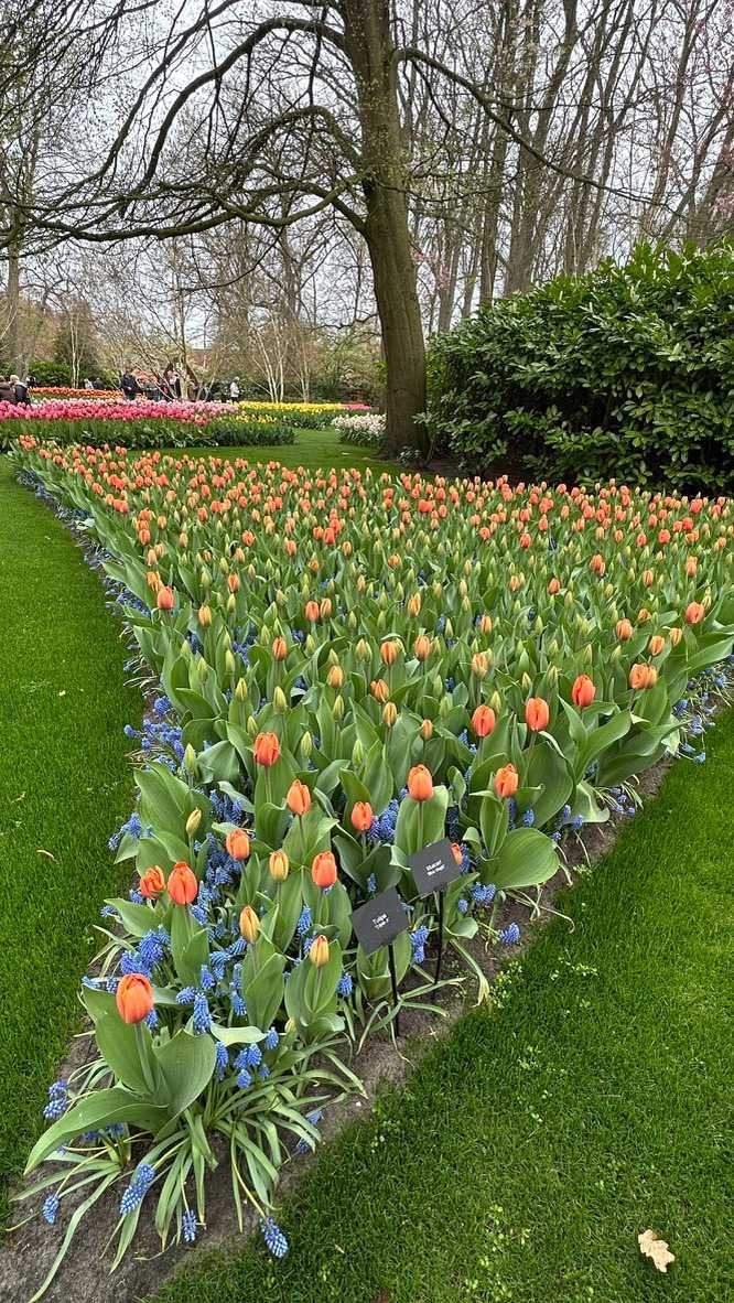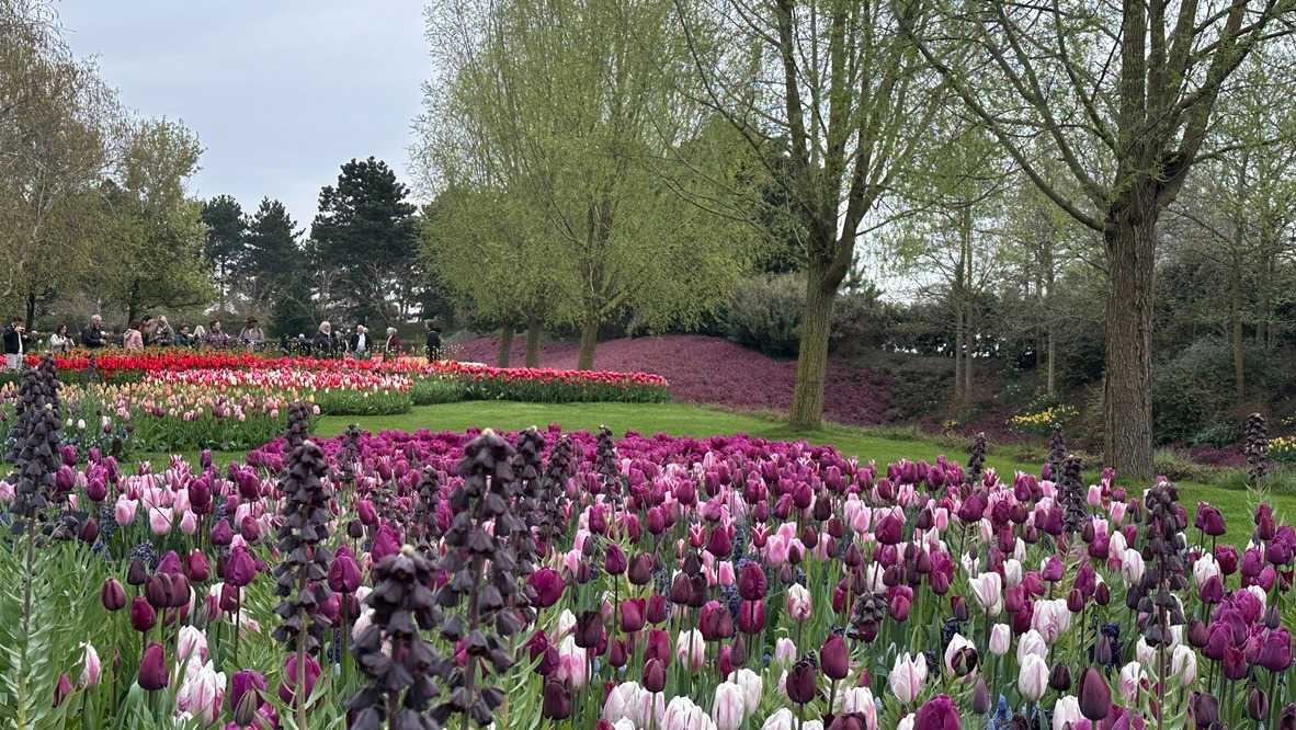 Sur les 32 hectares du parc, les sociétés florales fournissent gratuitement les bulbes qui sont plantés et déterrés à chaque saison. Les architectes du parc imaginent les massifs environ un an à l'avance et les jardiniers plantent 7 millions de bulbes (à la main) entre octobre et décembre. Près de chaque massif, une affichette donne les coordonnées de l'exposant auprès duquel les fleurs présentées peuvent être achetées. Que de travail et de créativité !