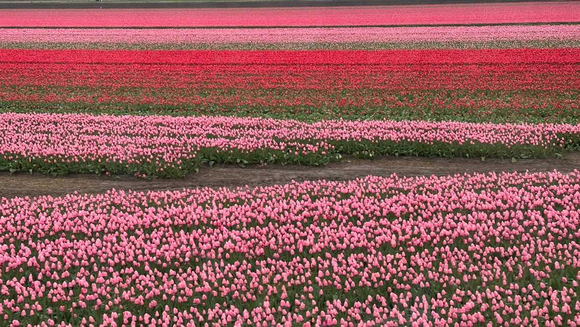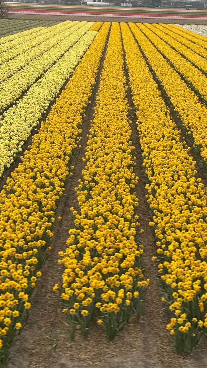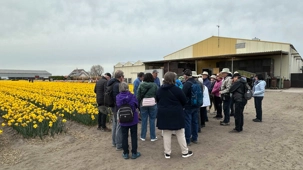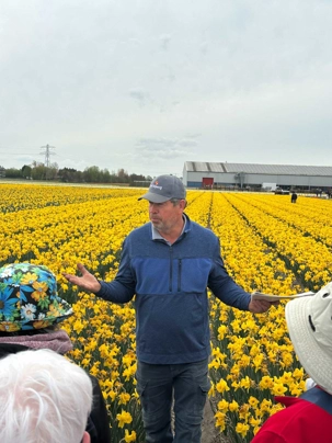 Le parc d'exposition est entouré d’immenses champs de tulipes, jacinthes et jonquilles et autres plantes à bulbes. Justement, nous avons le grand plaisir de visiter ce qui constitue une partie de l’envers du décor, soit une ferme de tulipes. Ici, ce n'est pas juste des champs colorés à perte de vue, mais l’histoire d’une famille des plus sympathique, transmise de père en fils depuis 4 générations.