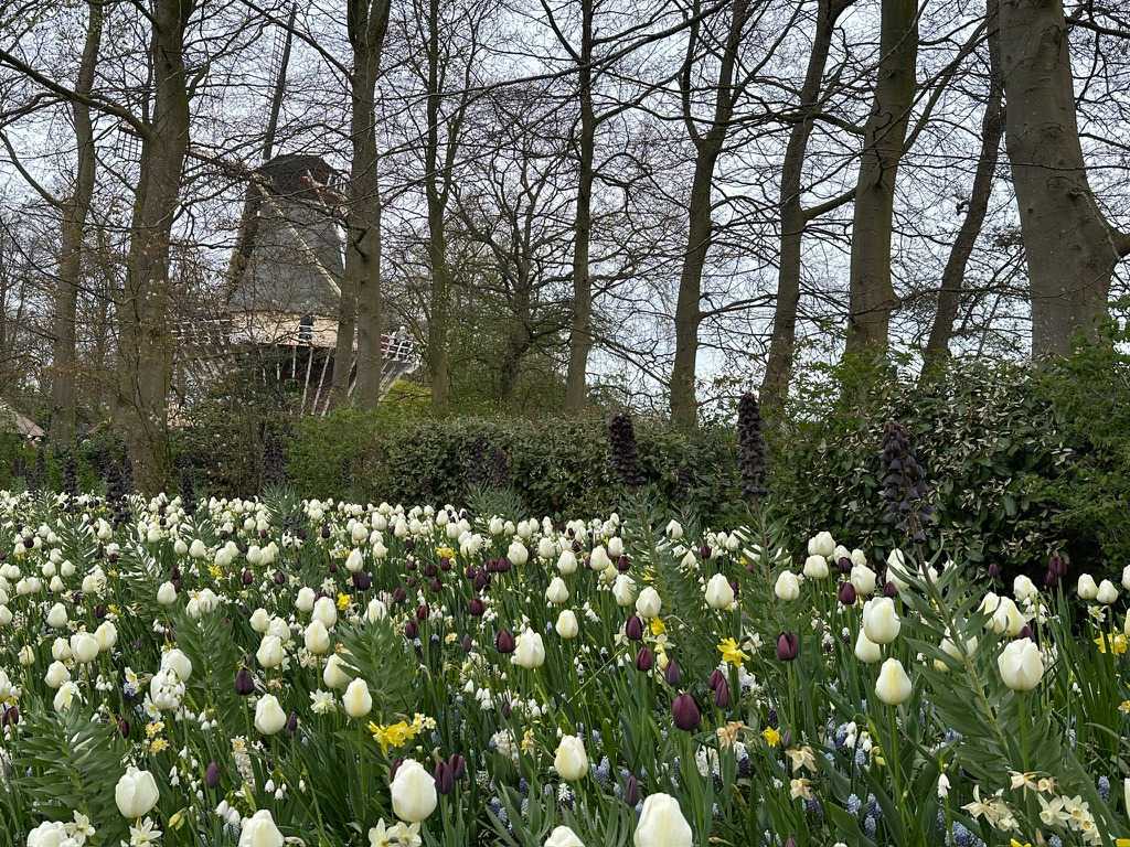 Aussi, plusieurs pavillons présentent des expositions de fleurs (tulipes, orchidées dans le pavillon Juliana). Le fameux moulin à vent datant de 1892, emblème du parc, fut installé en 1957. Il permet d'avoir un point de vue en hauteur sur les champs aux alentours. Les anciens jardins à la française du château ont été conservés, et y furent ajoutés des fontaines sculptées.