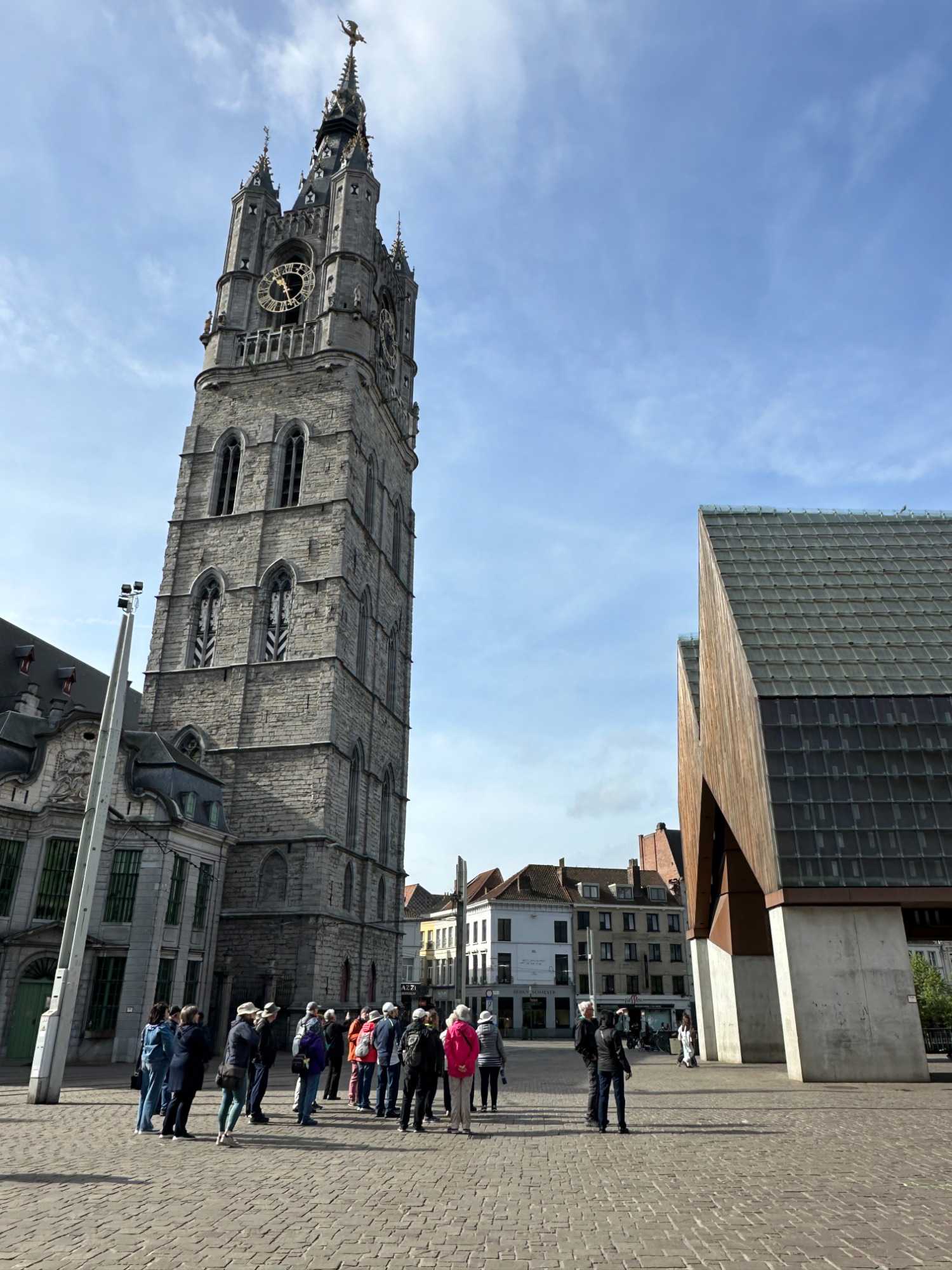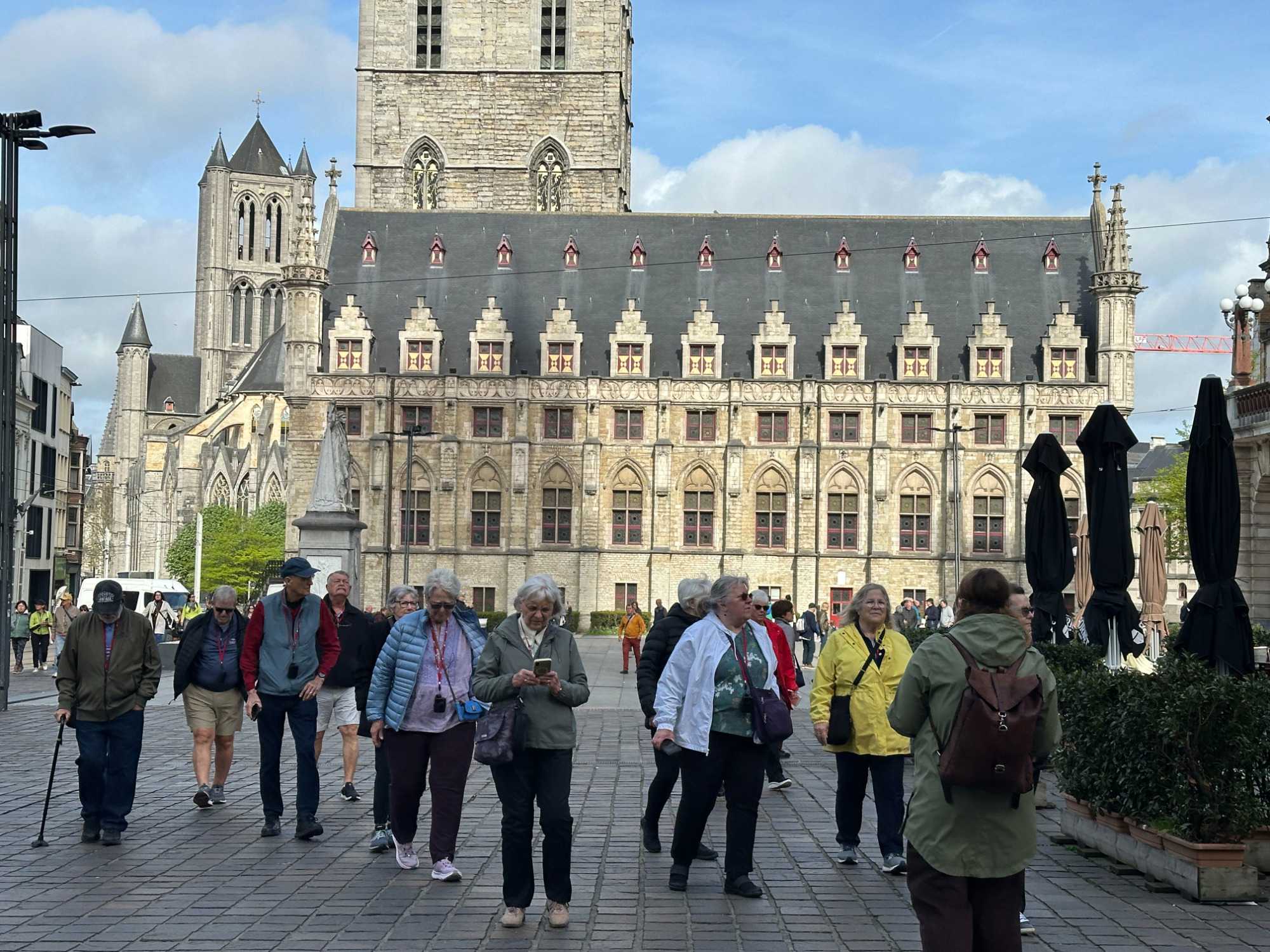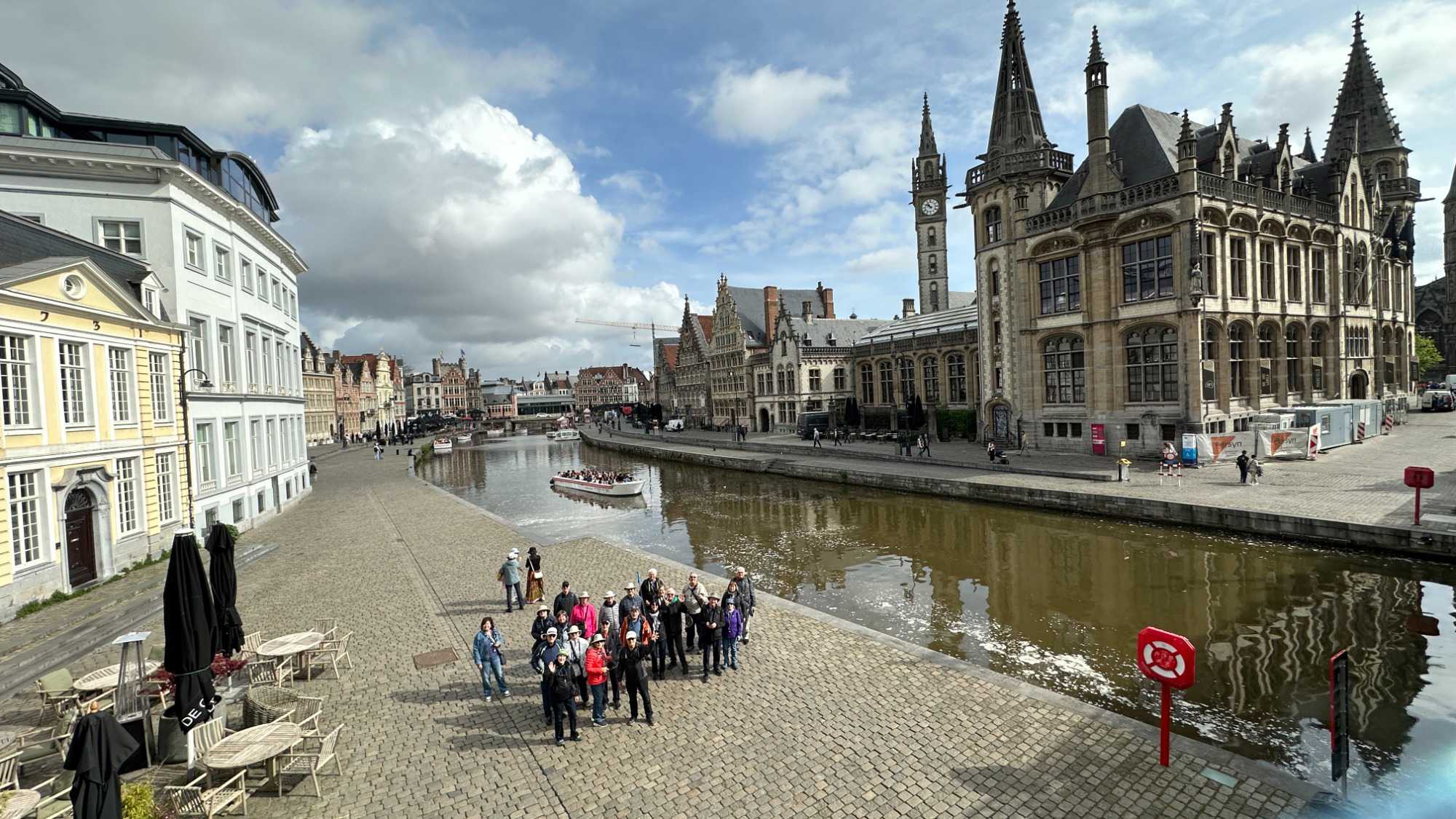Puis, vers 15h, une visite qui a marqué nos voyageurs menée par deux guides exceptionnels, nous mène au Château des comtes de Flandre. Rarement un château médiéval est construit au beau milieu de la ville. Construit tout en pierres en 1192, il témoigne de la richesse de Gand à l’époque, portée par le commerce des céréales, de la laine et la puissance des corporations, notamment les brasseurs, les bateliers, les bouchers et les boulangers. Derrière ses remparts et ses mâchicoulis, ces ouvertures permettant de défendre la forteresse, se dévoile un monde féodal où les paysans cédaient une grande partie de leurs récoltes, et où chevaliers et comtes vivaient au rythme des obligations, des cérémonies et de la guerre.
