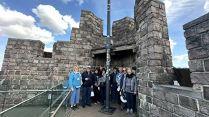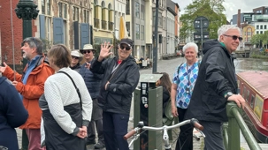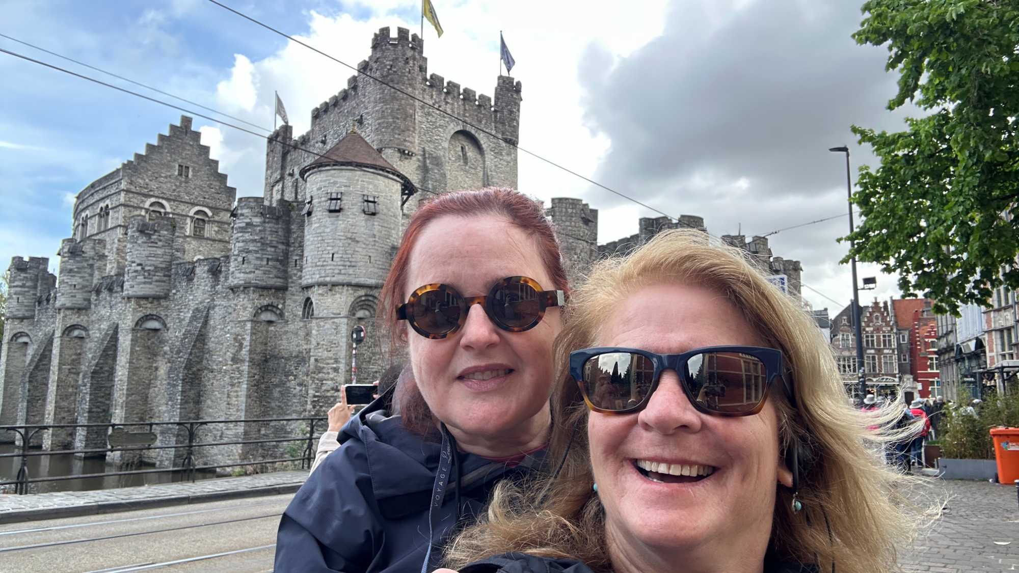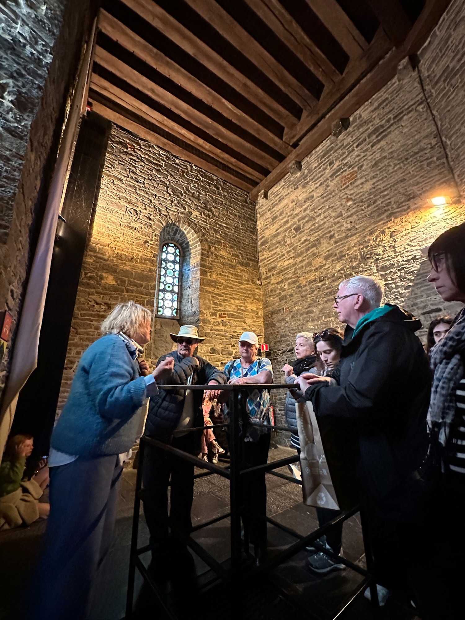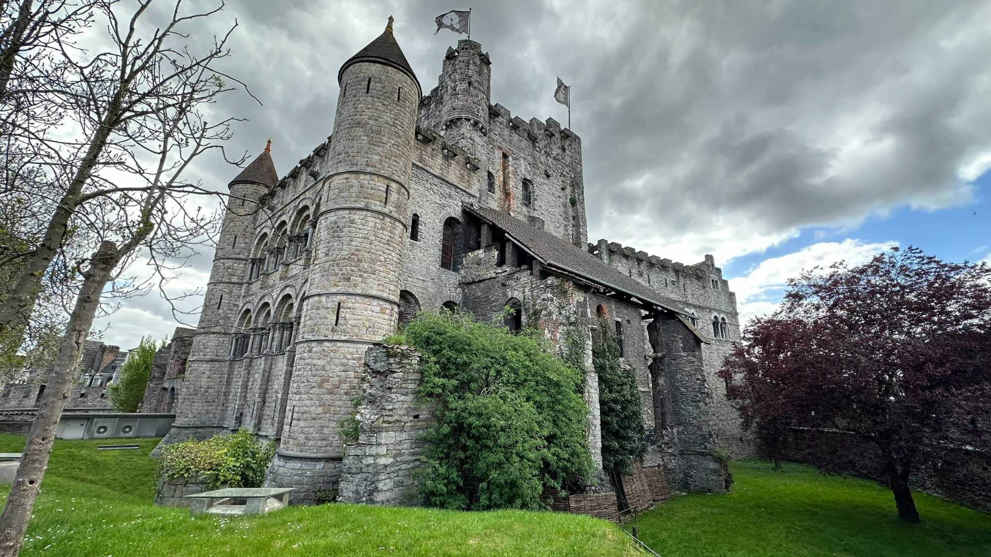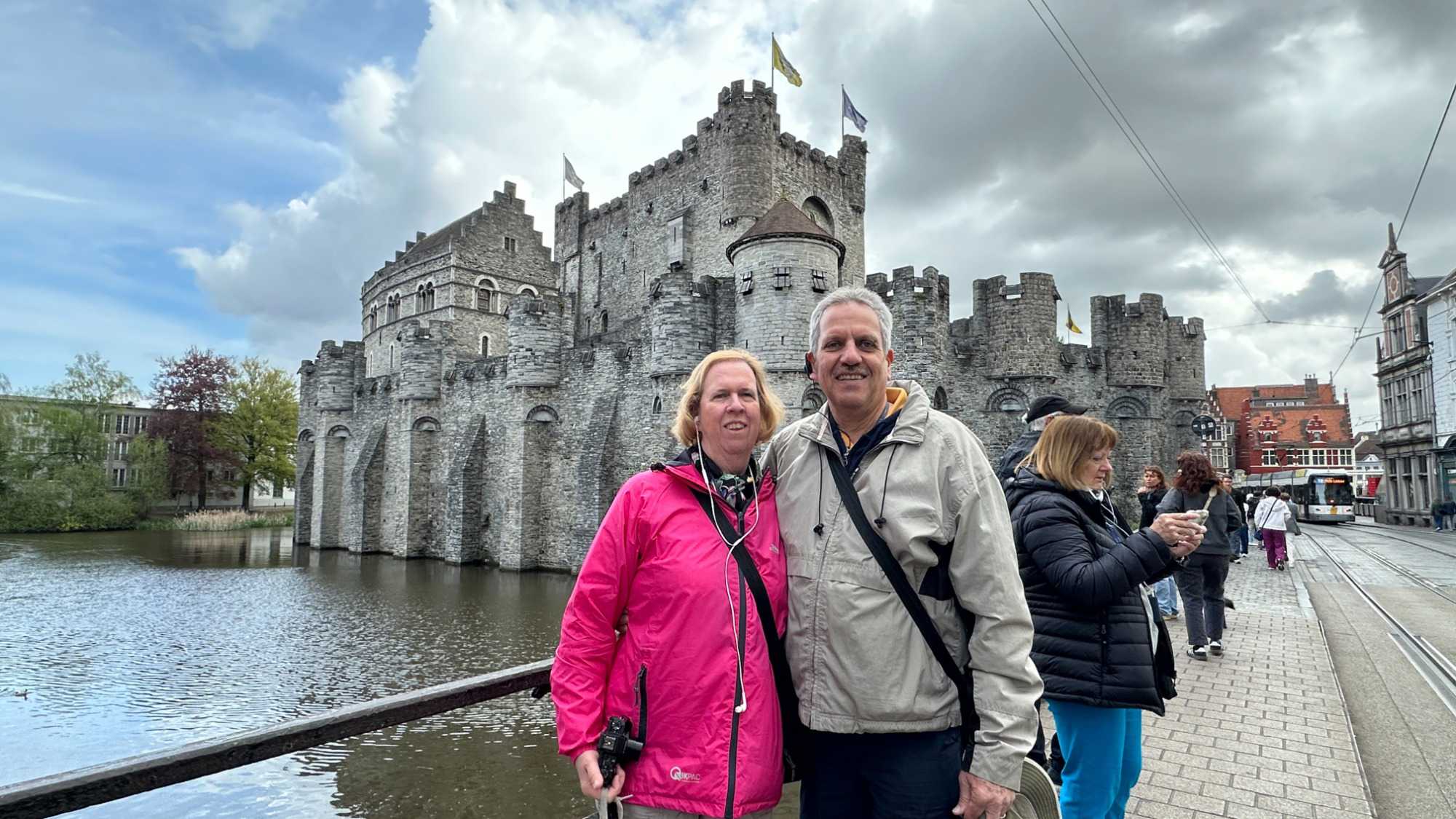 Puis, vers 15h, une visite qui a marqué nos voyageurs menée par deux guides exceptionnels, nous mène au Château des comtes de Flandre. Rarement un château médiéval est construit au beau milieu de la ville. Construit tout en pierres en 1192, il témoigne de la richesse de Gand à l’époque, portée par le commerce des céréales, de la laine et la puissance des corporations, notamment les brasseurs, les bateliers, les bouchers et les boulangers. Derrière ses remparts et ses mâchicoulis, ces ouvertures permettant de défendre la forteresse, se dévoile un monde féodal où les paysans cédaient une grande partie de leurs récoltes, et où chevaliers et comtes vivaient au rythme des obligations, des cérémonies et de la guerre.