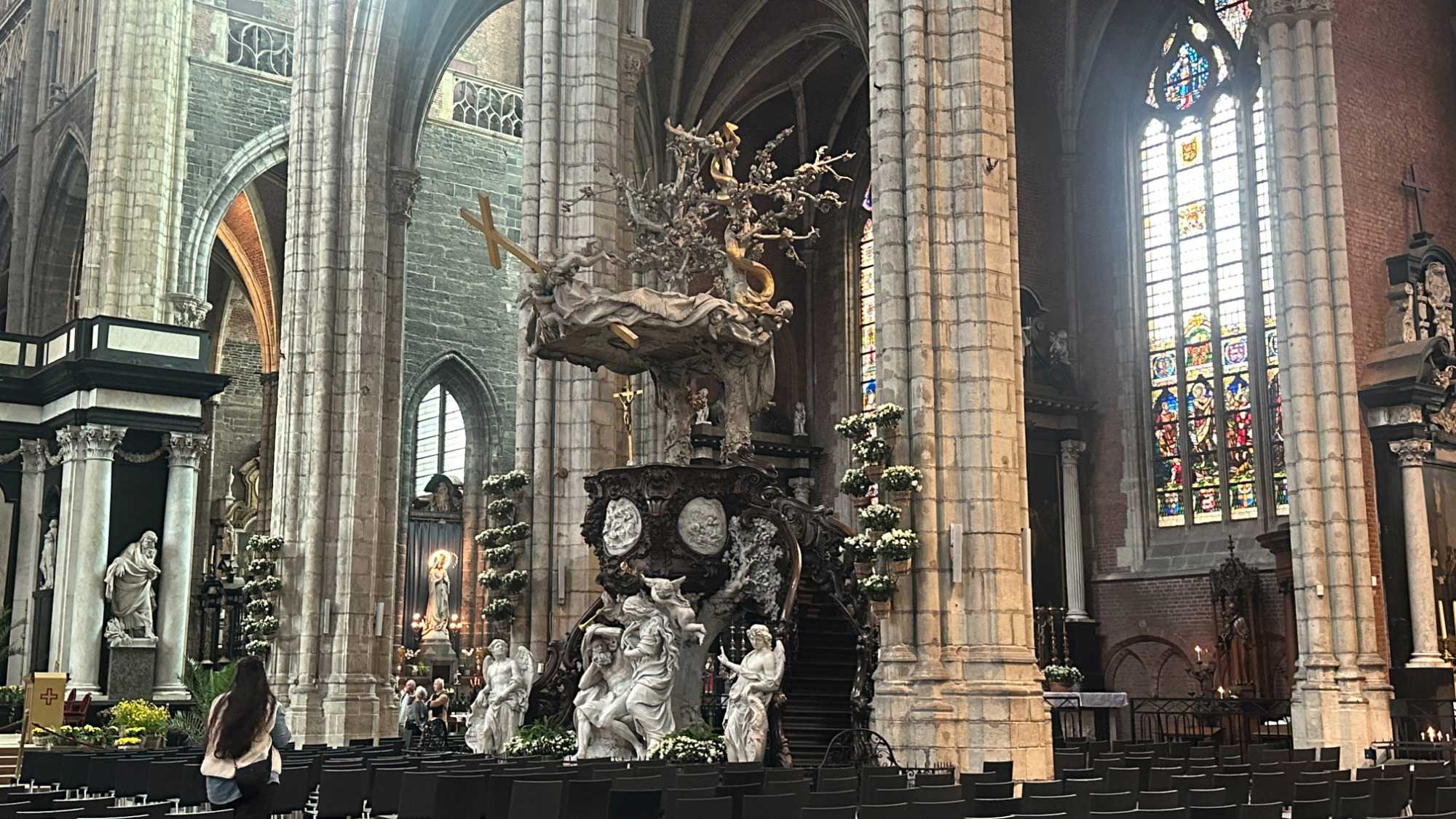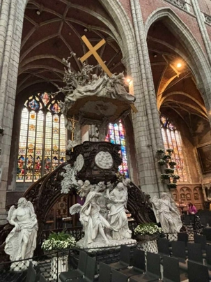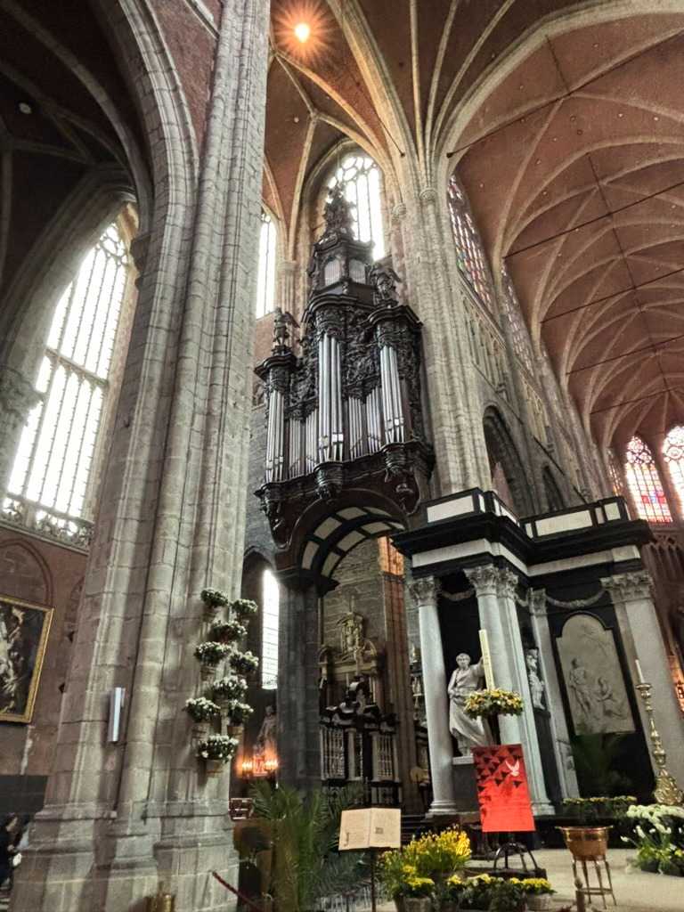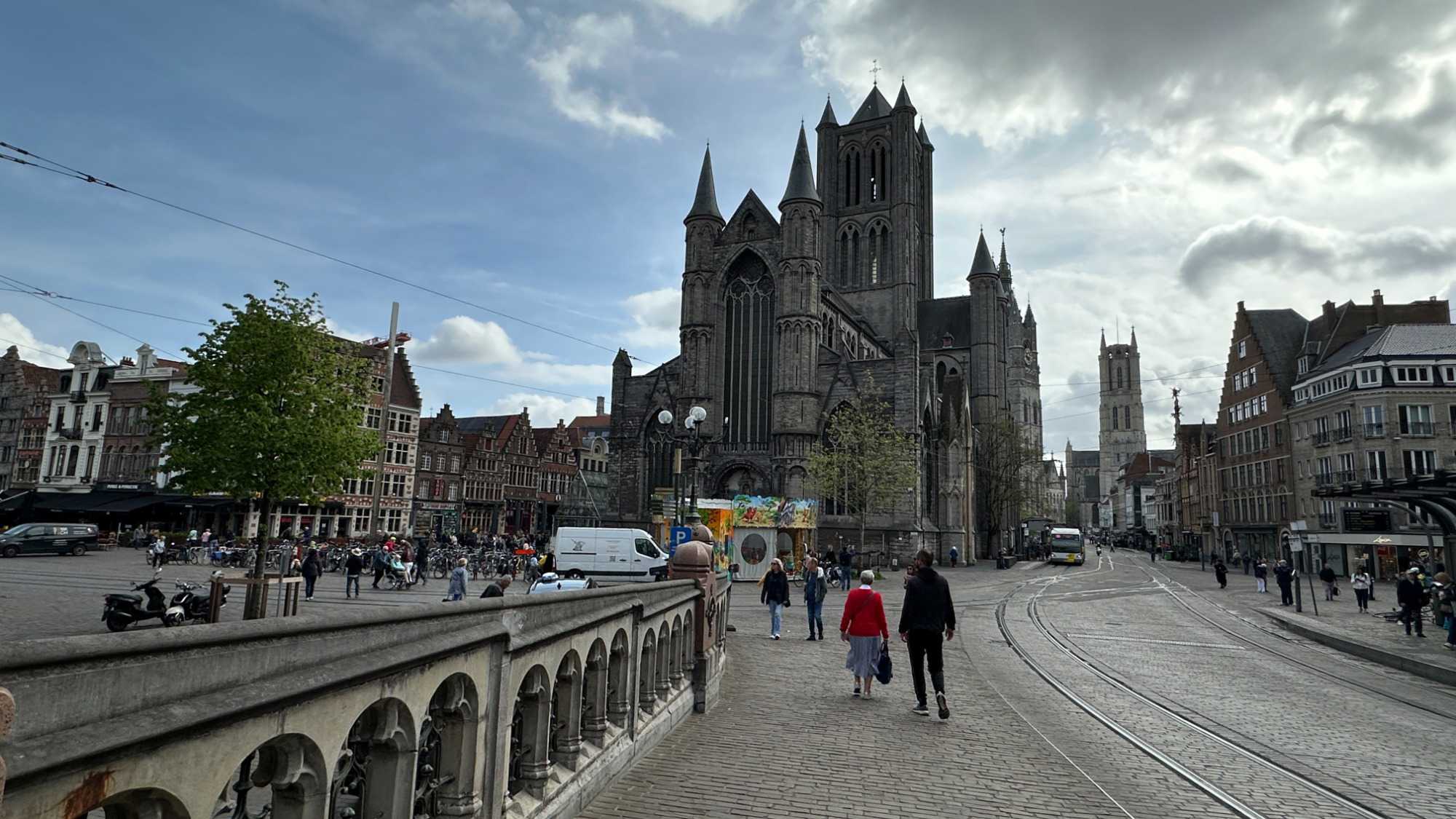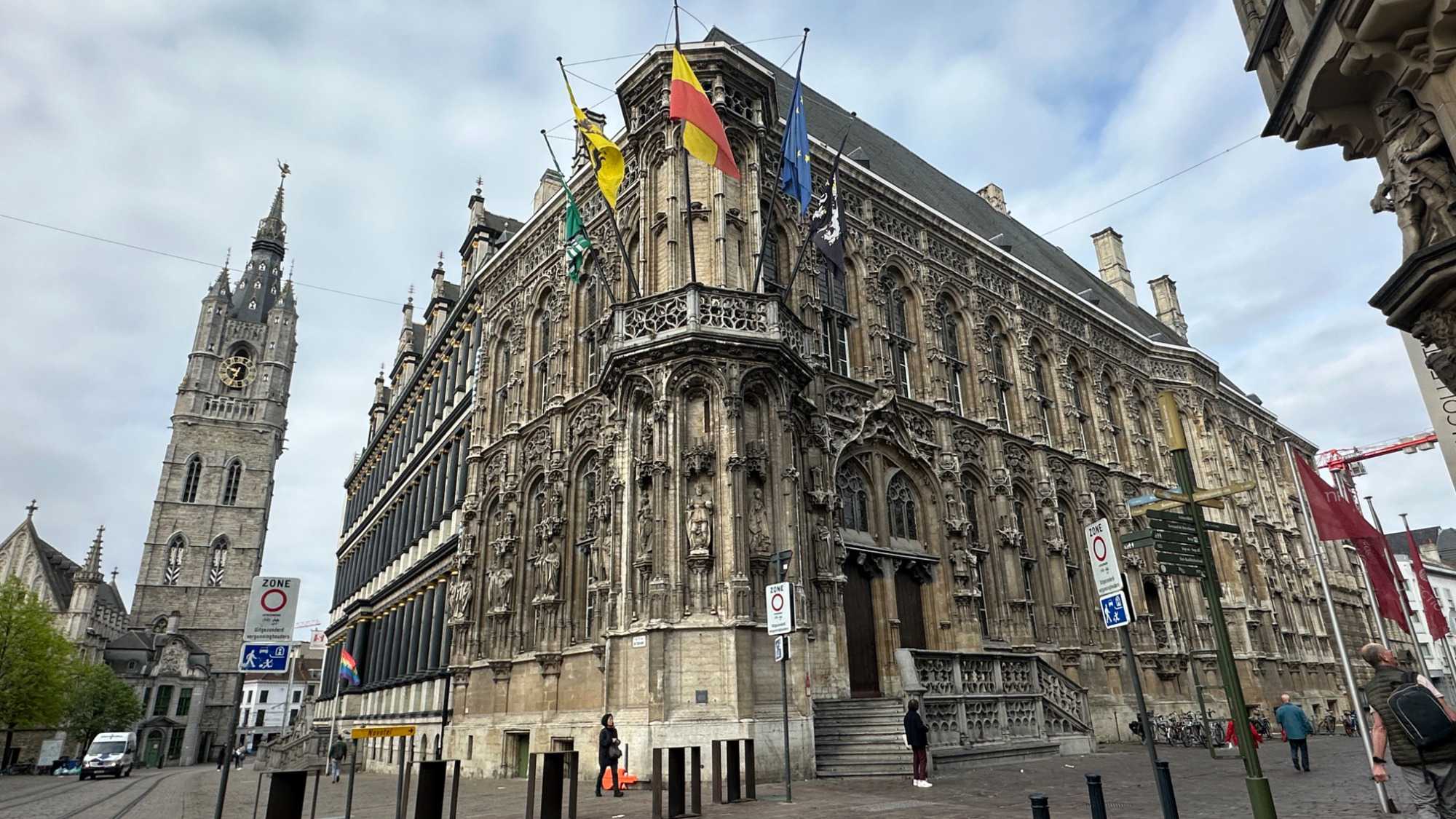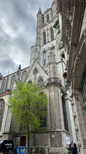 Un peu plus loin, la Cathédrale Saint-Bavon de Gand impose sa silhouette gothique. À l’intérieur, elle abrite un chef-d’œuvre absolu : le retable de l’Agneau mystique, considéré comme l’une des œuvres les plus importantes de l’histoire de l’art occidental.
