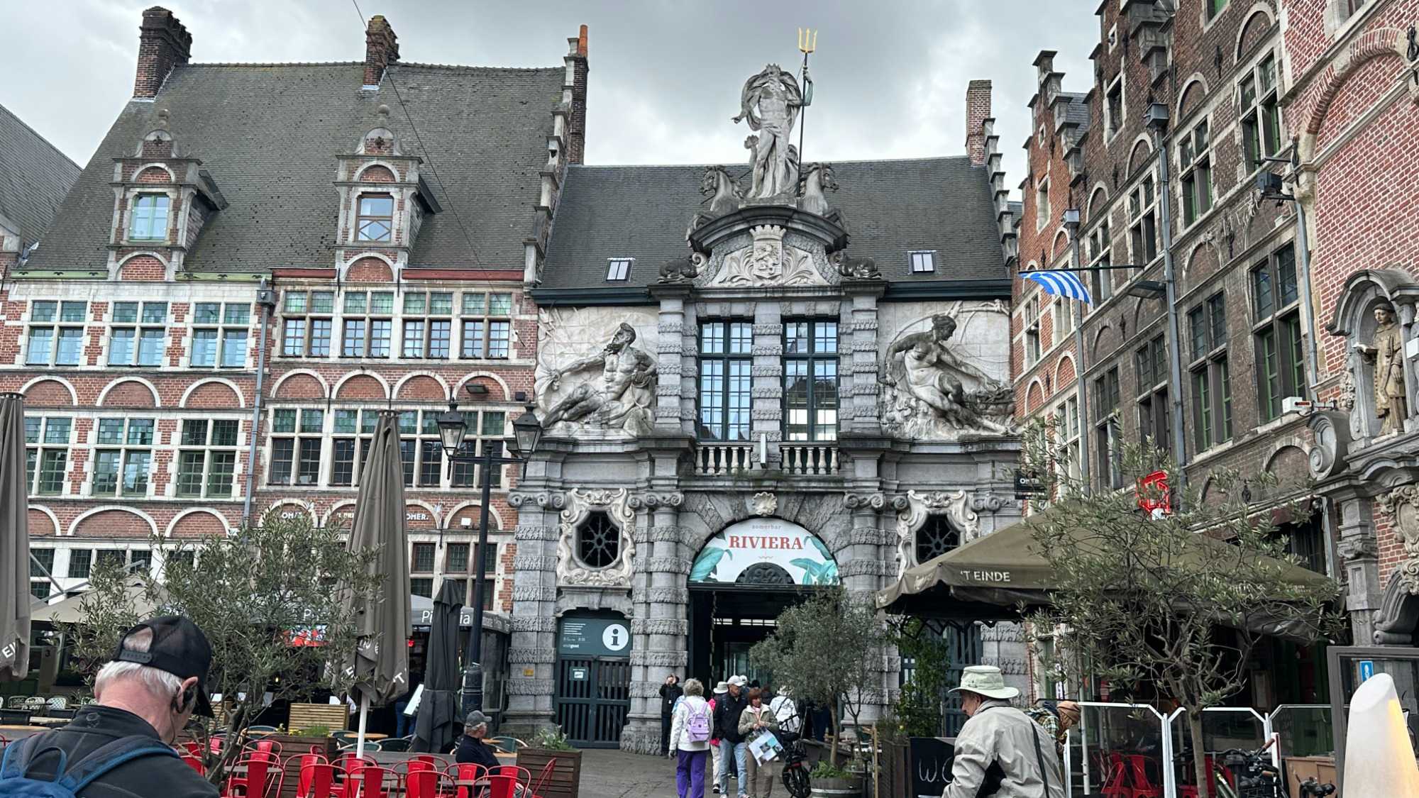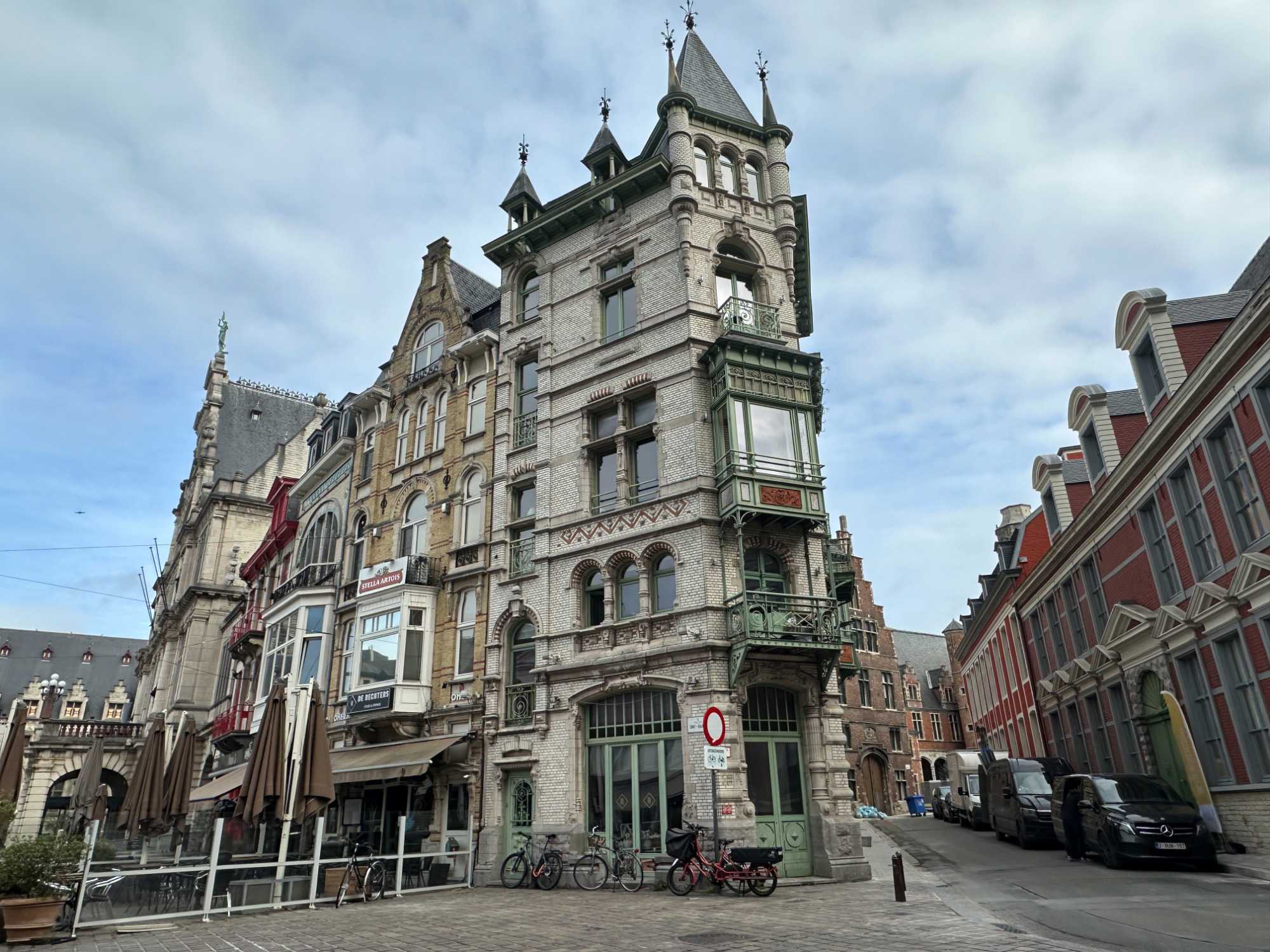C’est ici que Gand prend toute sa dimension. On y voit des maisons de guildes parfaitement alignées, des maisons dédiées autrefois à la mesure des grains fraîchement arrivés par bateau, et des terrasses animées. L’Hôtel Marriott et ses deux cygnes adossés, fut jadis un lieu où s’exerçait le plus vieux métier du monde. Le marché aux poissons, subissant actuellement une cure de rajeunissement, et les bâtiments de la corporation des bouchers. L’endroit est vivant, élégant, sans être figé dans le temps. On s’y arrête naturellement, pour regarder, pour respirer, pour profiter et même défiler en bâteau le temps d’une belle balade.