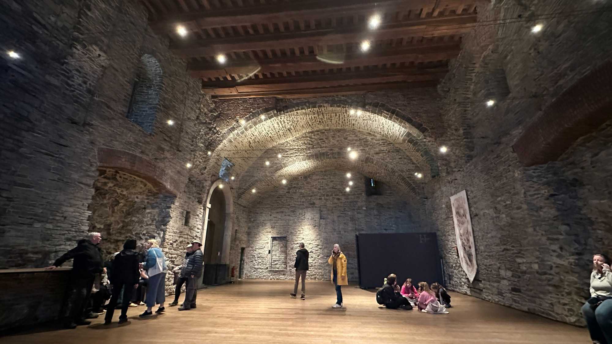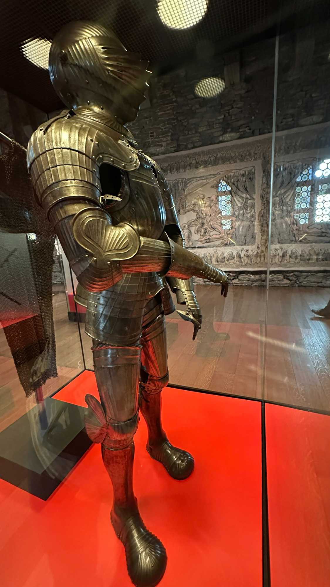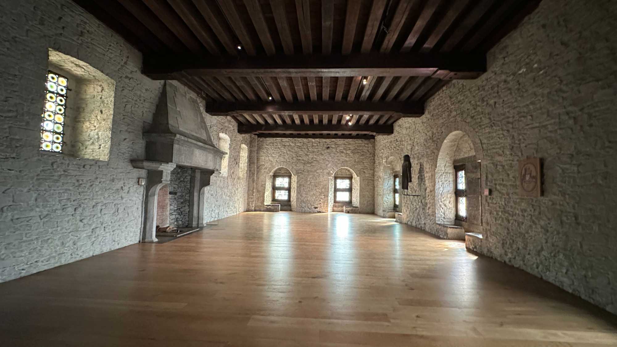 À l’intérieur, les espaces racontent une vie à la fois rude et organisée: le rez-de-chaussée du donjon, sans fenêtres, servait probablement de salle d’accueil des chevaliers, tandis que la grande salle, avec ses foyers ouverts, faisait office de lieu de réception, d’habitation et même de tribunal. Les écuries rappellent l’importance des chevaux, précieux et mieux logés que bien des habitants, dans une ville qui ne comptait que quelques puits d’eau, ils avaient le leur ! Entre armures pesant jusqu’à 20 kilos, expositions d’armes de défense ou de combat, ateliers de tissage et cérémonies de chevalerie, le château donne un aperçu concret du Moyen Âge, jusque dans ses aspects les plus sombres, avec des châtiments aussi brutaux qu’exemplaires comme nous avons pu le constater lorsque les guides nous ont expliqué les châtiments de la salle des tortures. Il y avait même les “oubliettes” salle dans laquelle les criminels attendaient leur sentences.