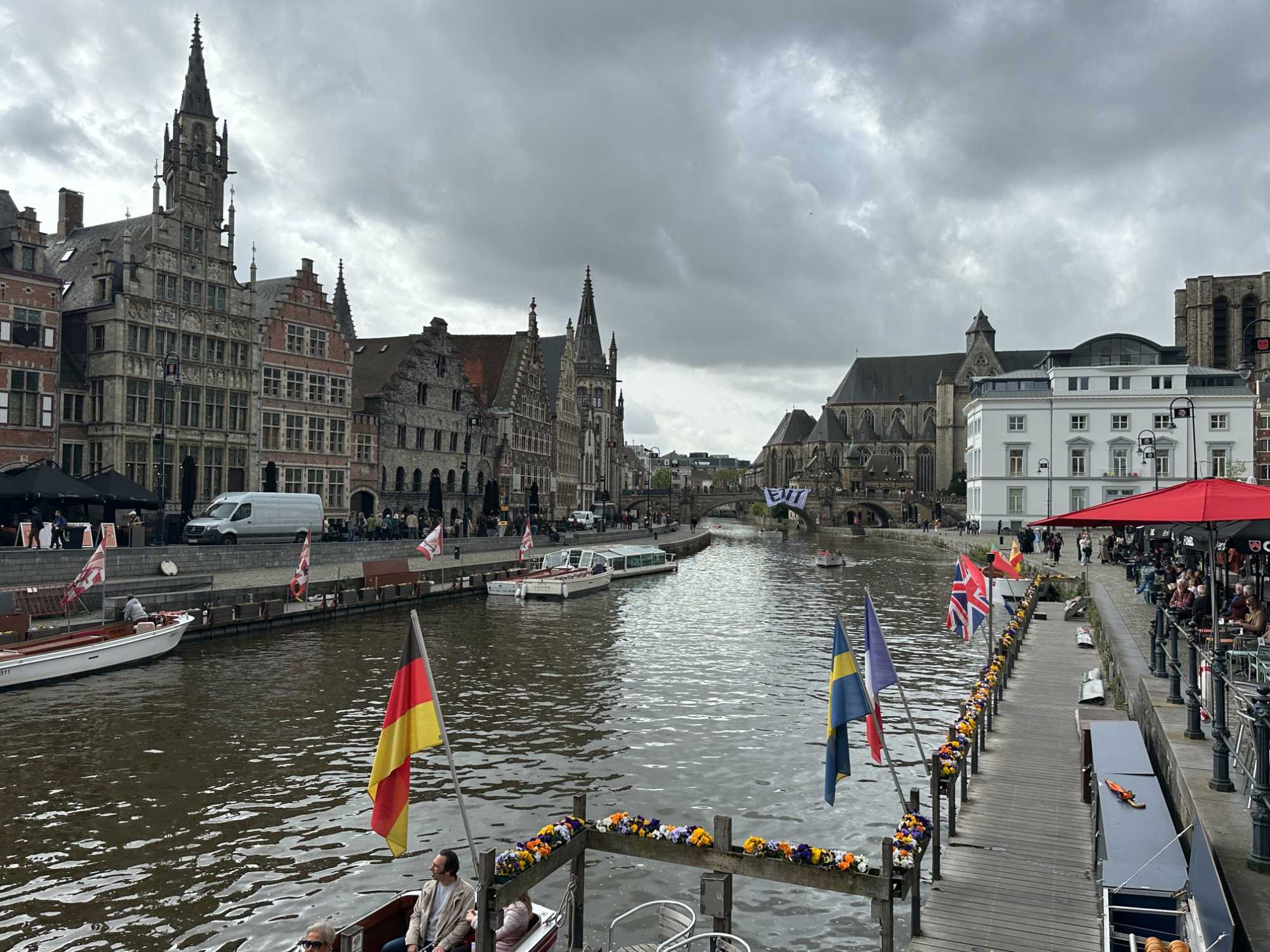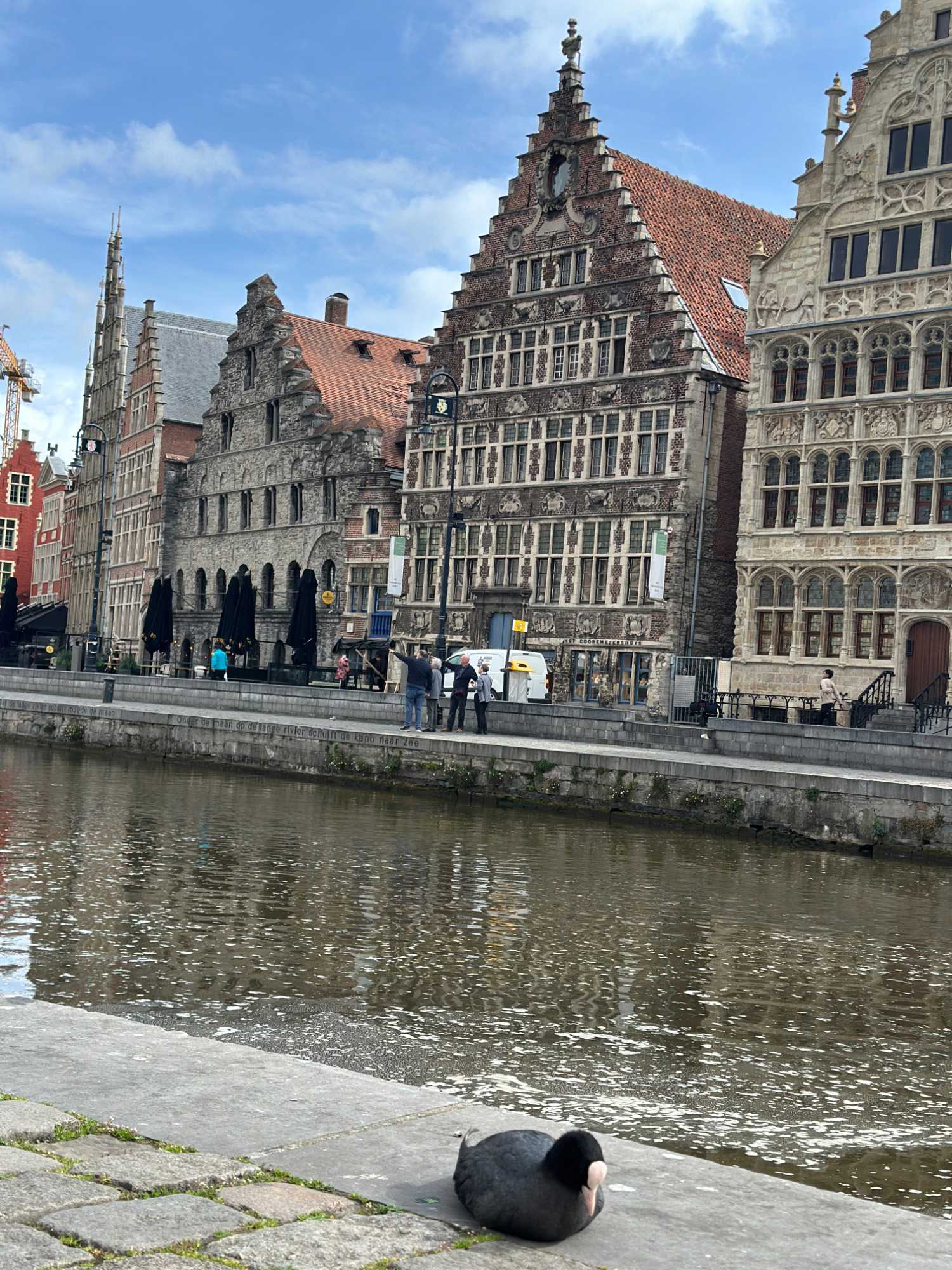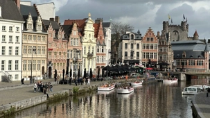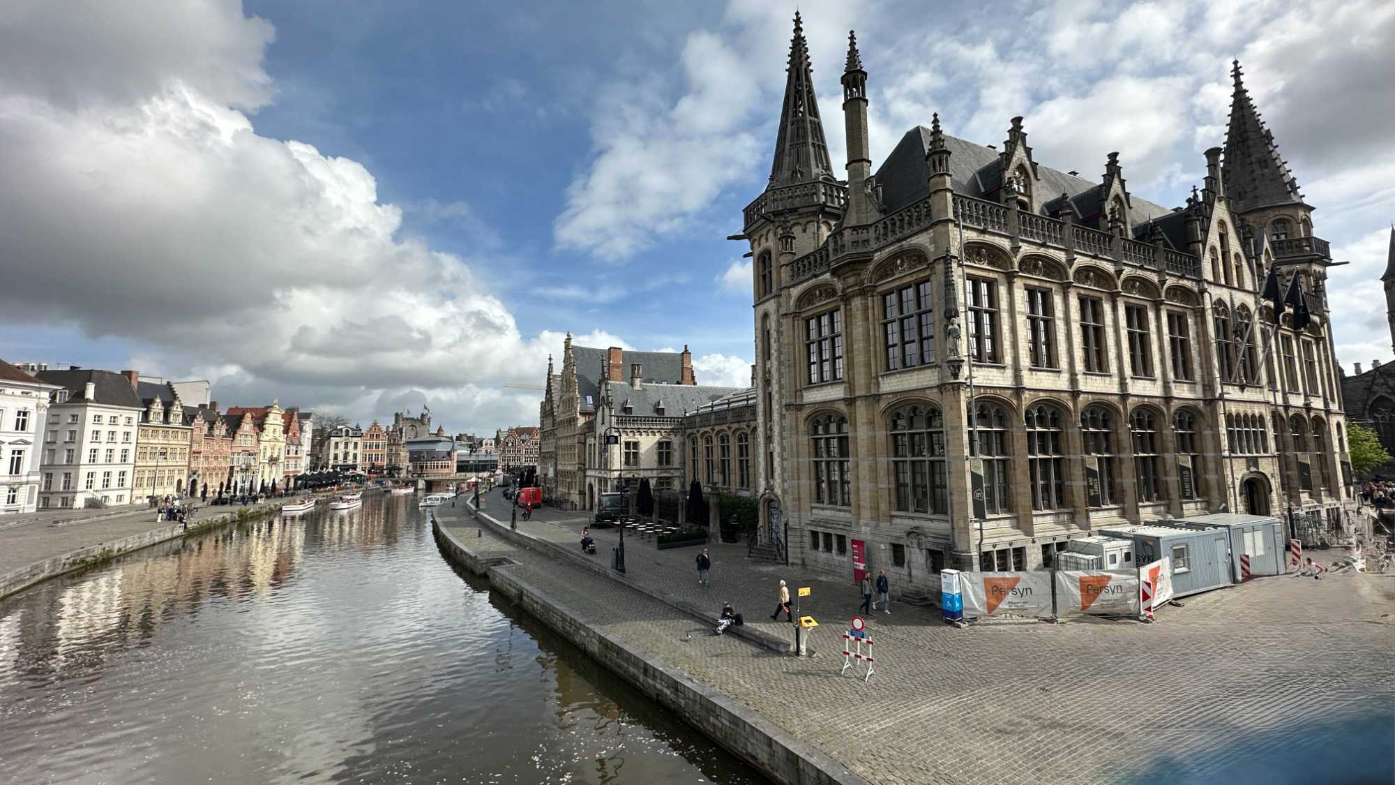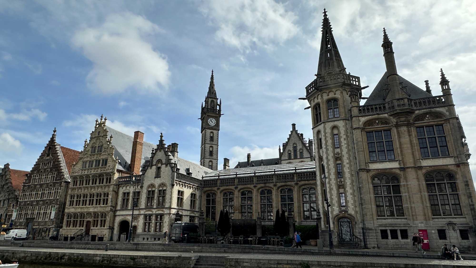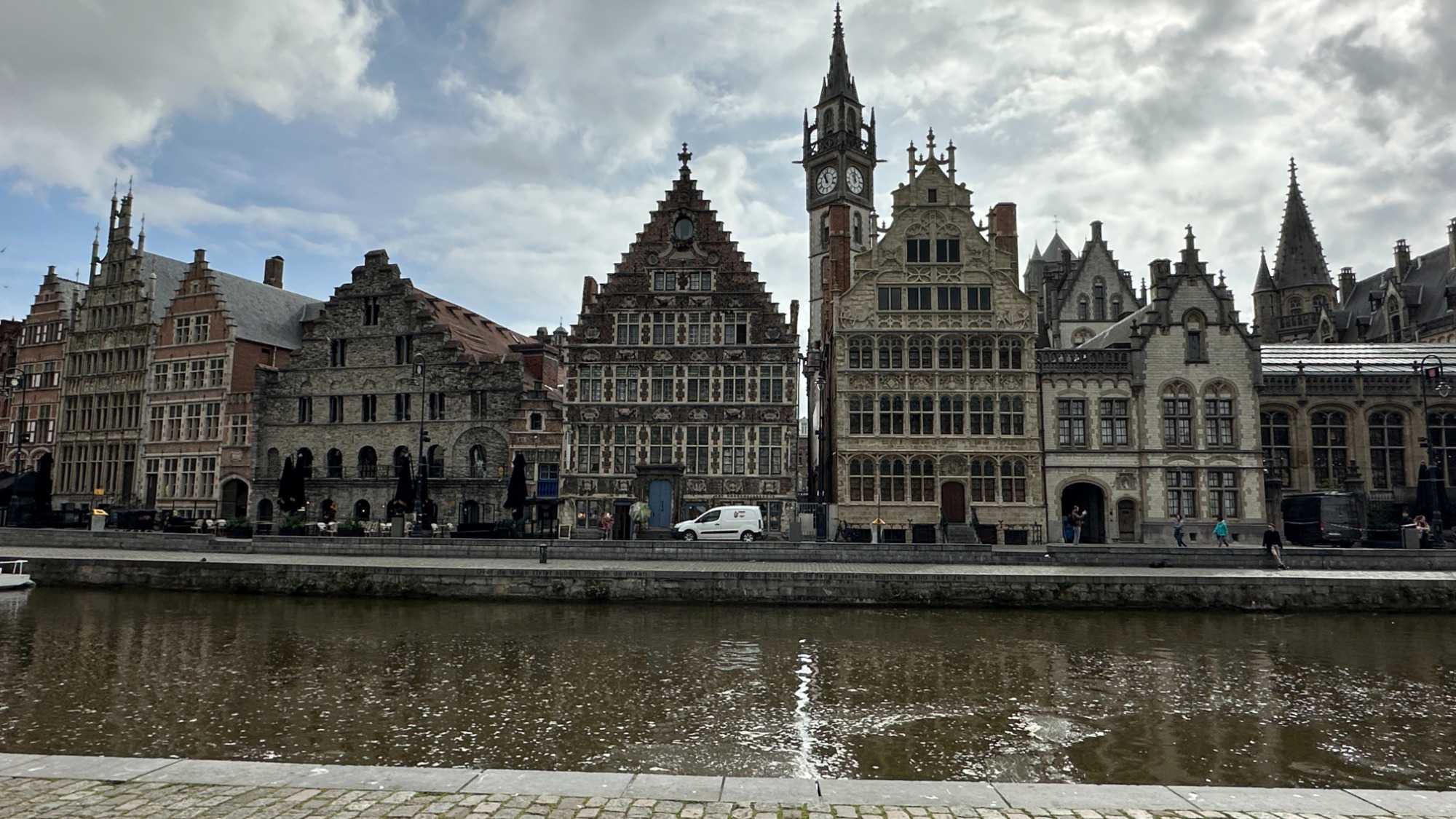 Puis vient un lieu emblématique de la ville : les quais de Graslei et Korenlei.