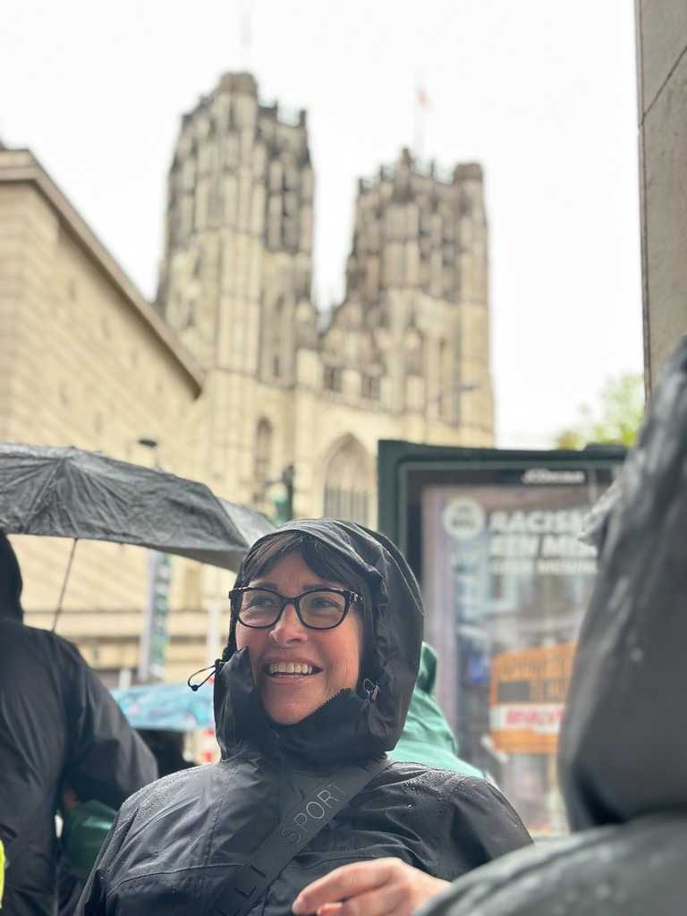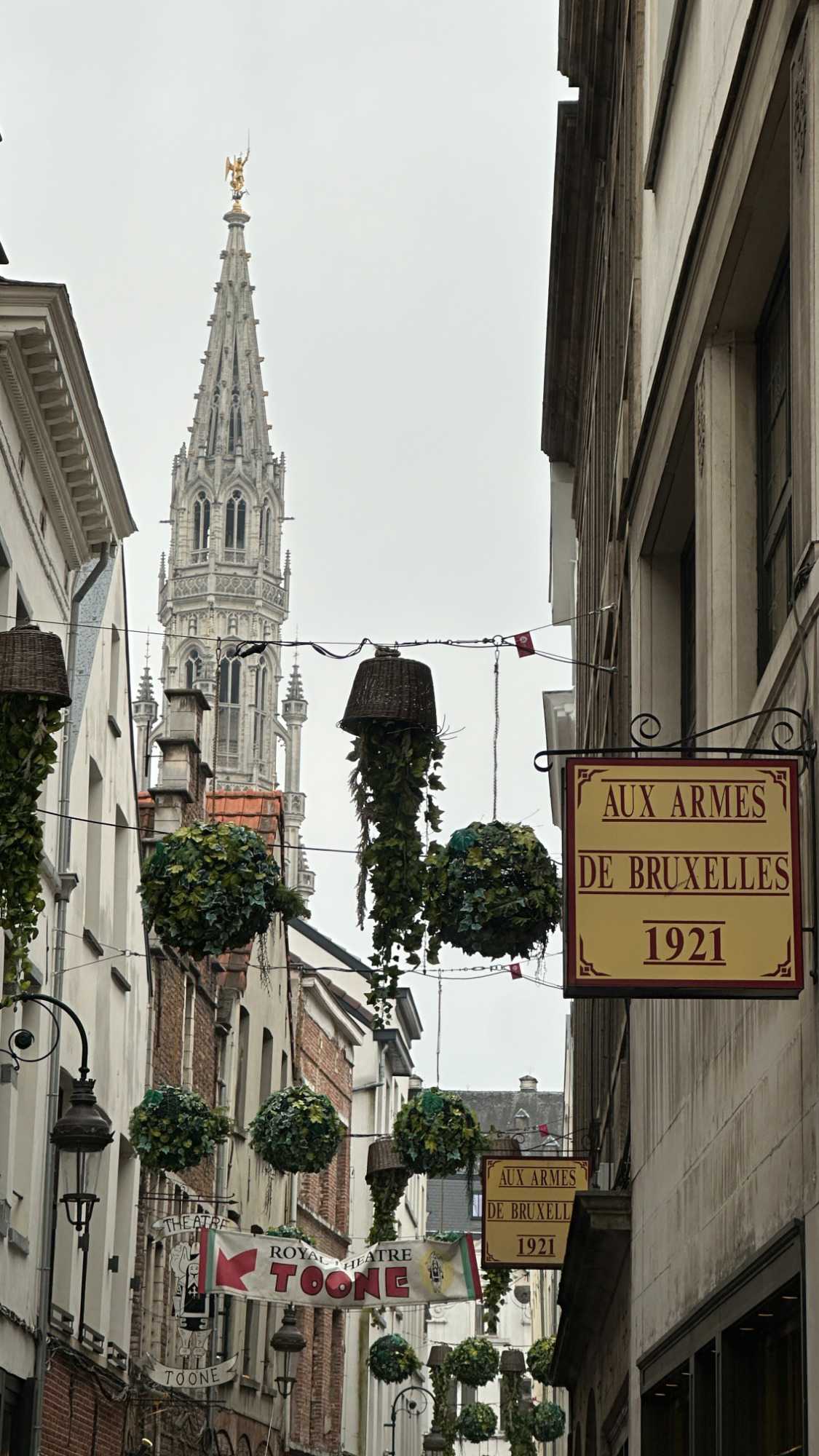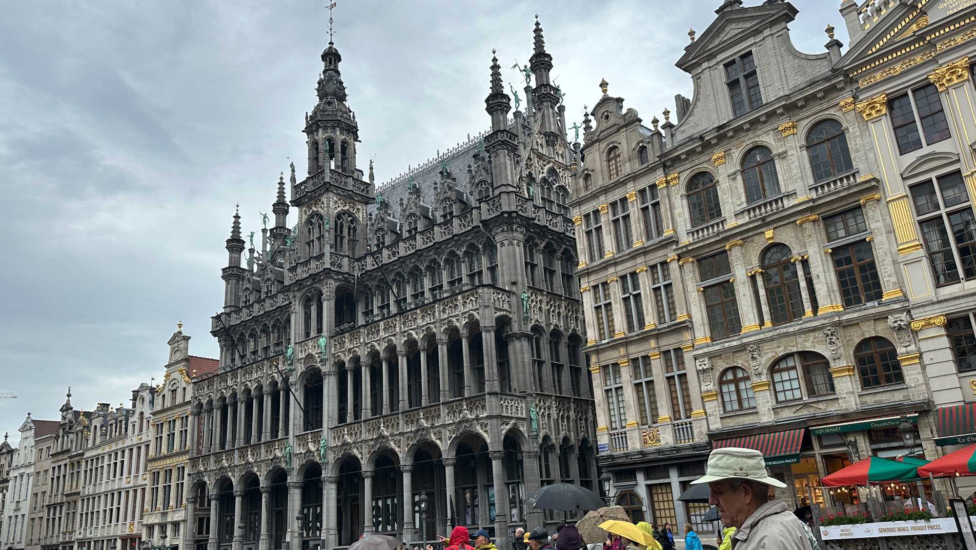 La Grand-Place, classée au patrimoine mondial de l’UNESCO, impressionne immédiatement. Entourée de maisons de corporations richement décorées, elle témoigne de la prospérité de la ville dès le Moyen Âge, alors que Bruxelles s’impose comme un centre commercial important dès le Xe siècle. Alain nous raconte que la place fut presque entièrement détruite, à l’exceptoin du si populaire hôtel de ville, lors du bombardement de 1695 par les troupes de Louis XIV… avant d’être reconstruite avec une élégance encore plus affirmée. Plusieurs des édifices des corporations ont leurs ornements couverts d’or. Ce cher Louis XIV n’a pas seulement fait de grandes constructions comme Versailles, Les Invalides ou la Place Vendôme, il en a aussi détruit beaucoup malheureusement. Comme quoi, même les pires catastrophes peuvent parfois laisser place à des chefs-d’œuvre.