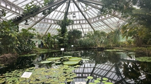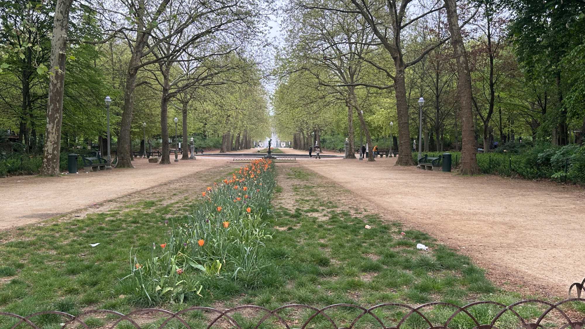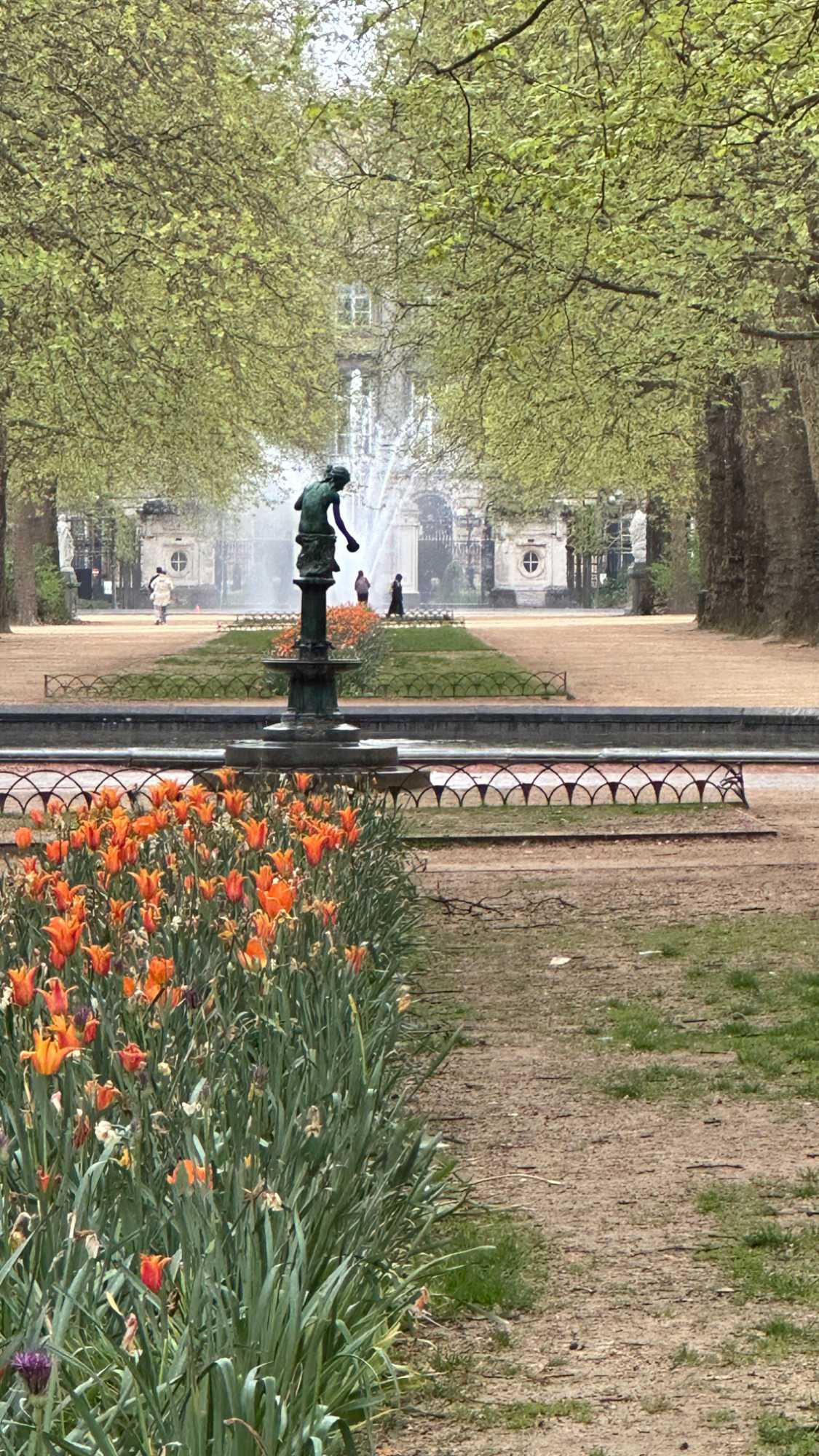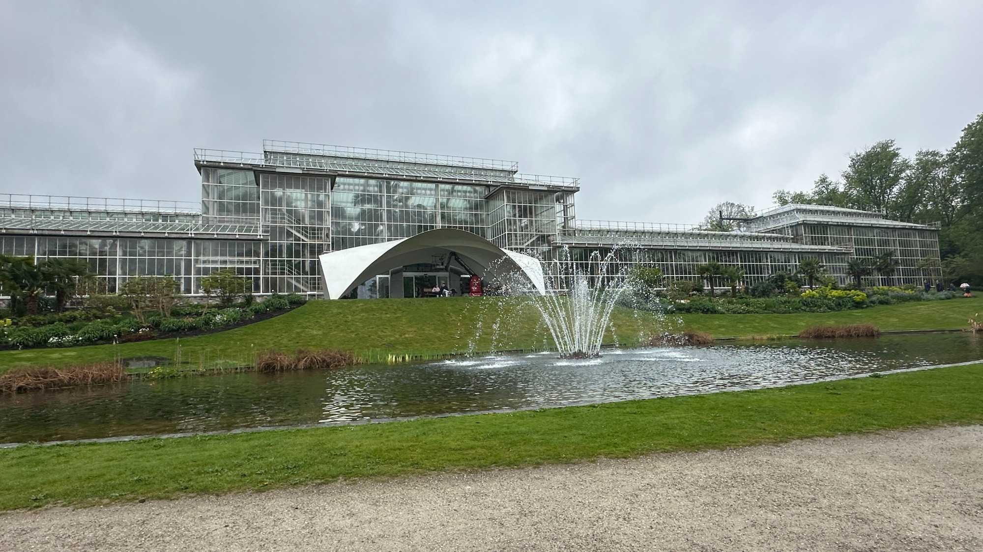 L’après-midi nous transporte dans un tout autre univers, plus vert, plus calme: le domaine du Château de Bouchout. Ce vaste jardin botanique de 82 hectares est une véritable bouffée d’air frais. Parmi ses attraits, il y a le Palais des plantes, un vaste complexe de serres, où l’on expose notamment les espèces qui démontrent l’évolution de la flore de tous les climats, le jardin des plantes médicinales, la serre des nymphéas géants,et l’étang du château avec ses canards. De sa vocation première de jardin botanique, il conserve un mélange de styles (français, italiens, anglais) et une grande variété d’arbres et de plantes. Le parc aménagé en terrasses fut inauguré en 1829. La terrasse la plus haute, au pied de l’orangerie, est de construction géométrique à la française. L’étage intermédiaire, à la mode italienne, comporte une roseraie en étoile et le jardin de l’Iris où fleurissent, d’avril à juin, quelque 40 variétés d’iris, symbole de la Région de Bruxelles-Capitale. La dernière partie du jardin descend en pente douce vers l’étang par des sentiers sinueux.