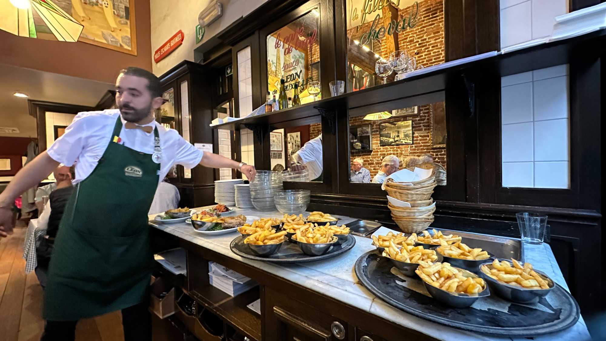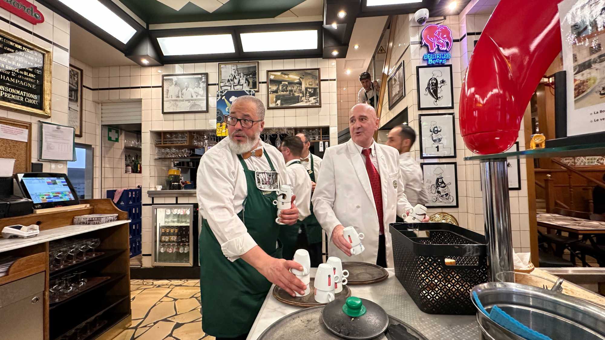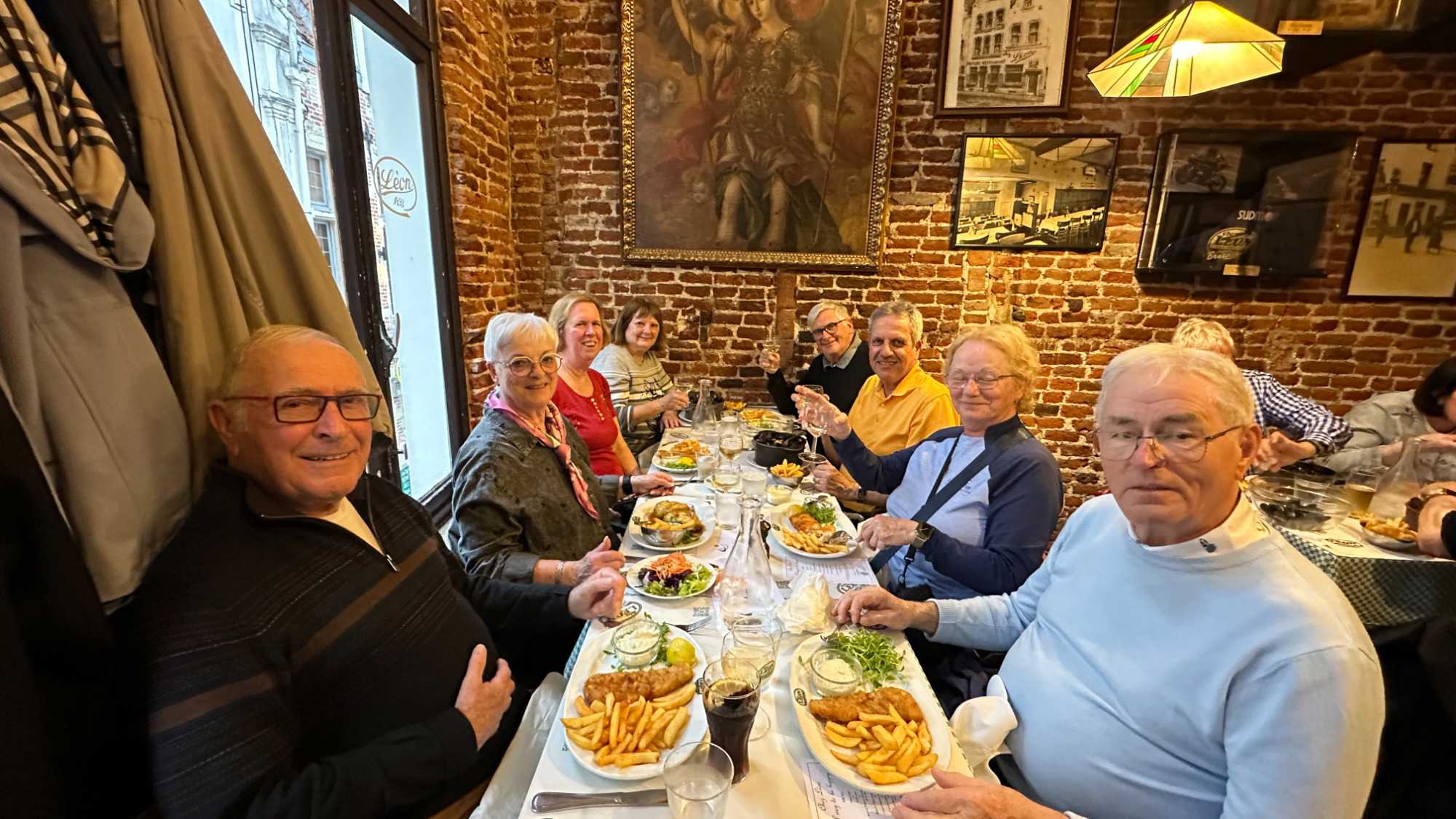 Après cet intermède apaisant, nous revenons un peu sur nos pas pour le souper à l’incontournable restaurant belge, Chez Léon, véritable institution de Bruxelles où les moules frites sont à l’honneur. Ici, l’ambiance est “Art Nouveau”, les assiettes généreuses, et les saveurs bien ancrées dans la tradition belge. Nous n’avons pas été décus; bonne qualité de nourriture, service agréable et courtois malgré les 230 places assises. Nous avons pu constater que le restaurant était bien rempli. Sans la nommer car elle se reconnaîtra, une de nos voyageuse a même retenu l’attention de notre serveur! Les coups de cœur du jour? La majesté de la Grand-Place, sans hésitation.