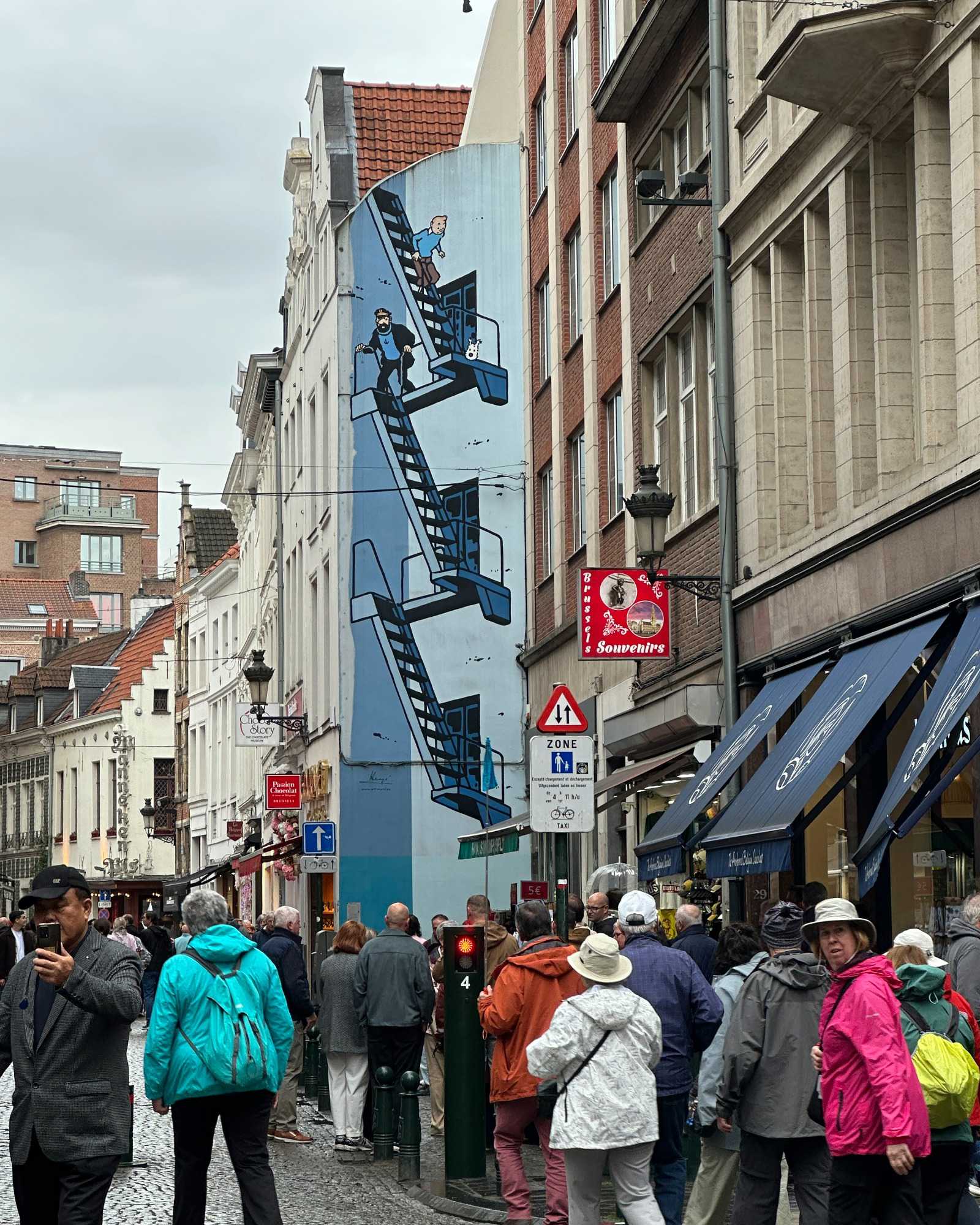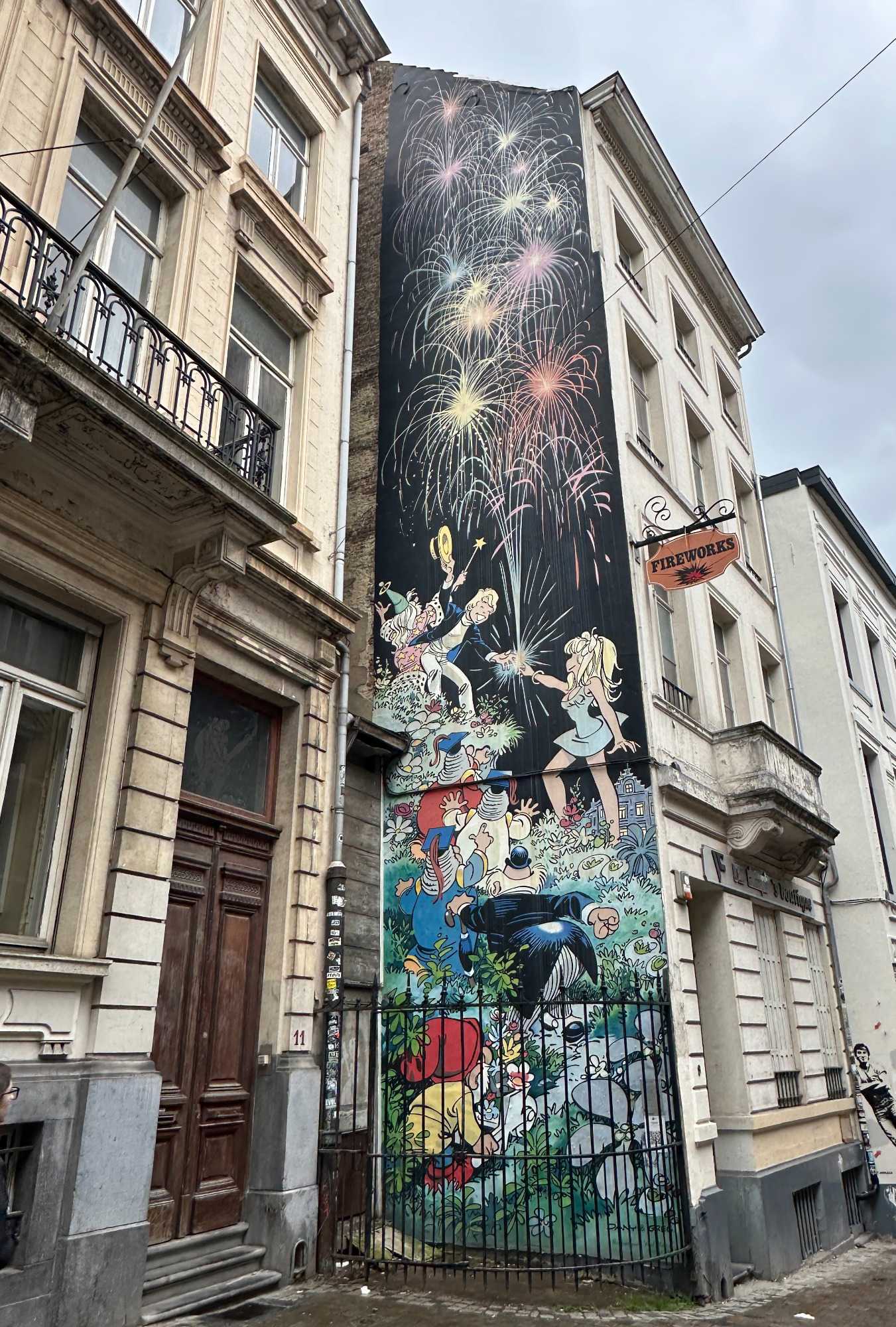 Mais Bruxelles ne se résume pas à ces icônes. En levant les yeux, on découvre une ville où les styles architecturaux cohabitent avec une étonnante harmonie : façades classiques, touches contemporaines et surtout, ces merveilles d’Art nouveau signées notamment par Victor Horta à la fin du XIXe siècle. Une période où Bruxelles s’inscrit pleinement dans la modernité, portée par l’industrialisation et une créativité débordante. Nous avons même eu la chance de trouver quelques murales de bandes dessinées de Tintin, Milou, le capitaine Haddock et Martine à la plage!