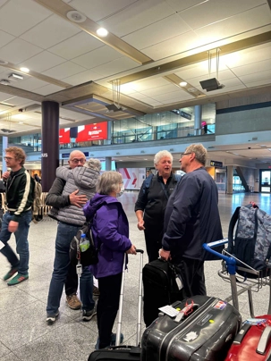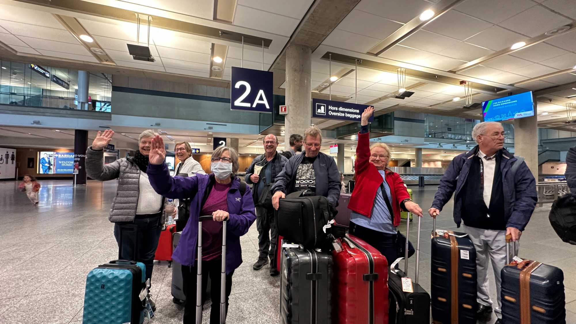 Comme toute bonne chose à une fin, nous voici aujourd’hui sur le chemin du retour. Le cadran sonne à 5h, on rassemble les derniers bagages et nous embarquons le tout dans l’autocar de notre fidèle chauffeur Fonz que nous voyons pour la dernière fois. Ce sera une autre journée ensoleillée. Valises embarquées, trajet allongé vers l’aéroport en raison des nombreux travaux sur les autoroutes, ce qui a donné de légères sueurs froides à nos voyageurs, formalités d’enregistrement réalisées avec succès, il ne nous reste qu’à nous diriger vers la porte de l’embarquement, lequel a déjà commencé d’ailleurs!