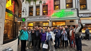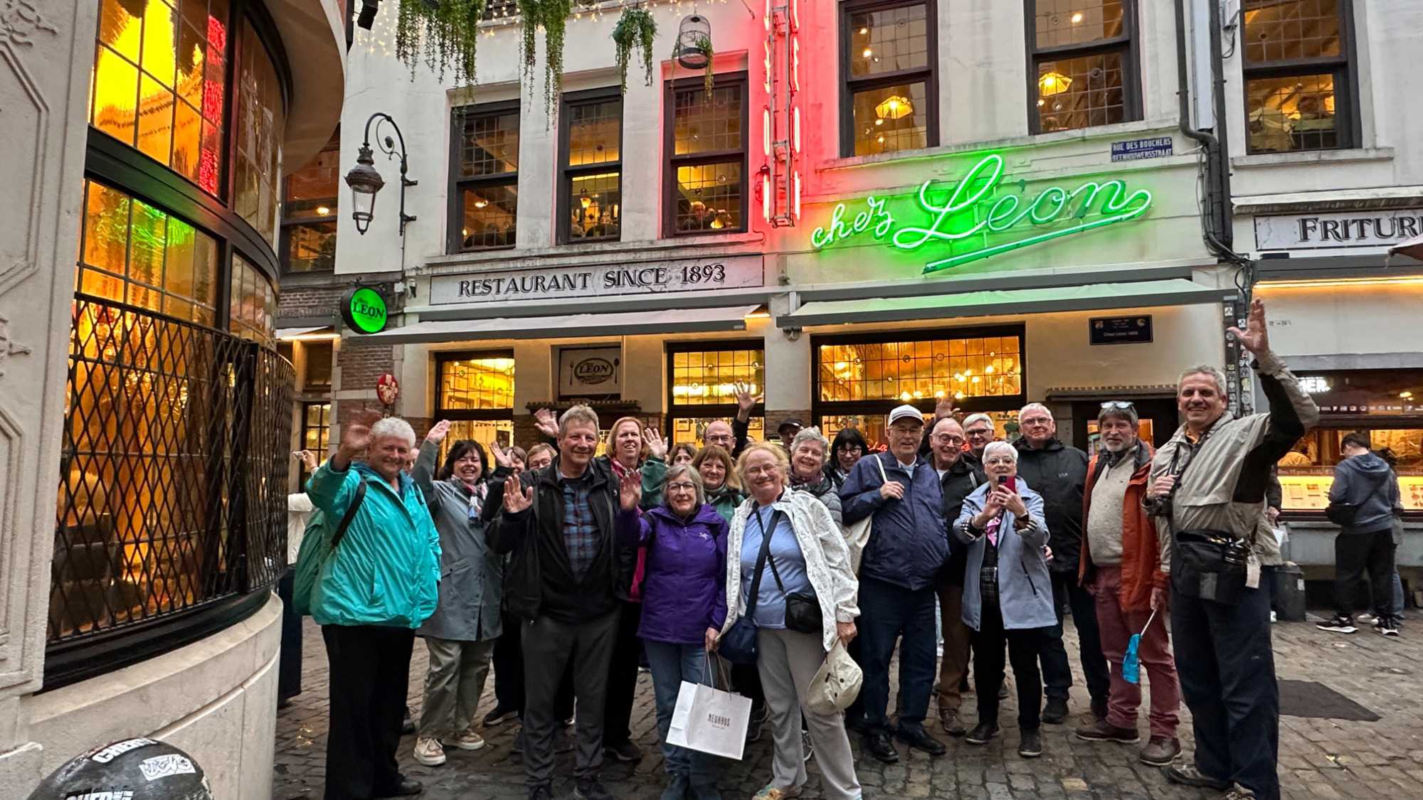 Je fais une parenthèse ici. J’ai reporté un paragraphe du récit d’hier à celui d’aujourd’hui pour être certaine que vous ayez les yeux reposés pour le lire. Je parlais de belles rencontres humaines faites tout au long de notre parcours. Voilà que la fin de ce récit est l’occasion de remercier Alain Debaecke, notre guide pendant toute la durée du voyage, qui nous a d’abord si bien accueillis à notre arrivée et nous a franchement fait tomber en amour avec les Pays-Bas, la Hollande, la Flandre….ce plat pays qui est celui de Jacques Brel, et sa Belgique natale. Nous le remercions très chaleureusement en lui adressant nos bons mots, nos meilleurs vœux de bonne continuité et en lui remettant une carte comprenant les bons mots de chacun ainsi qu’une bouteille de notre bel élixir blond, vous l’aurez deviné le sirop d’érable. Fonz a eu aussi droit à cette gâterie qu’il découvrira avec plaisir, du moins, nous l’espérons.