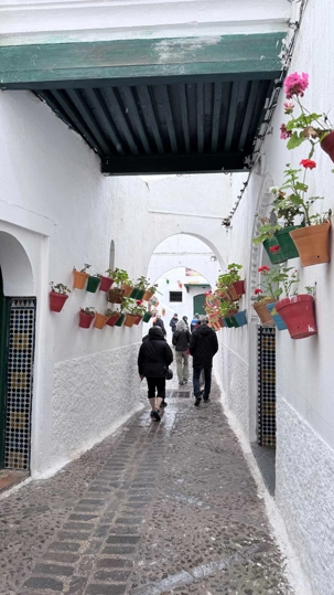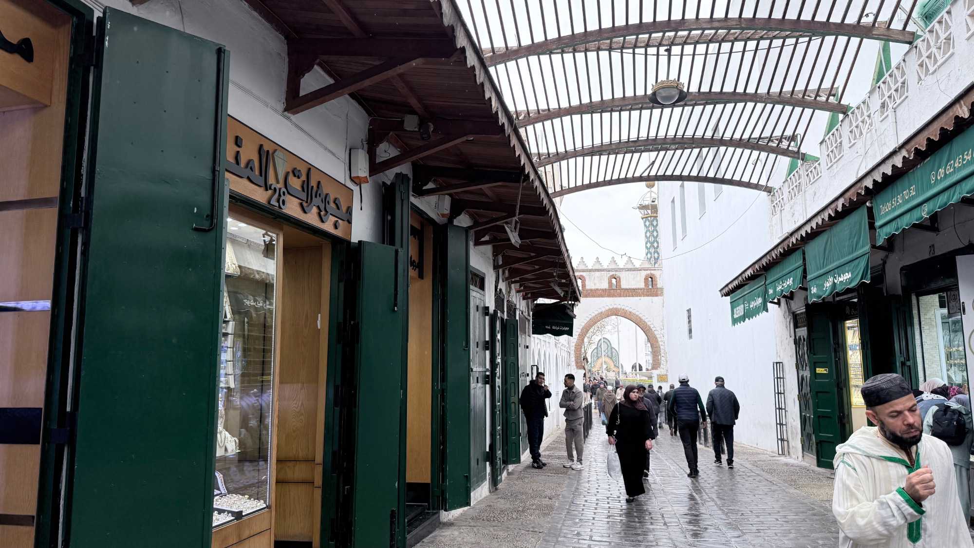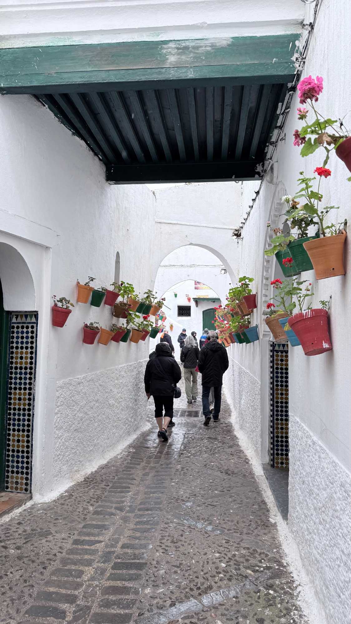 Puis, changement total d’ambiance en arrivant à Tétouan. Ici, tout semble plus calme, plus doux. La ville a des airs de petit village andalou avec ses maisons blanches, ses ruelles étroites et son atmosphère paisible. On prend le temps de flâner, de regarder les détails, de s’imprégner de cette ambiance unique où se mêlent influences espagnoles et traditions marocaines.