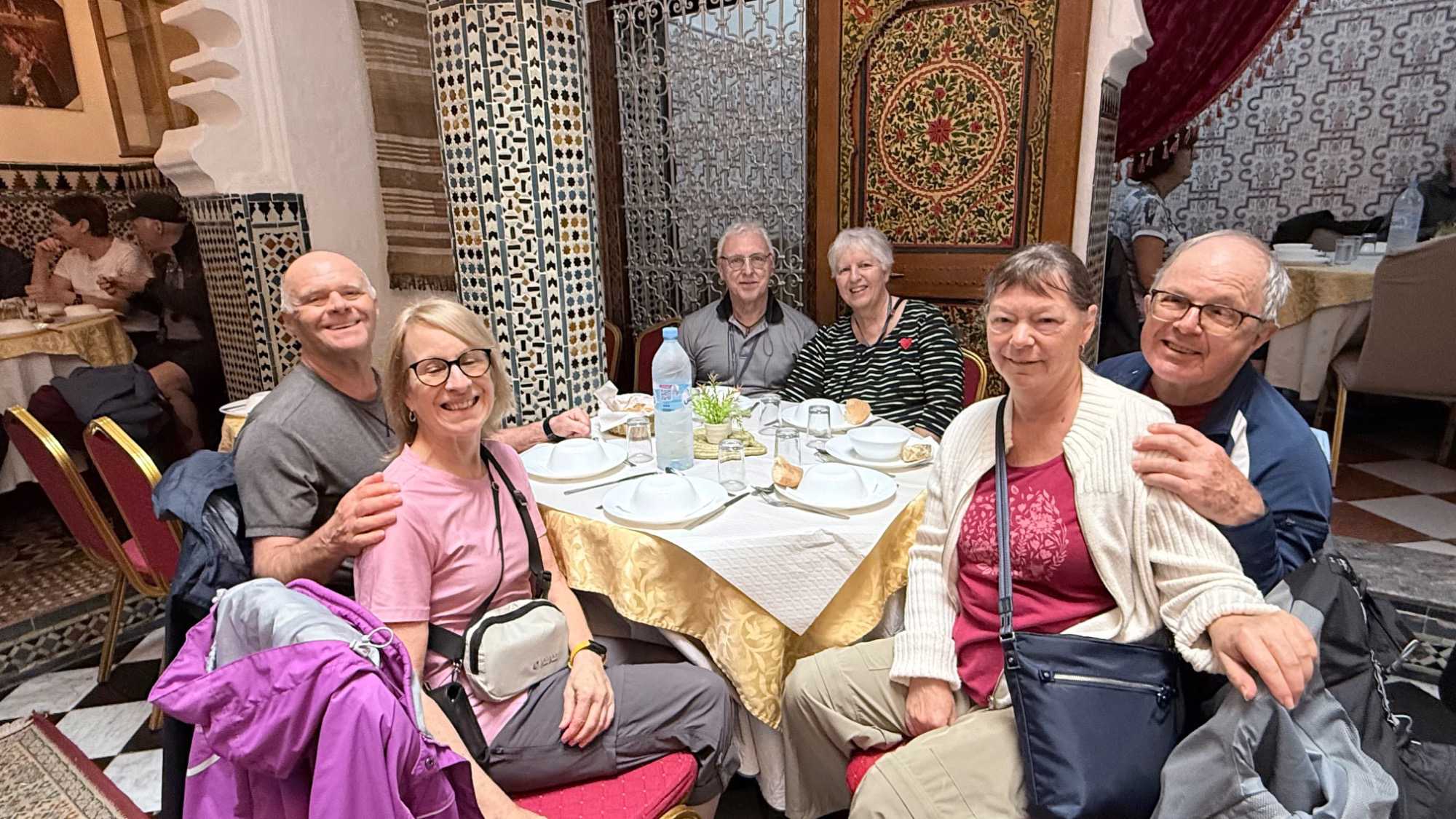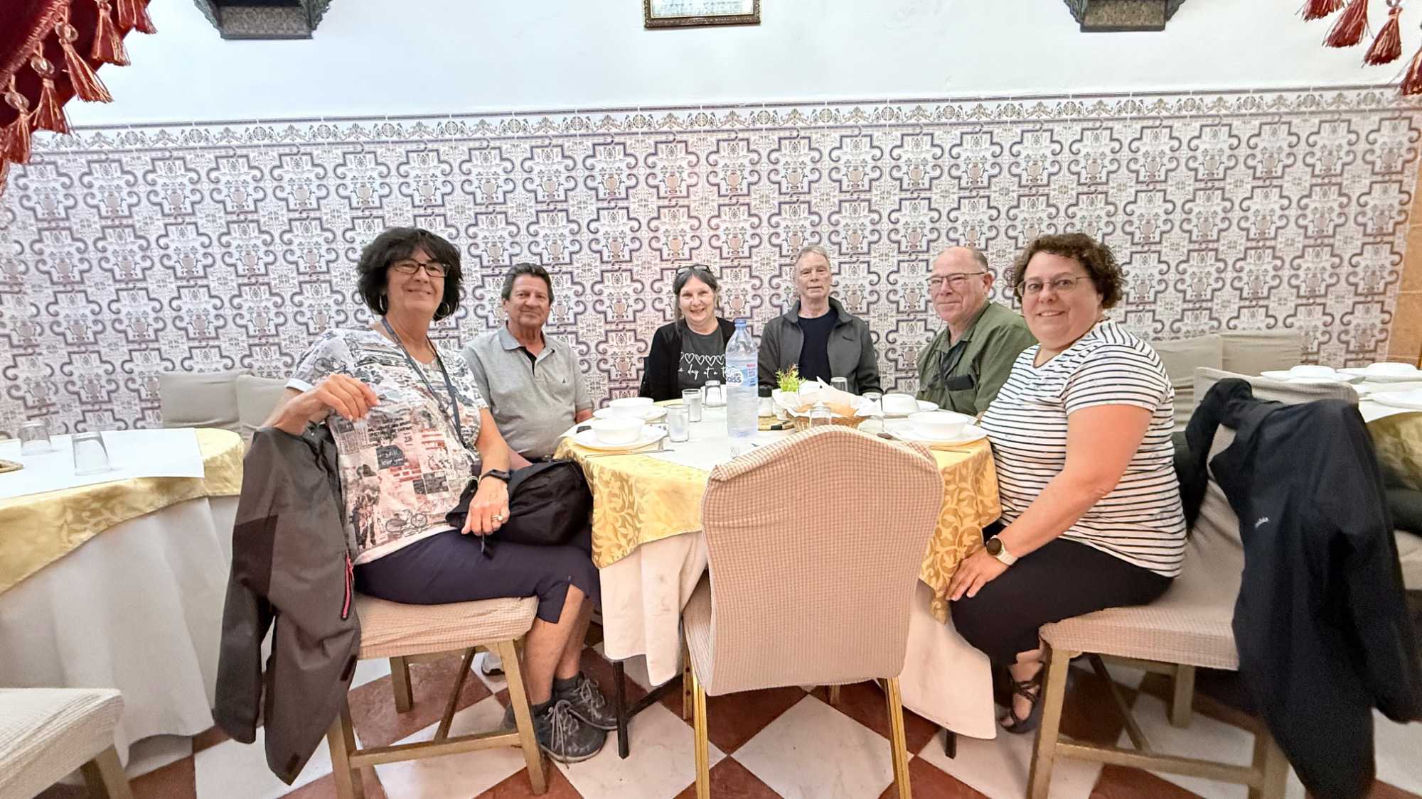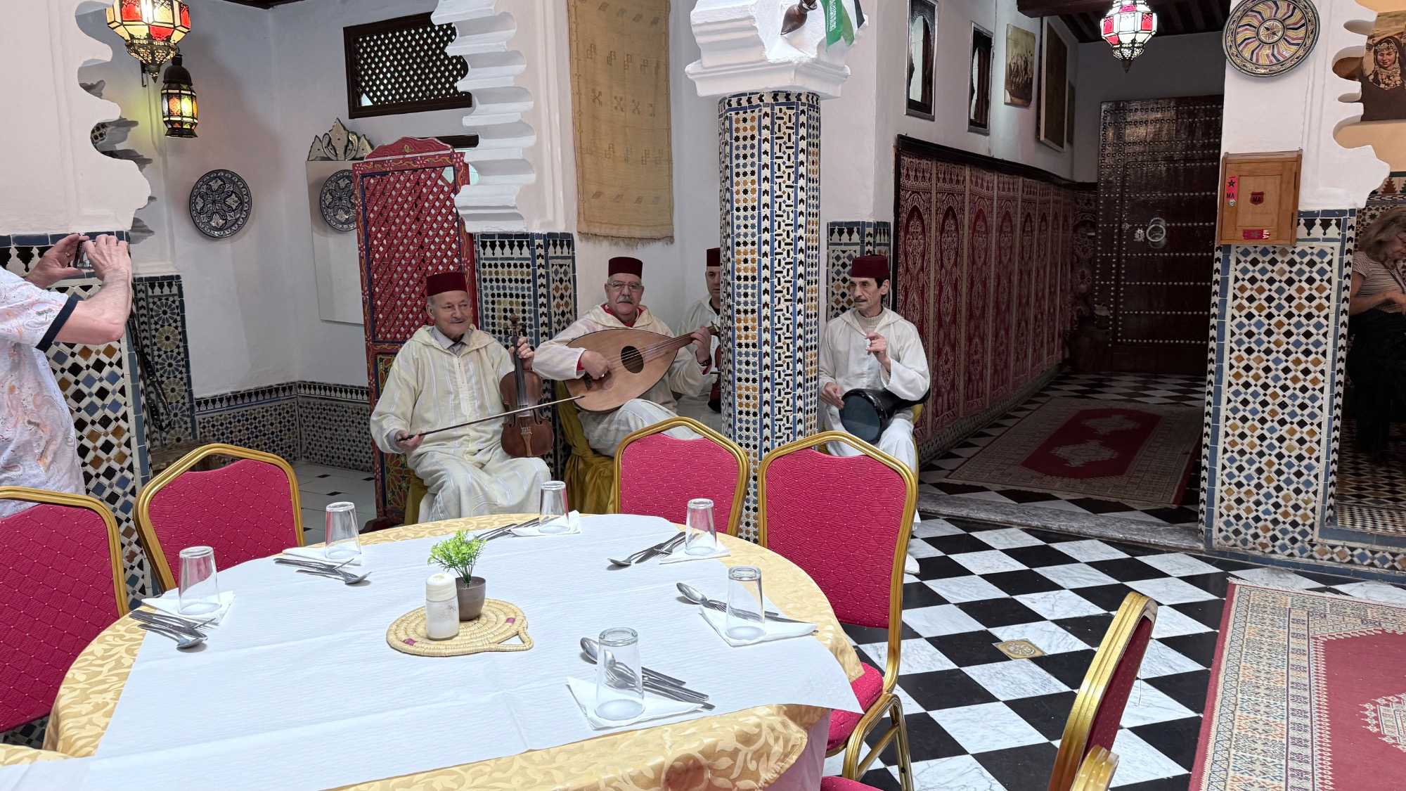 Un des moments les plus marquants a été notre repas dans un restaurant typique, installé dans ce qui ressemblait à un véritable palais. Dès l’entrée, on est émerveillés par la beauté du lieu : décor raffiné, ambiance chaleureuse… Puis arrive le repas : un délicieux tajine de poulet aux légumes, parfumé et généreux, qui a conquis tout le monde. Et pour rendre ce moment encore plus magique, de la musique andalouse accompagnait le diner Les sons, les saveurs, le décor… tout était réuni pour créer un instant suspendu, comme une parenthèse enchantée au cœur du voyage.