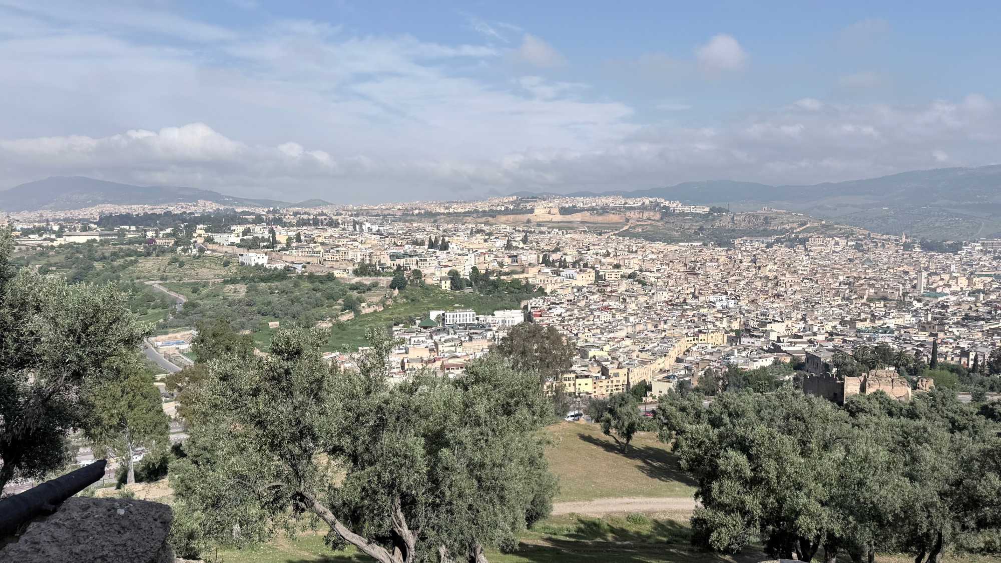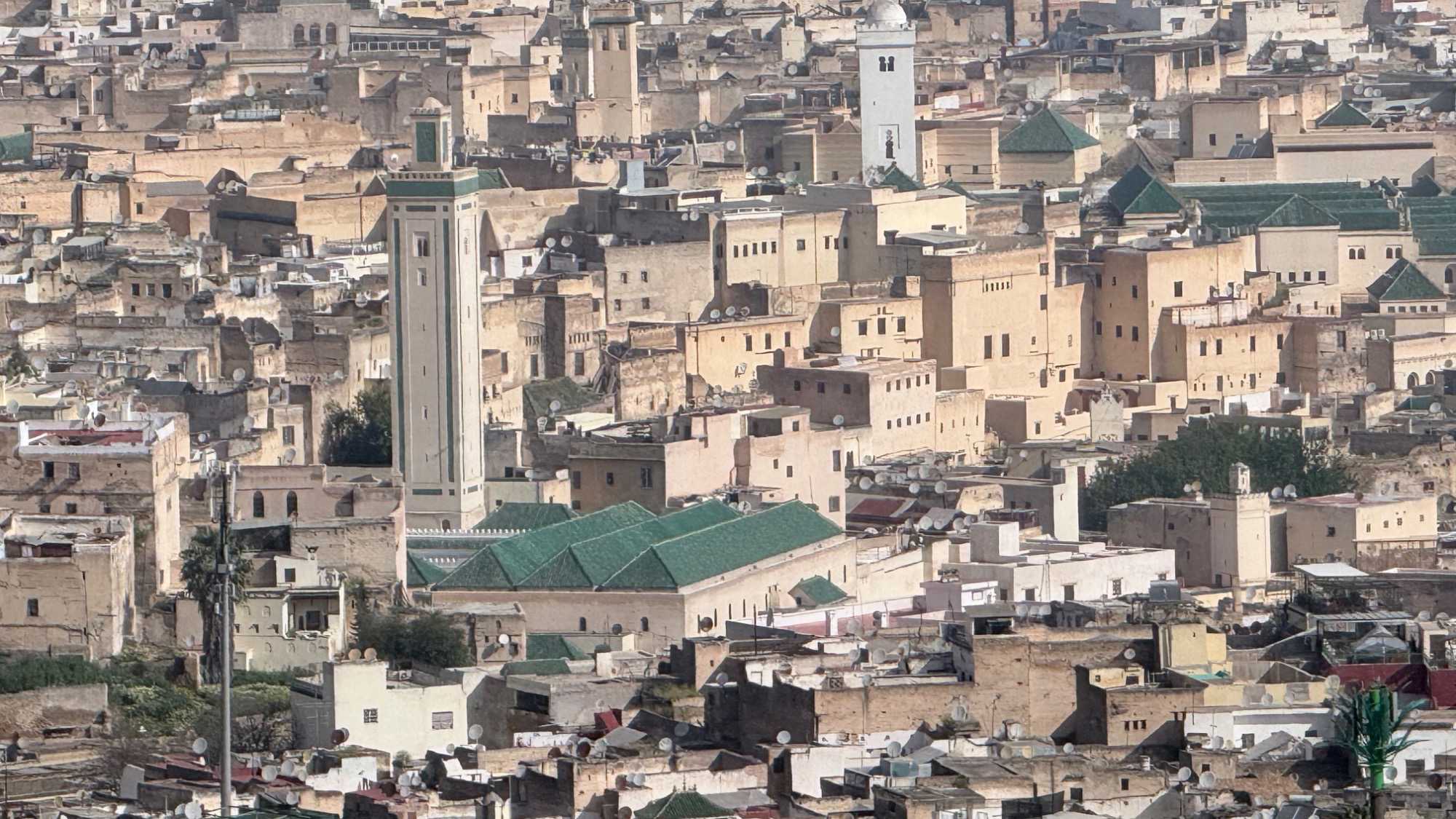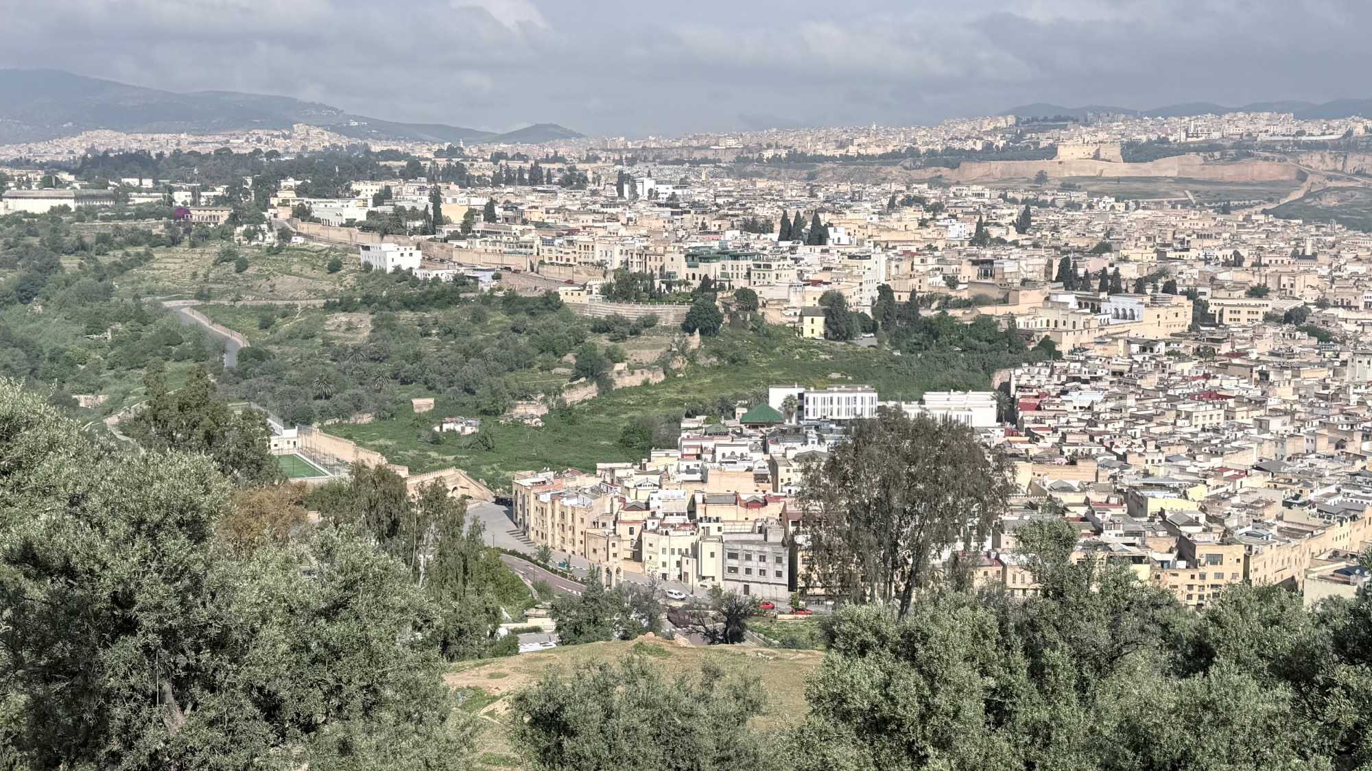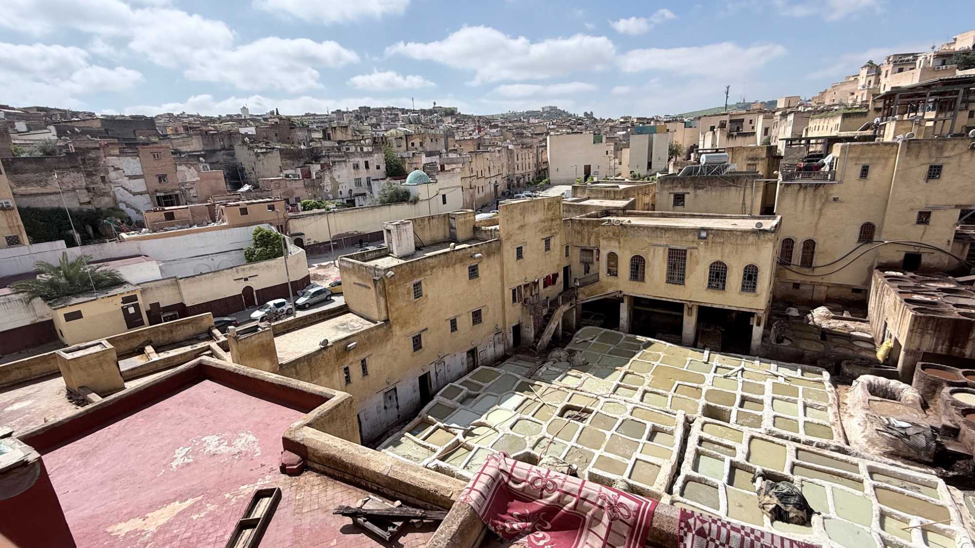 Nous avons commencé notre visite par une vue panoramique de la ville. Devant nous, la médina se déployait comme une mer de toits et de ruelles entremêlées, un tableau vivant aux nuances d’ocre et de lumière.