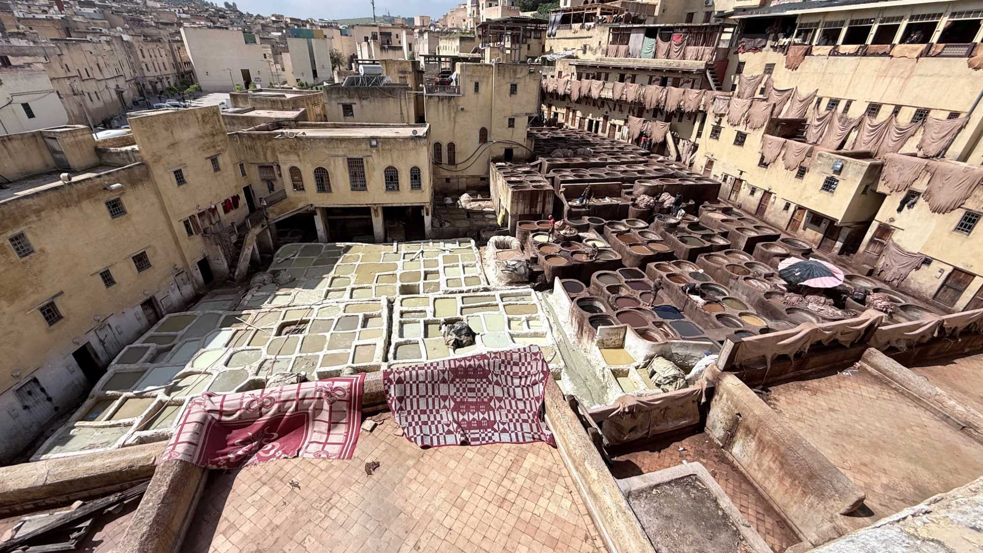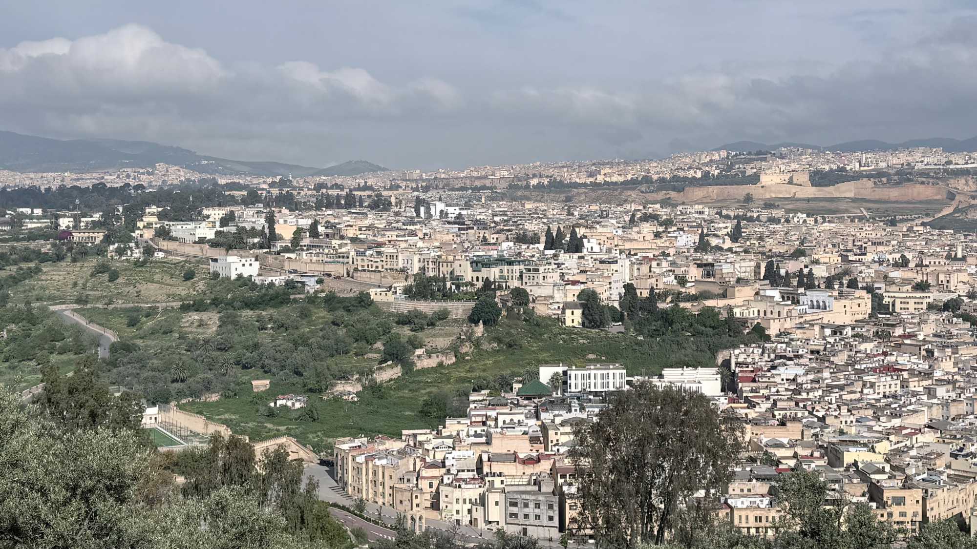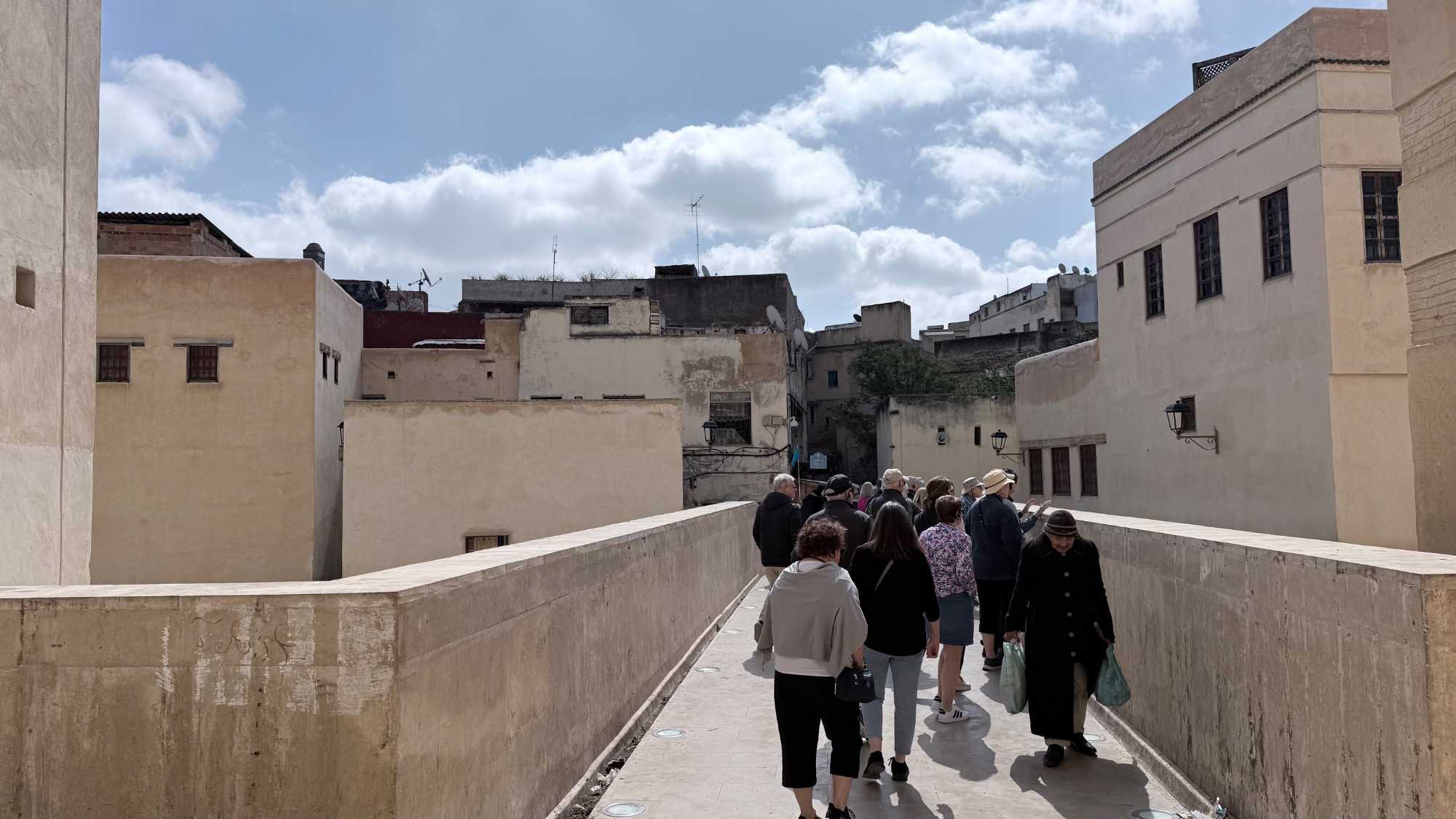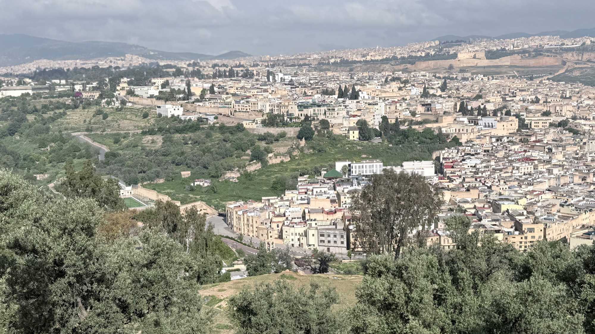 Nous avons commencé notre visite par une vue panoramique de la ville. Devant nous, la médina se déployait comme une mer de toits et de ruelles entremêlées, un tableau vivant aux nuances d’ocre et de lumière.