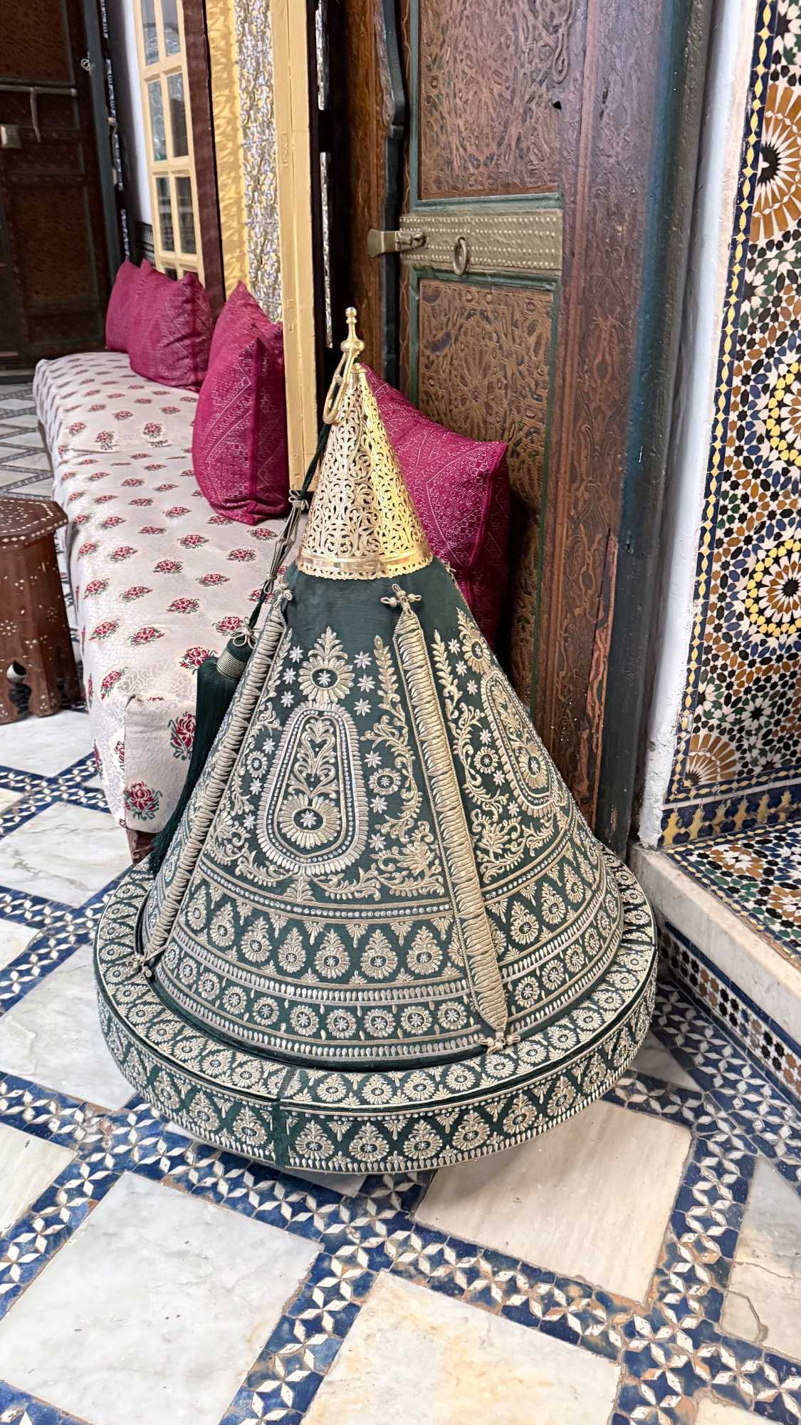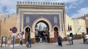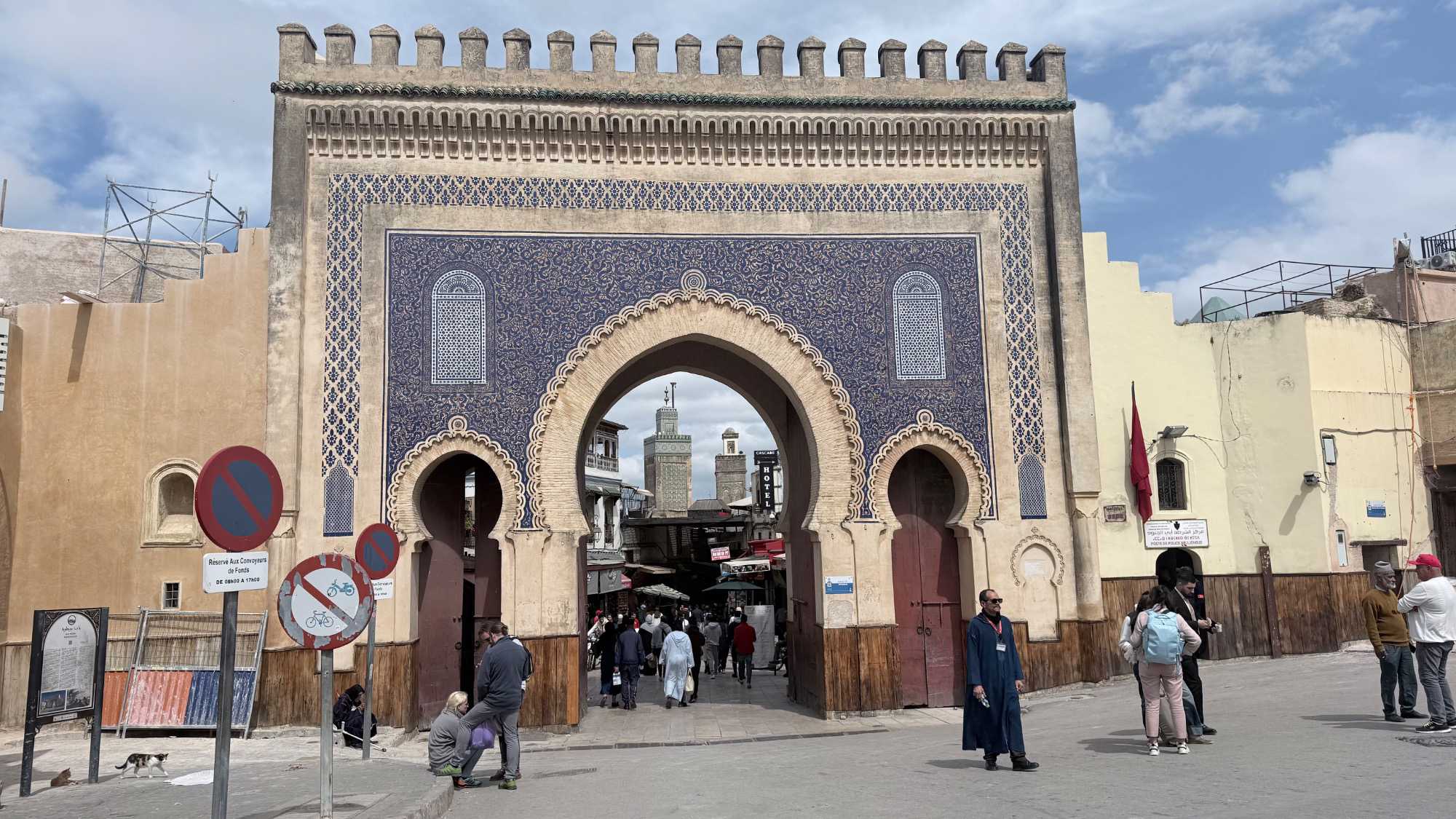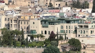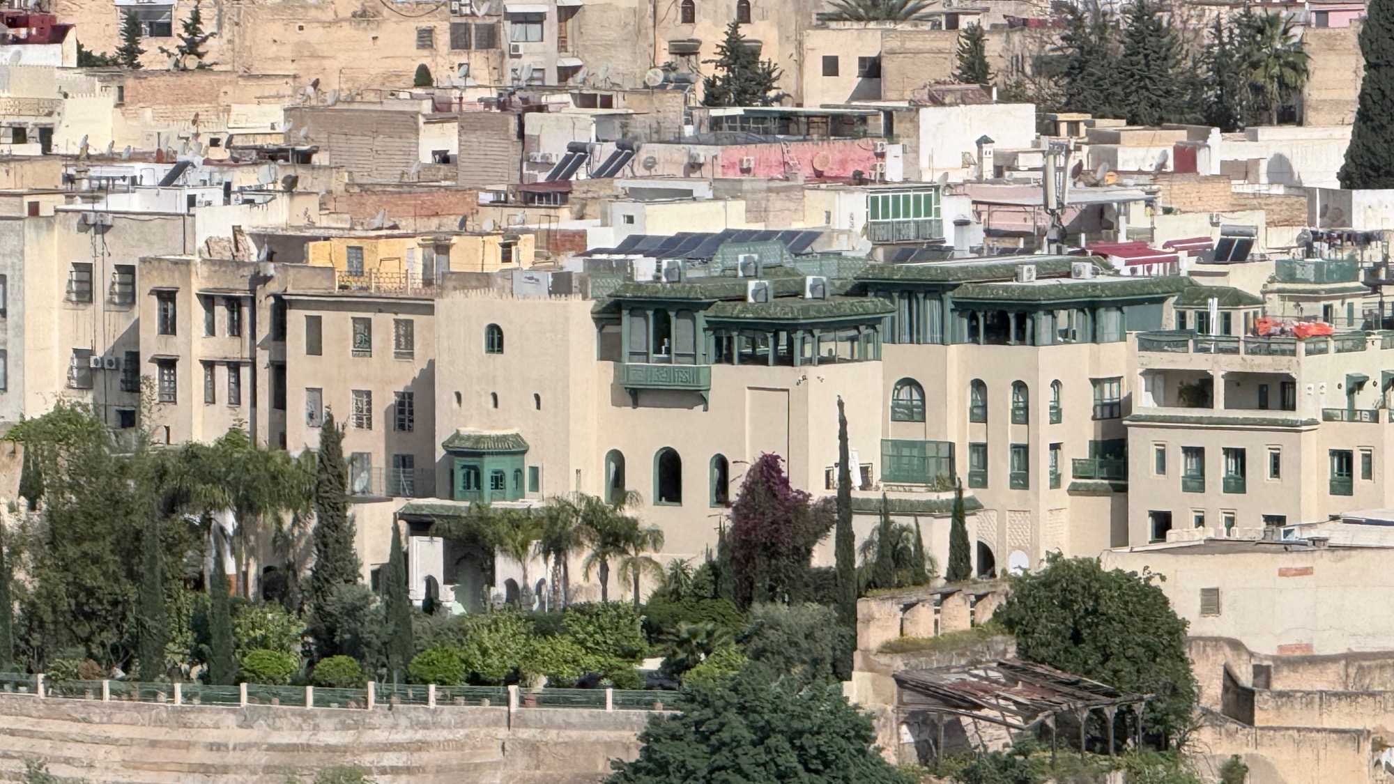 Notre route nous a ensuite conduits devant le Palais Royal de Fès, dont les portes dorées, finement ouvragées, scintillaient comme un trésor sous la lumière.