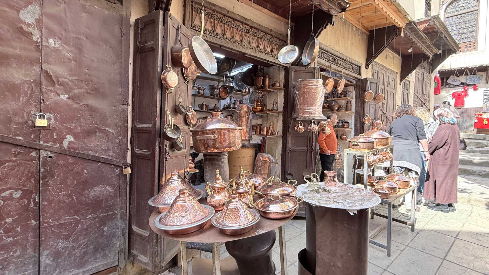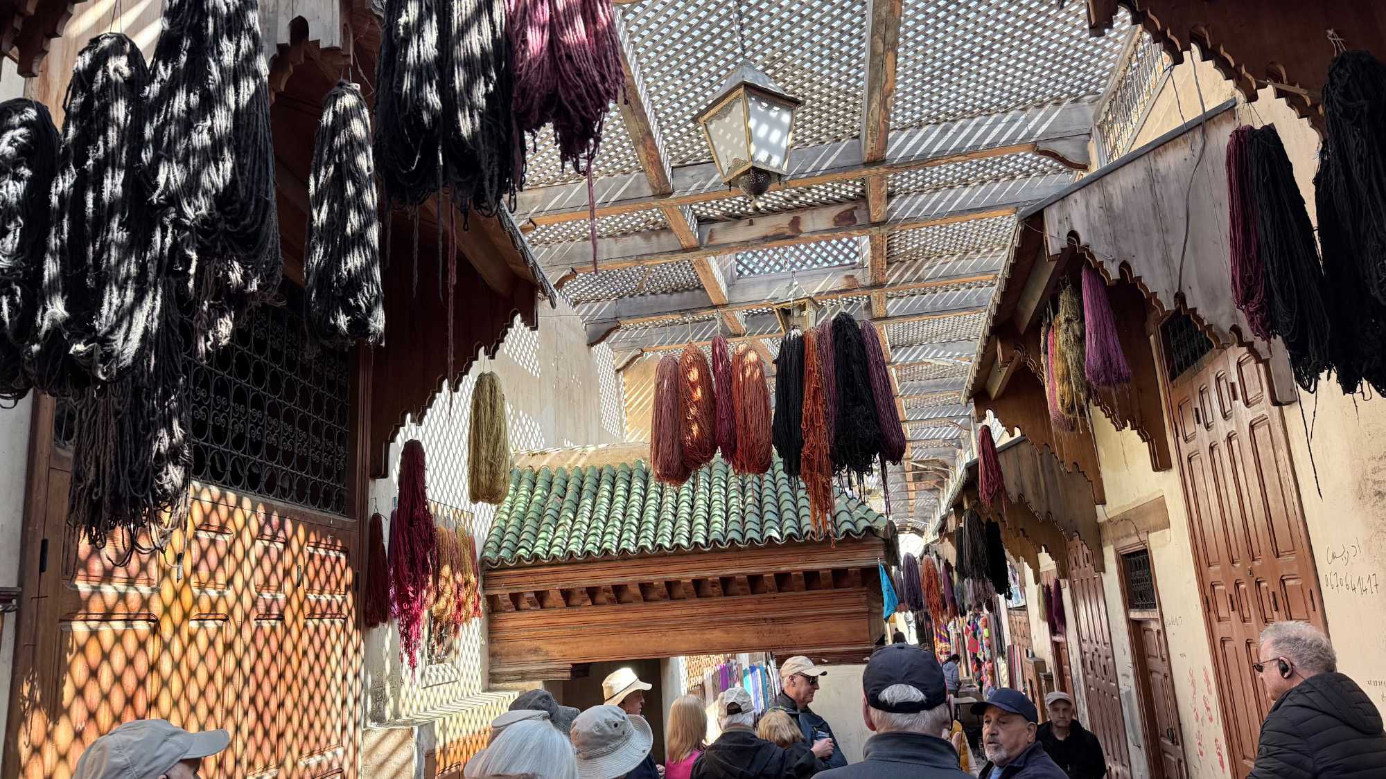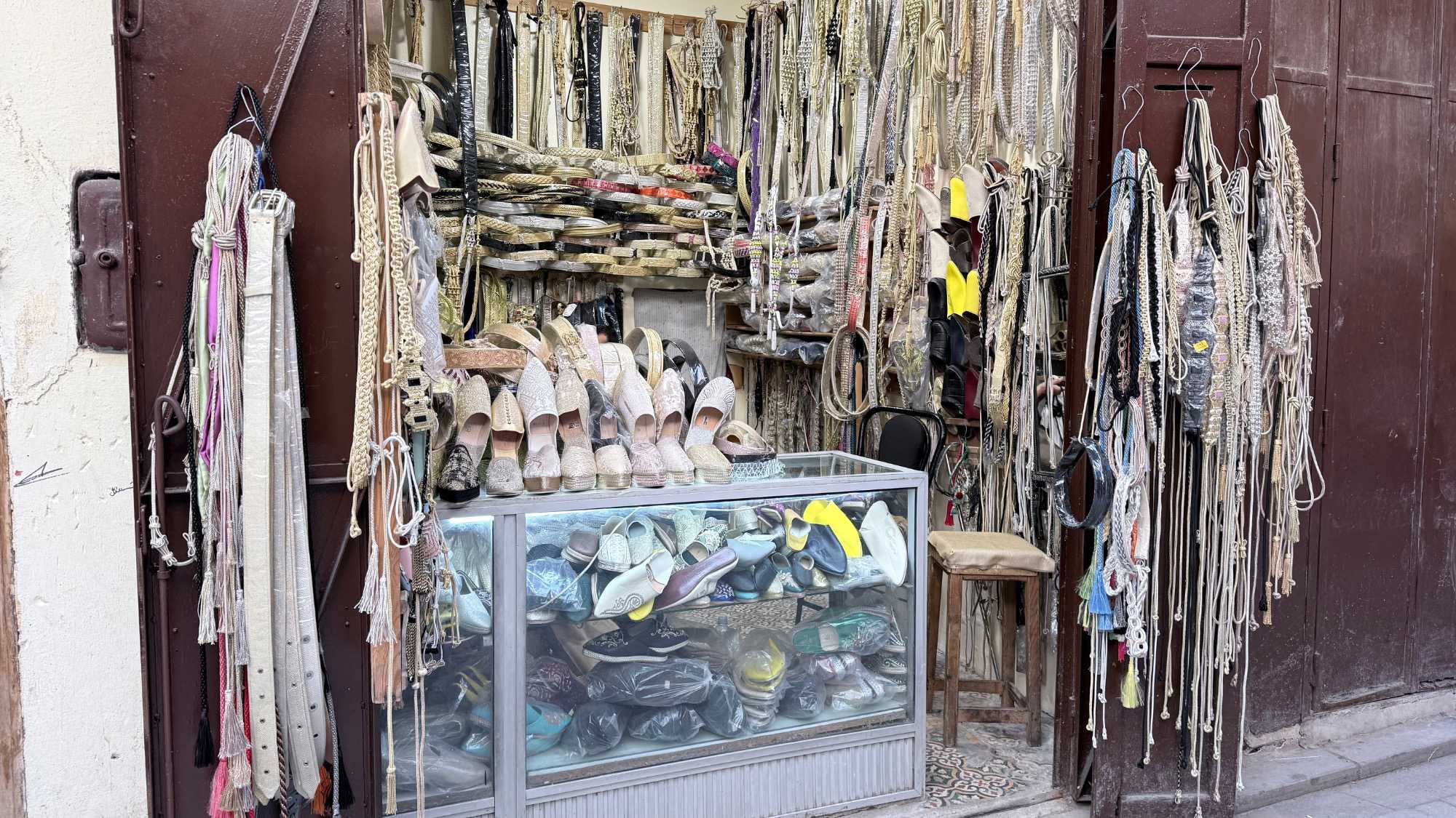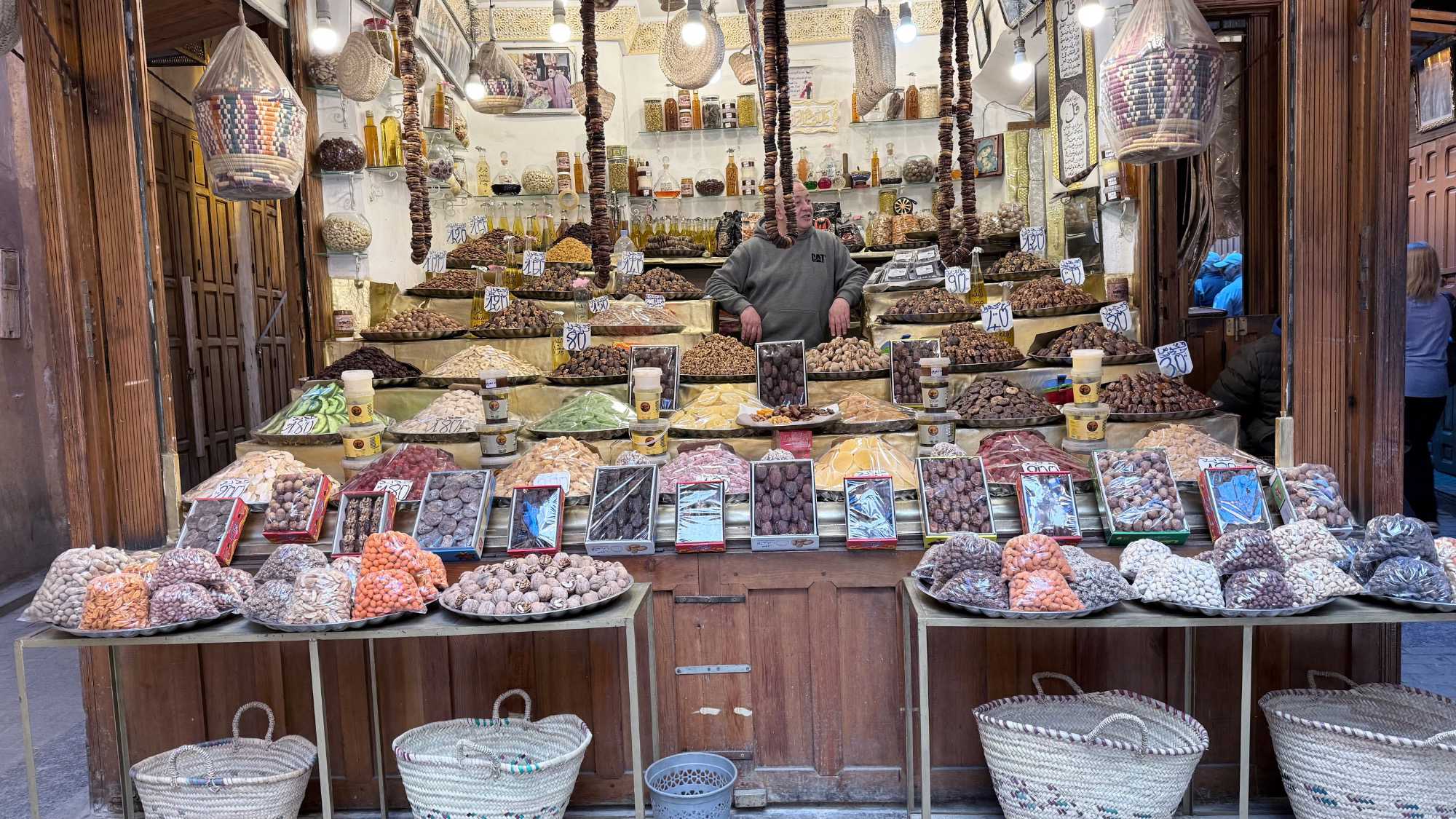 Puis, nous avons plongé au cœur de Fès el-Bali, où chaque ruelle est une invitation à se perdre… et à s’émerveiller. En nous promenant dans l’allée animée, nous avons découvert, ici et là, des kiosques de viande, des chandelles, et mille petites merveilles du quotidien. Tout semblait s’entremêler dans une joyeuse harmonie : les couleurs, les odeurs, les sourires… comme une danse vivante entre chaque étal, remplie de chaleur humaine et de bonheur partagé.