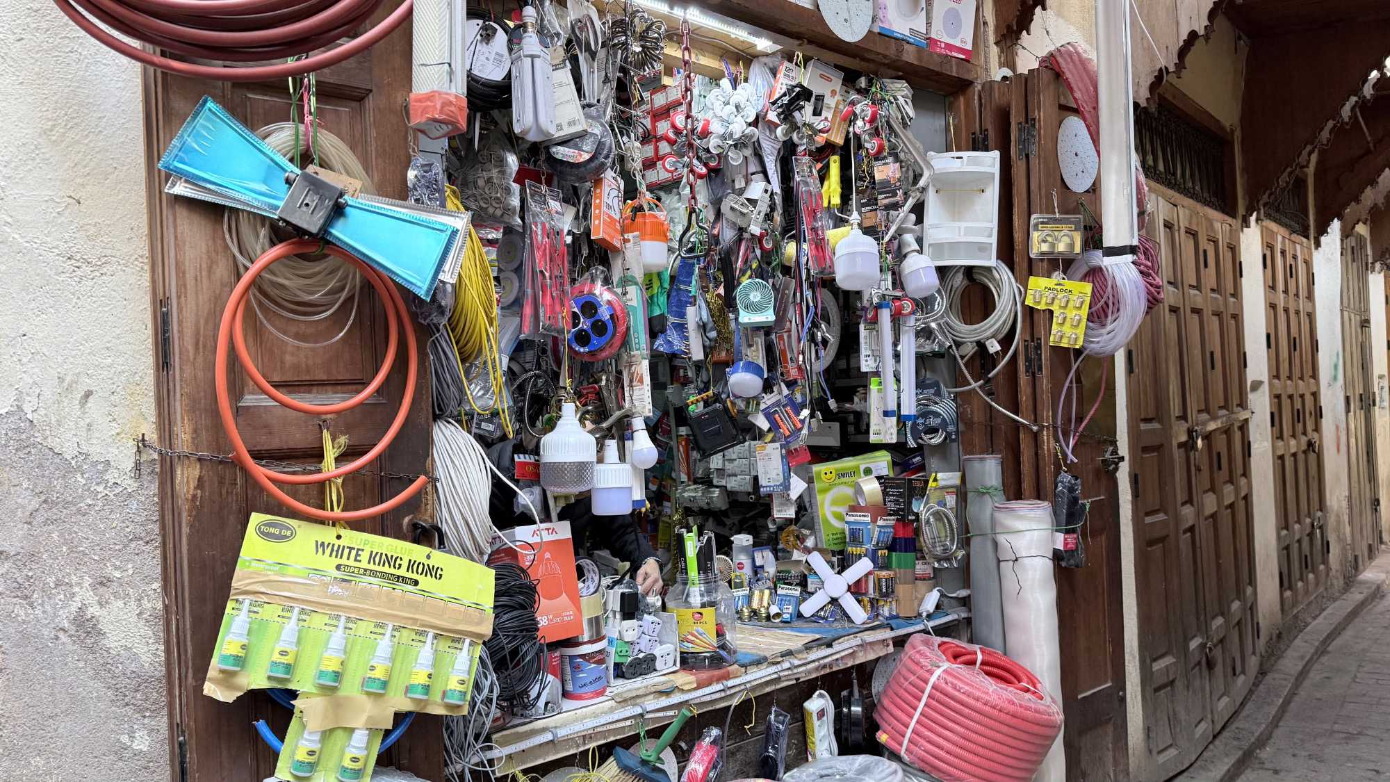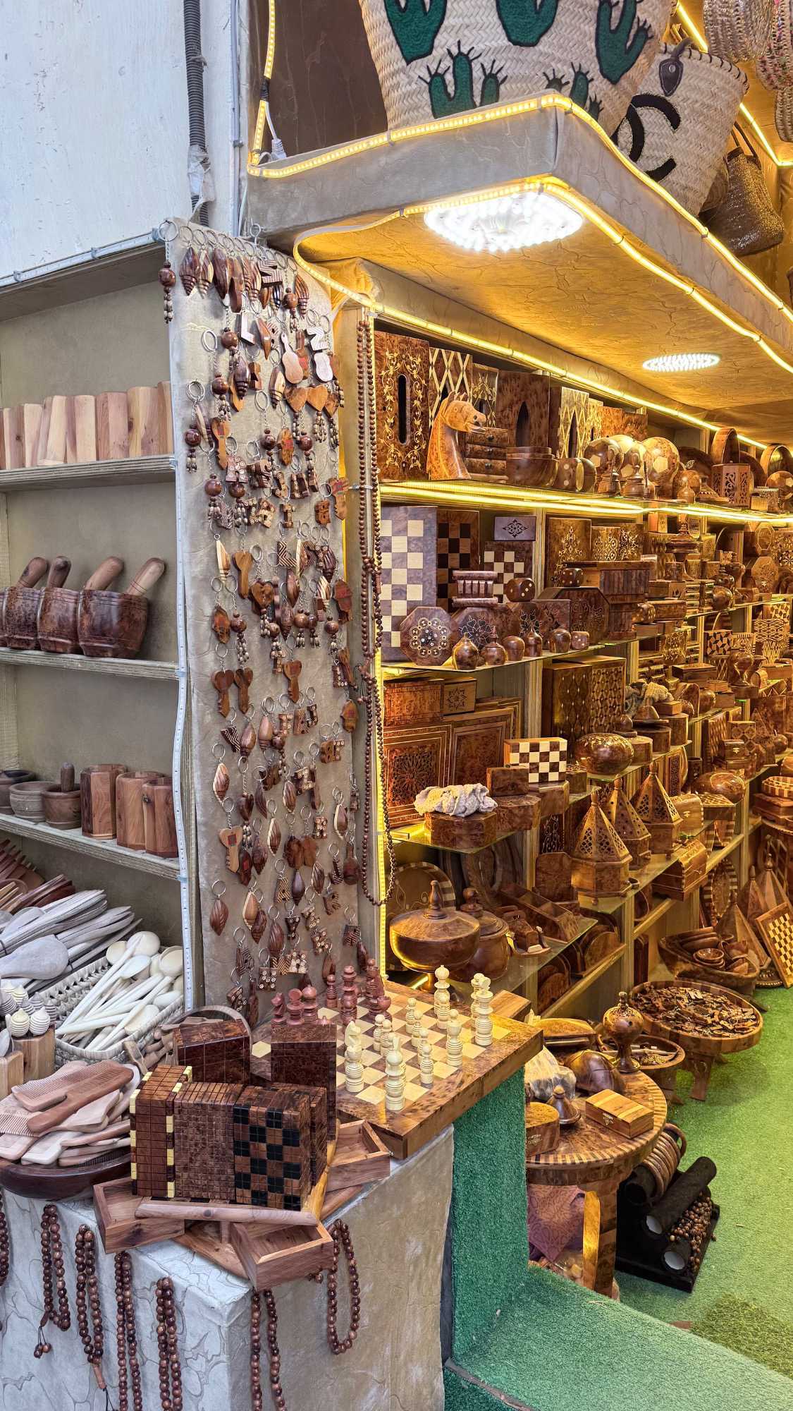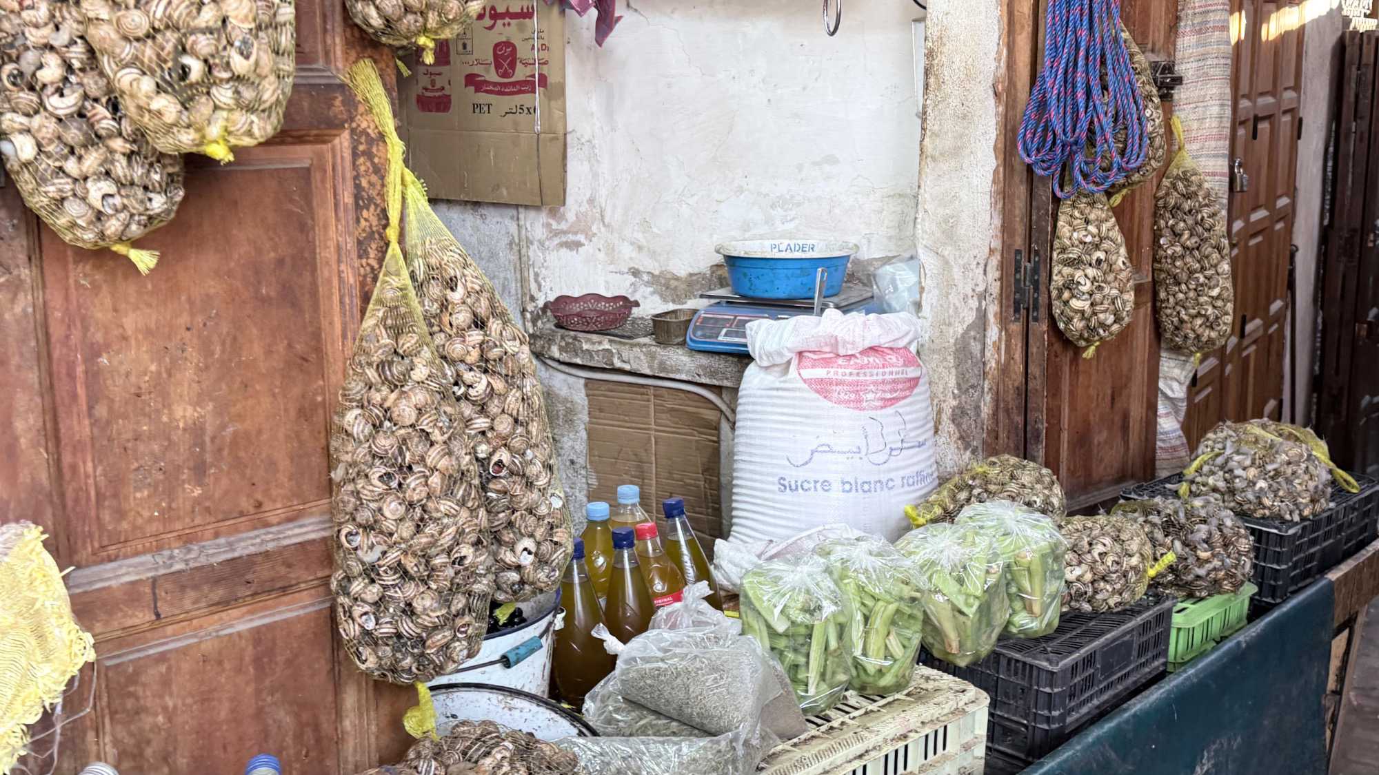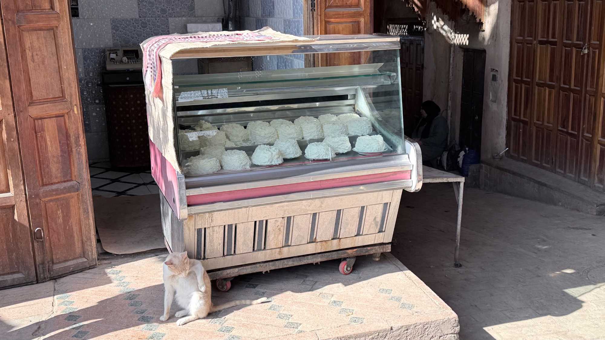 Puis, nous avons plongé au cœur de Fès el-Bali, où chaque ruelle est une invitation à se perdre… et à s’émerveiller. En nous promenant dans l’allée animée, nous avons découvert, ici et là, des kiosques de viande, des chandelles, et mille petites merveilles du quotidien. Tout semblait s’entremêler dans une joyeuse harmonie : les couleurs, les odeurs, les sourires… comme une danse vivante entre chaque étal, remplie de chaleur humaine et de bonheur partagé.
