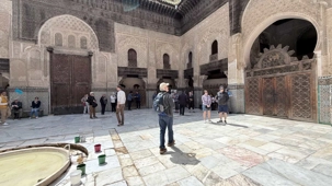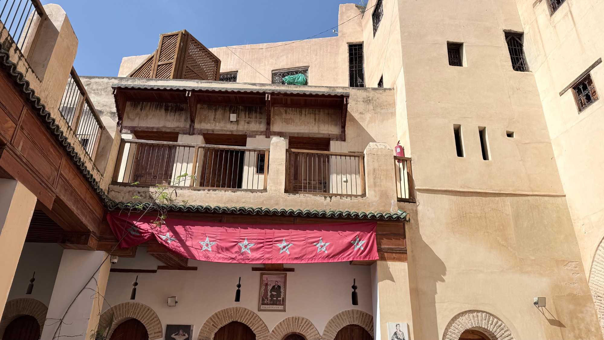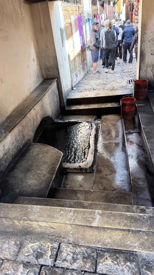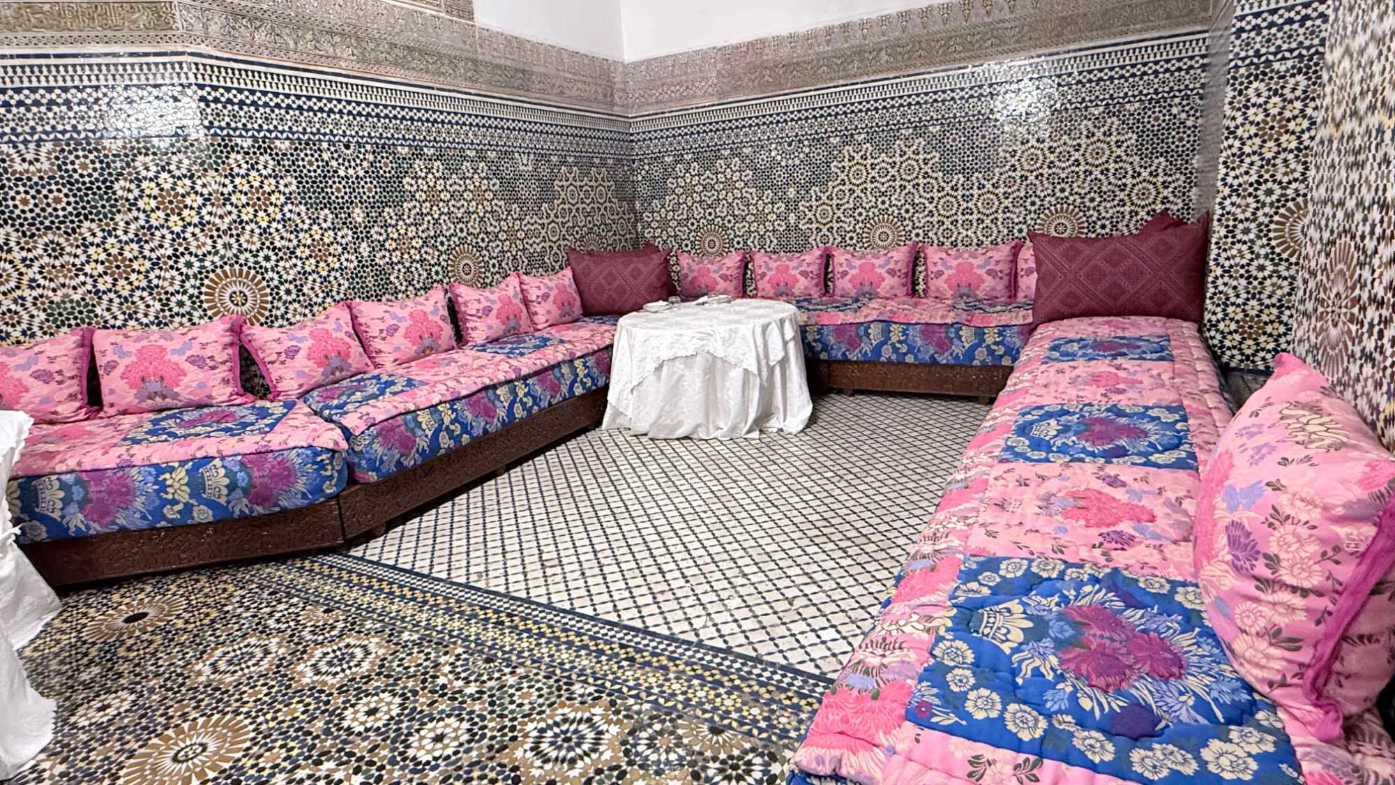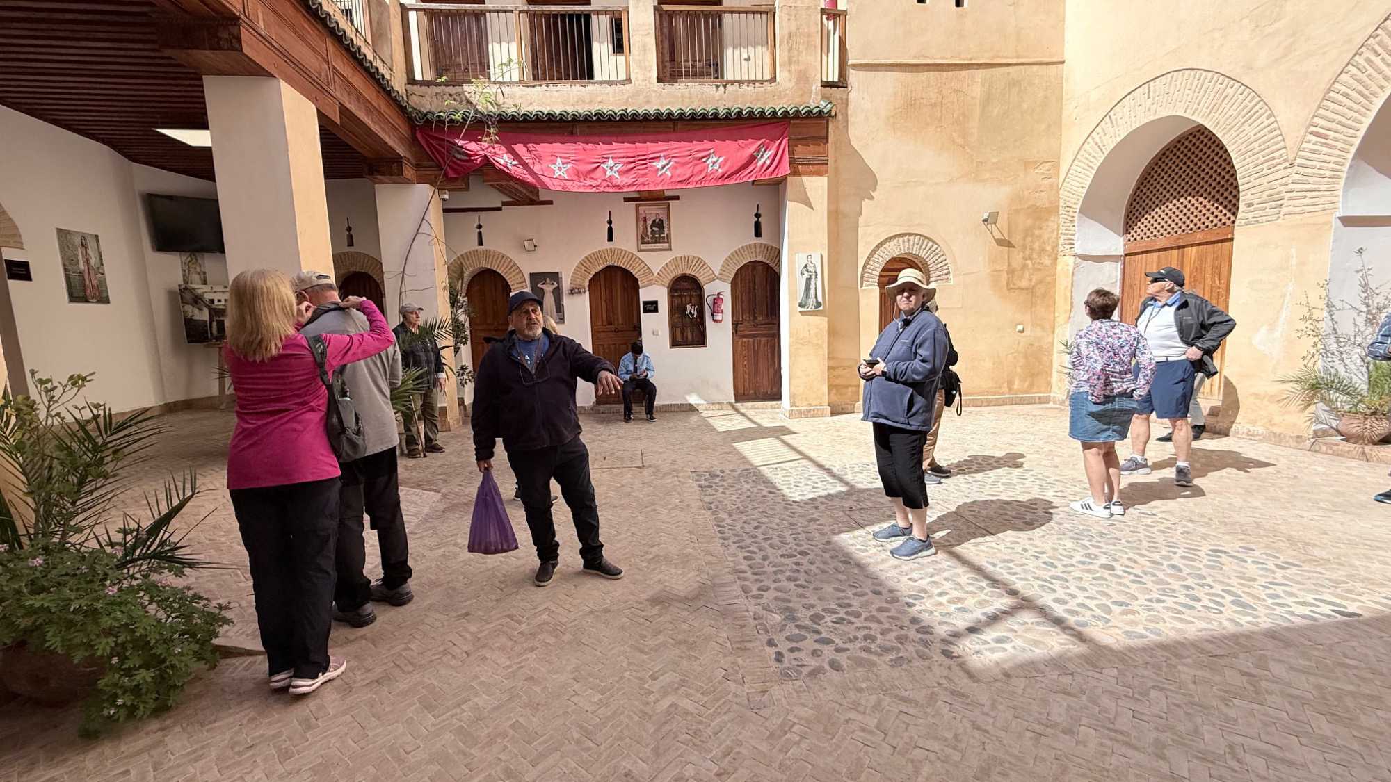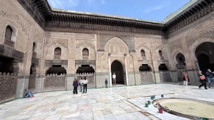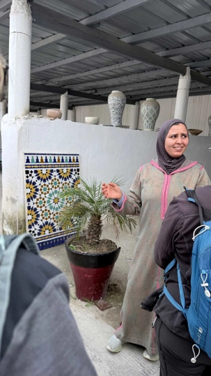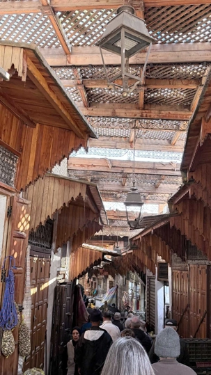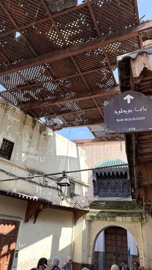 Après ce délicieux repas, nous sommes allés visiter une école coranique, la Médersa Bou Inania. Construite au XIVᵉ siècle sous la dynastie mérinide, cette école avait pour vocation d’enseigner le Coran, la théologie ainsi que les sciences religieuses. Les étudiants y vivaient et étudiaient dans un cadre à la fois sobre et magnifiquement décoré. Les murs sculptés, les zelliges colorés et le bois finement travaillé témoignent du raffinement de l’art islamique de l’époque. En parcourant ses couloirs, on imagine aisément la vie des étudiants d’autrefois, plongés dans l’étude et la méditation.