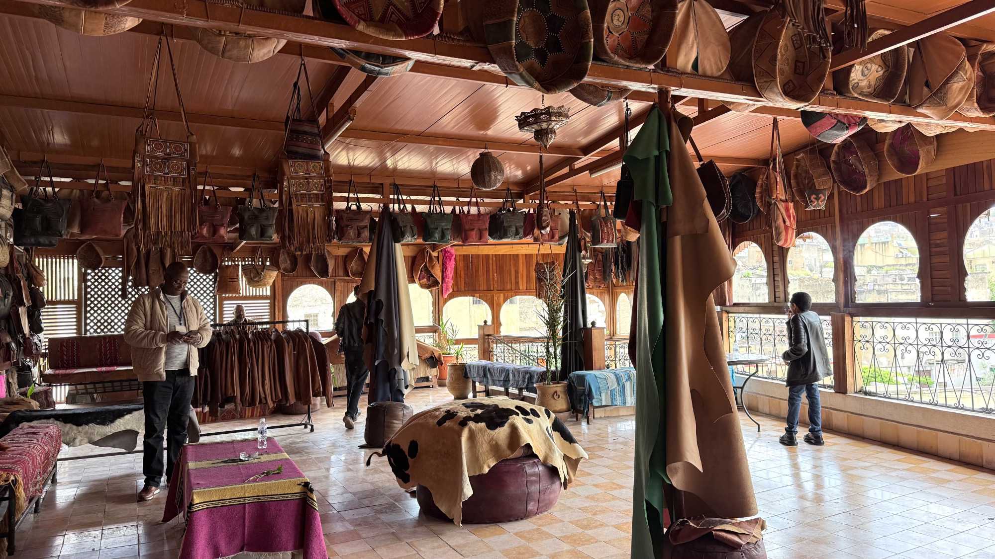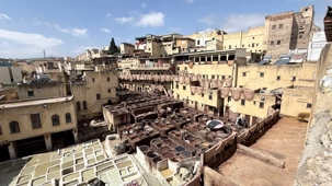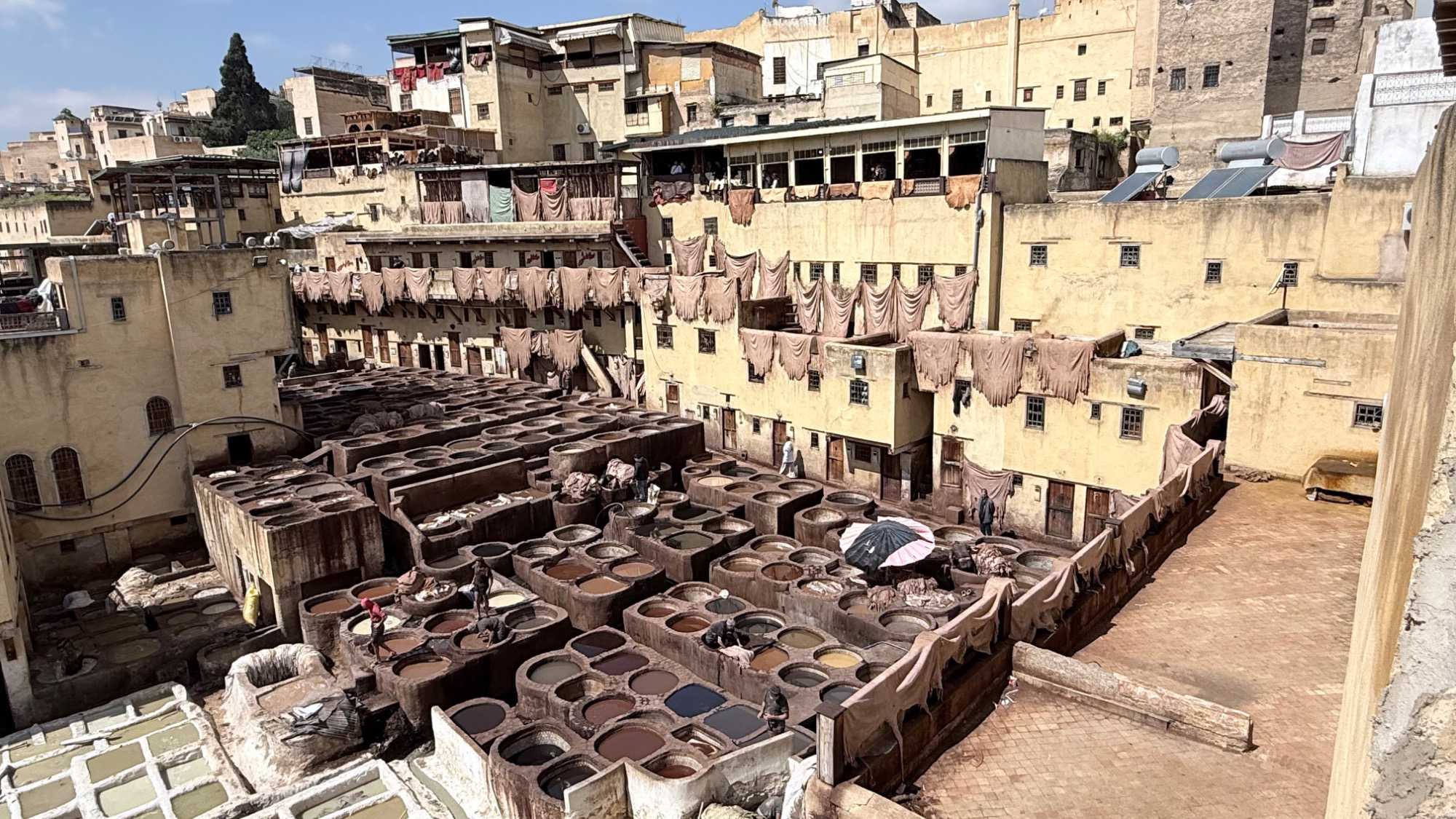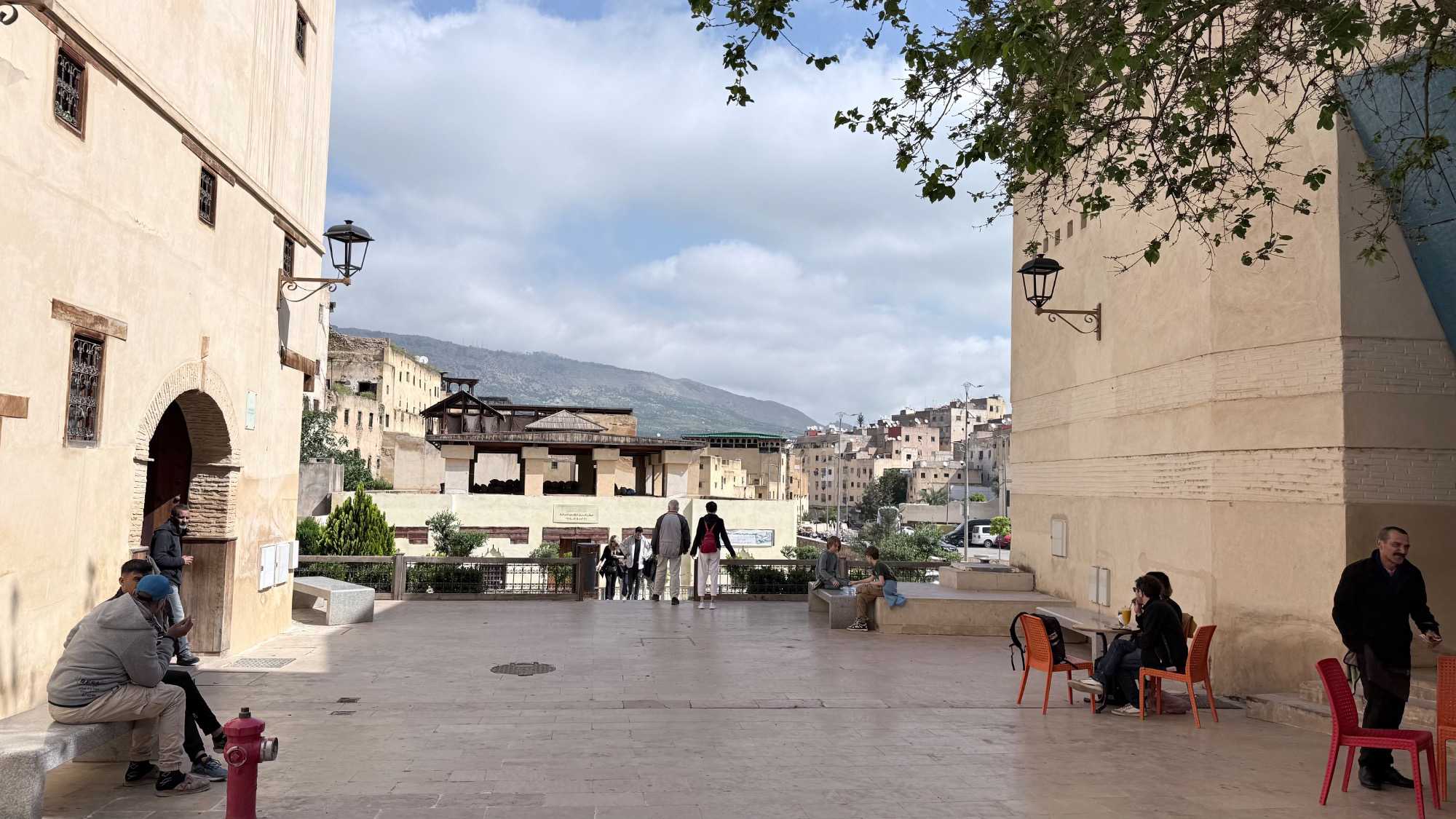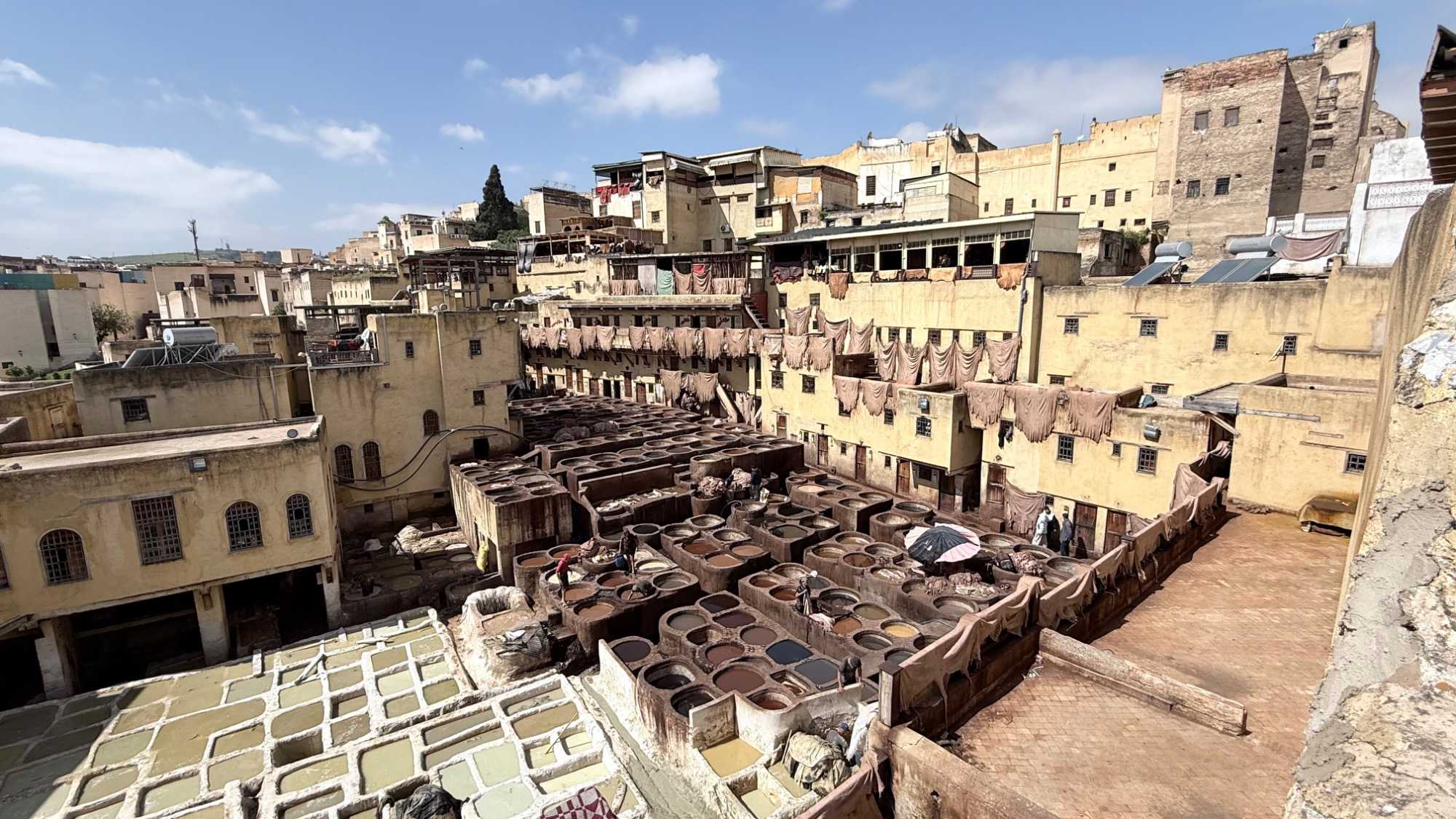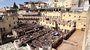 En poursuivant notre chemin, la Mosquée Al Quaraouiyine s’est dressée devant nous, majestueuse et intemporelle, comme une gardienne du savoir et de la foi. Un peu plus loin, les Tanneries Chouara nous ont offert un spectacle unique : un kaléidoscope de couleurs, où les gestes des artisans, répétés depuis des siècles, racontent une histoire de patience et de tradition.