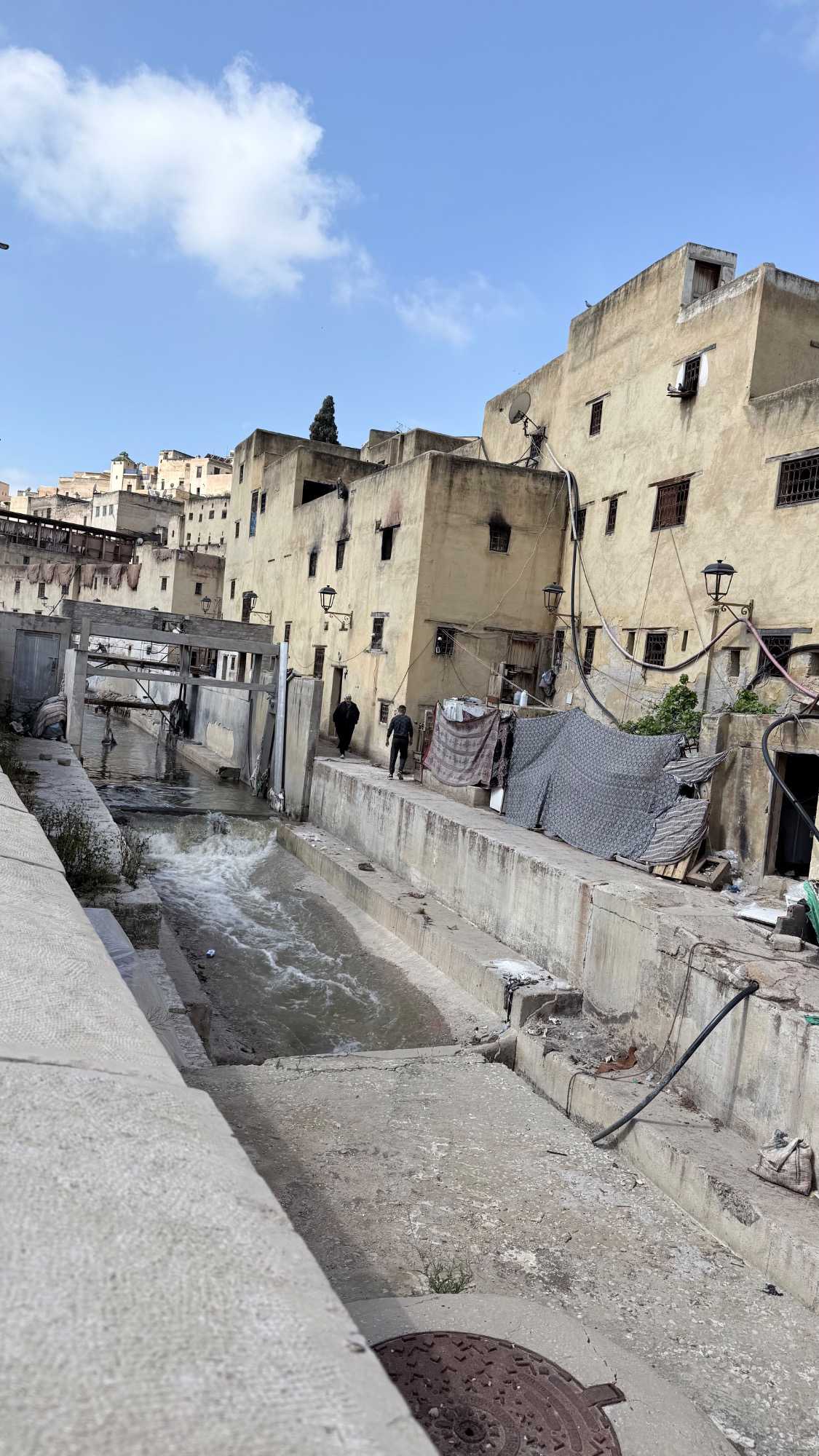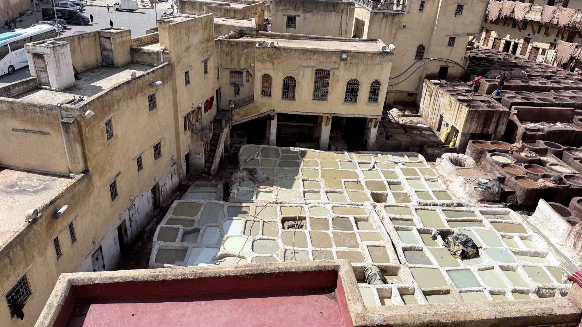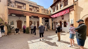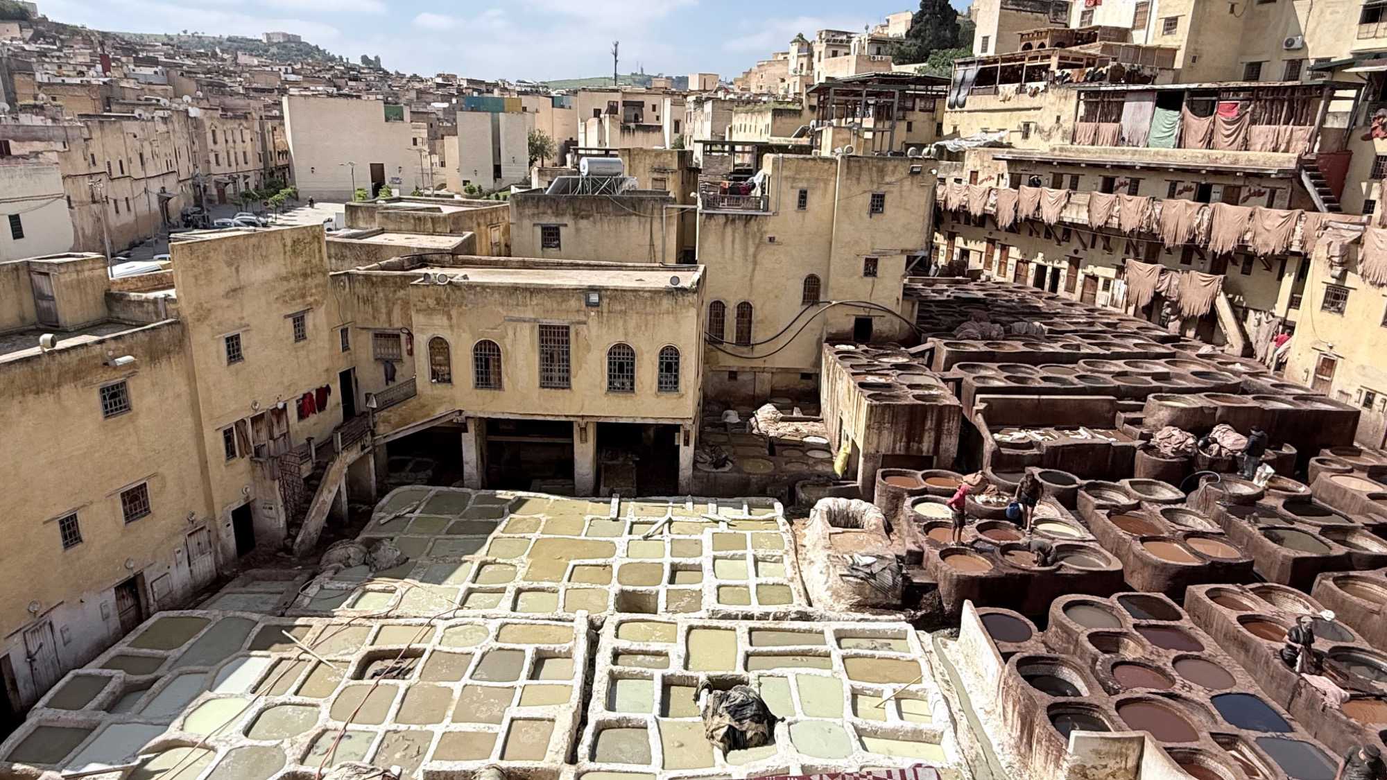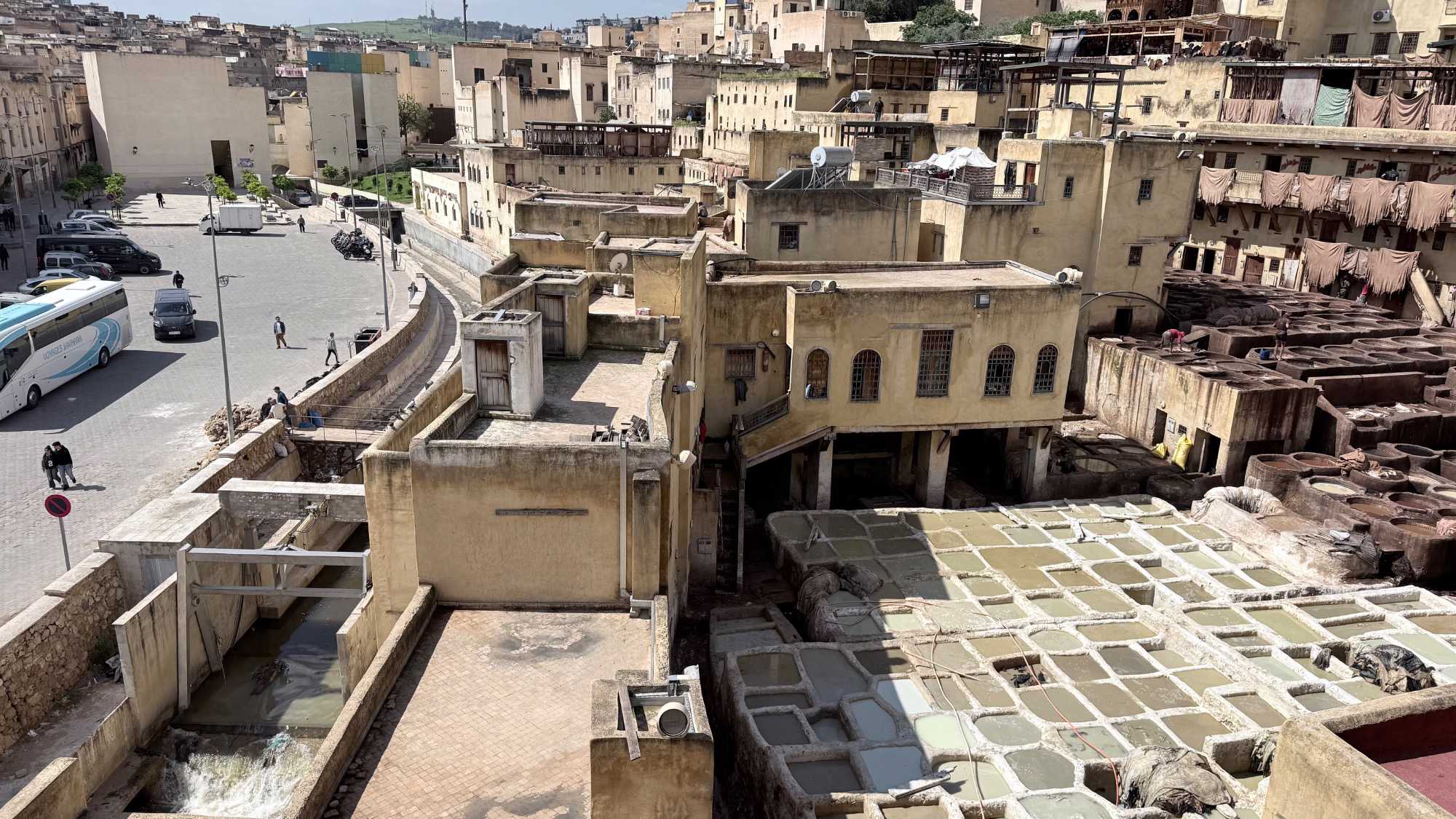 En poursuivant notre chemin, la Mosquée Al Quaraouiyine s’est dressée devant nous, majestueuse et intemporelle, comme une gardienne du savoir et de la foi. Un peu plus loin, les Tanneries Chouara nous ont offert un spectacle unique : un kaléidoscope de couleurs, où les gestes des artisans, répétés depuis des siècles, racontent une histoire de patience et de tradition.