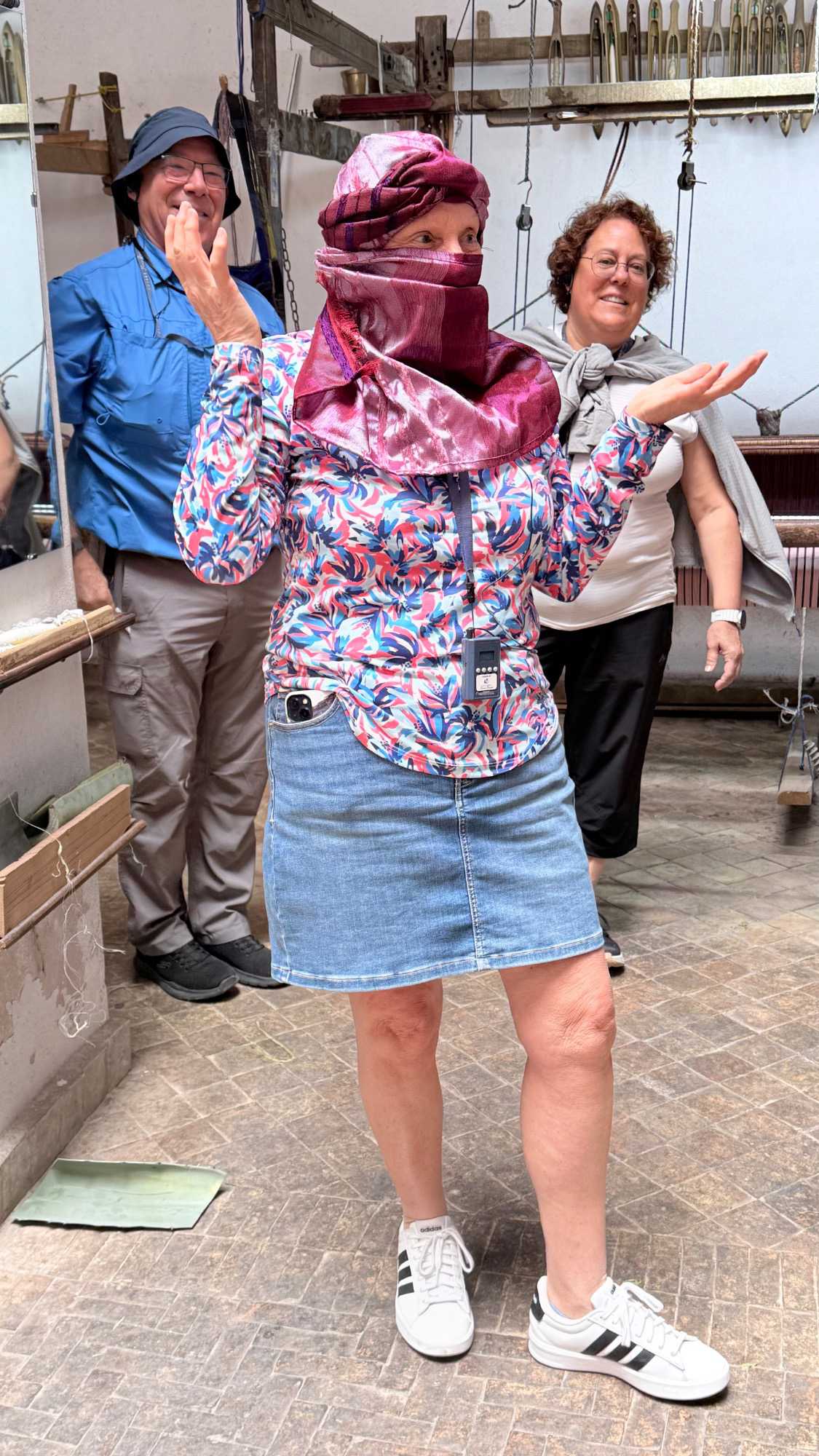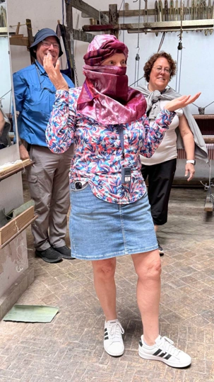 Après cette immersion, nous avons découvert un atelier de tissage, où fils et couleurs s’entrelacent pour donner naissance à de magnifiques couvertures, nappes et foulards. Difficile de résister… et certains d’entre nous ont laissé un peu de leur économie, séduits par tant de beauté.