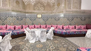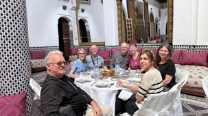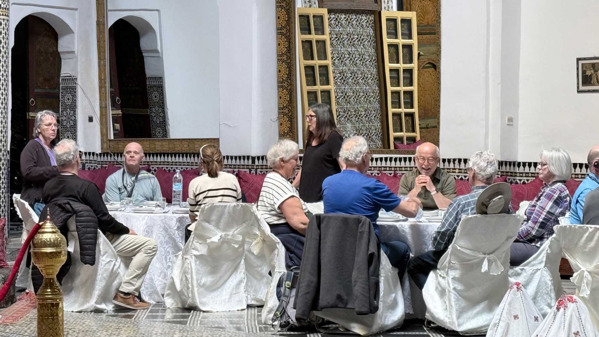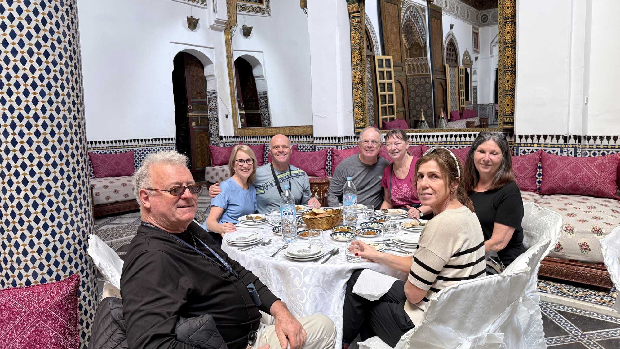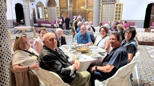 Le midi venu, nous avons été accueillis dans un ancien palais pour un repas traditionnel marocain. Un moment hors du temps, où les saveurs riches et parfumées ont éveillé nos sens. Wow… quel délice, et quelle splendeur autour de nous !
