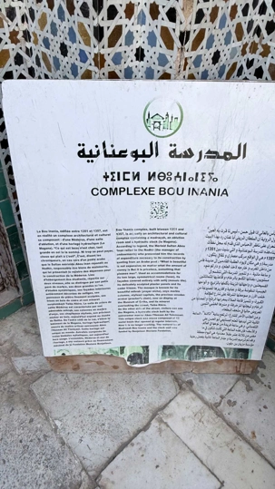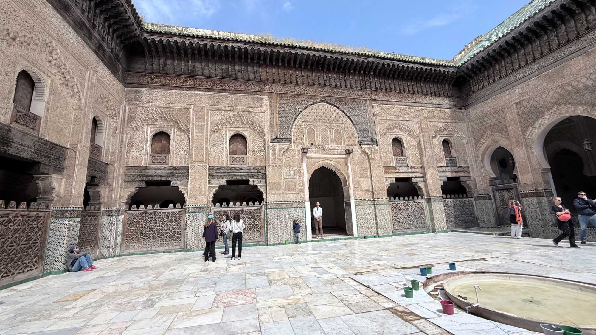 Nous avons fait halte à la Médersa Bou Inania, véritable joyau d’architecture, où le silence et la beauté semblent suspendre le temps.