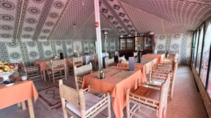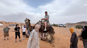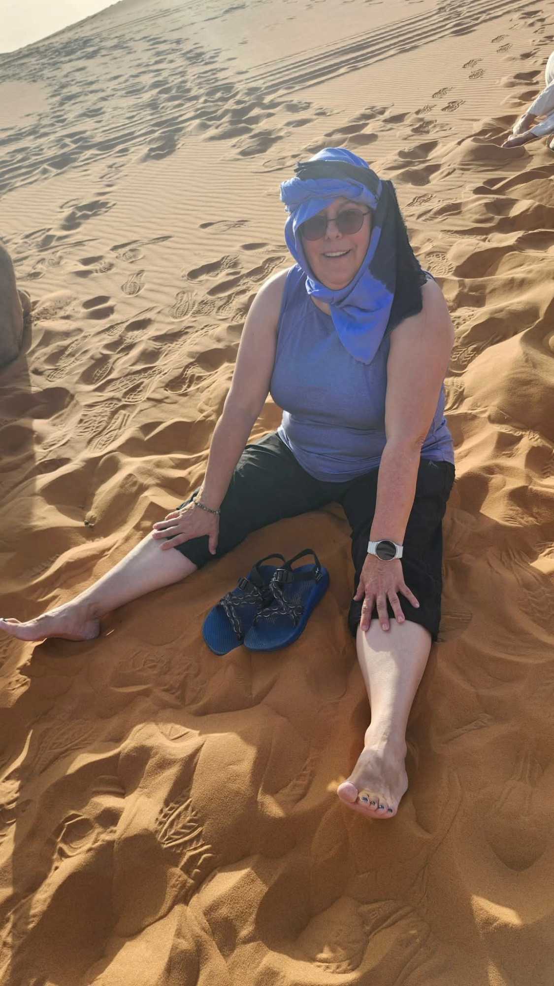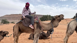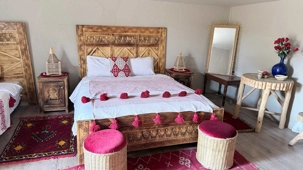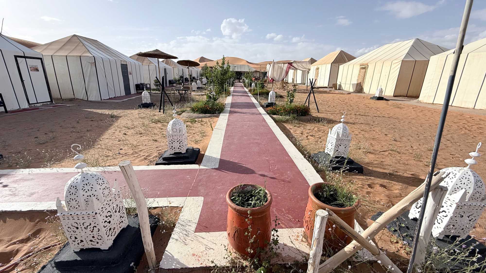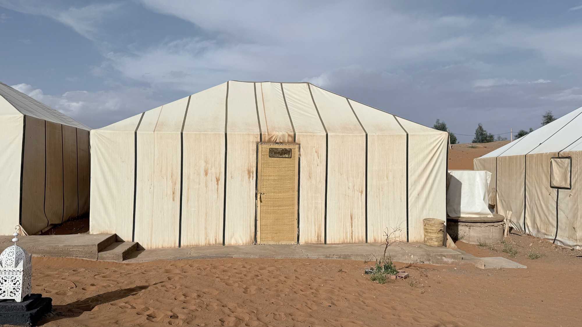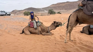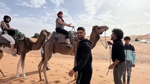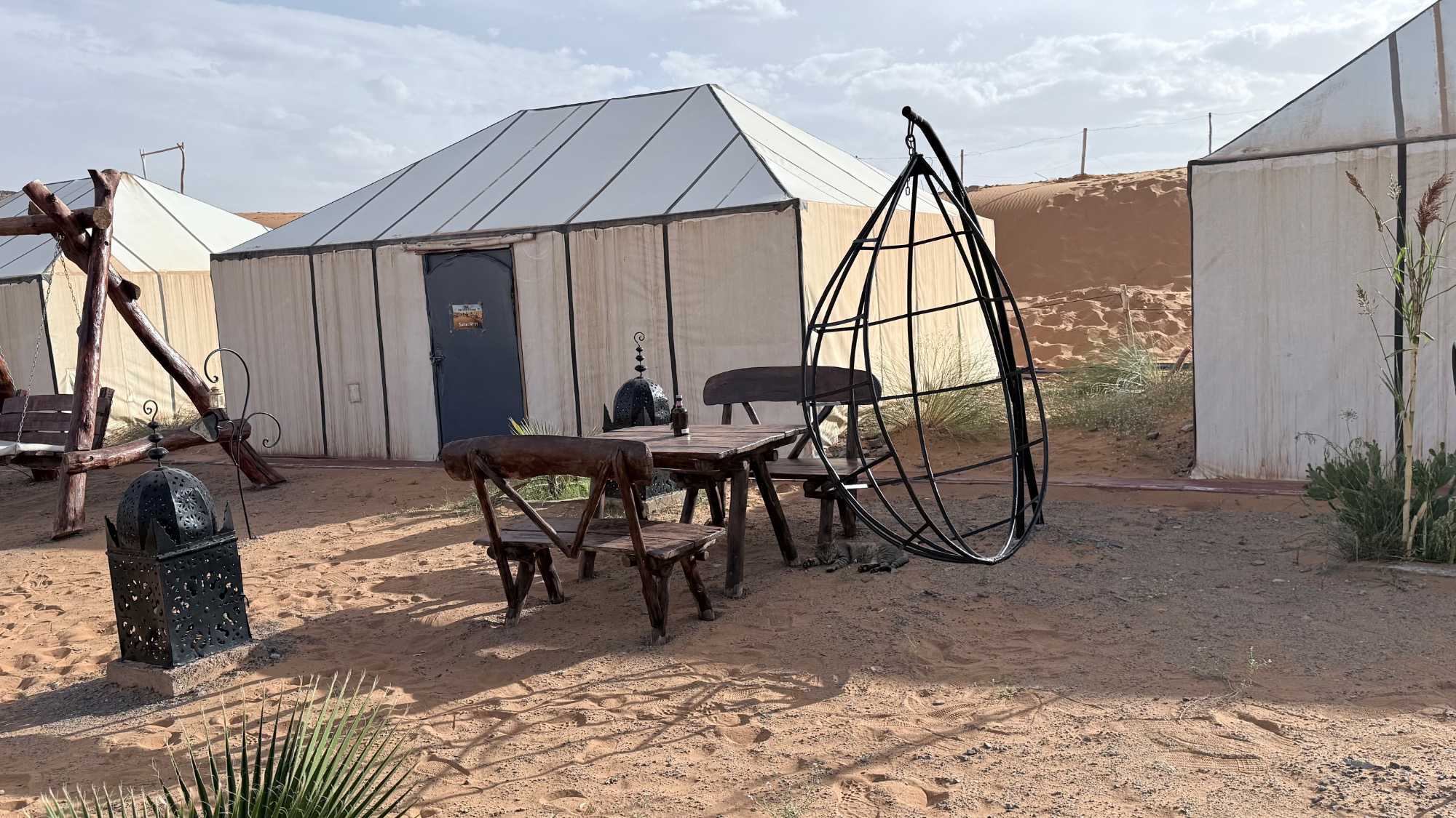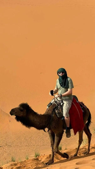 Puis la route nous a guidés jusqu’à Merzouga, où nous avons été accueillis avec chaleur pour le repas du midi. L’après-midi, baigné de soleil, nous a offert une parenthèse de douceur : les pieds dans l’eau, le corps au repos, l’esprit déjà tourné vers le désert.