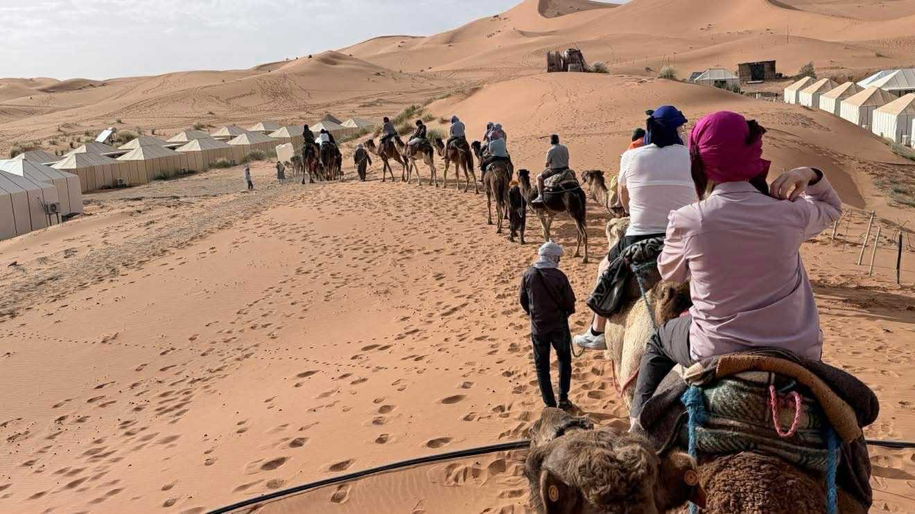 Enfin, le désert nous a enveloppés de moments inoubliables. Sous un ciel infini, nous avons regagné nos bivouacs pour une nuit douce et silencieuse, bercée par la magie des dunes.
