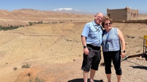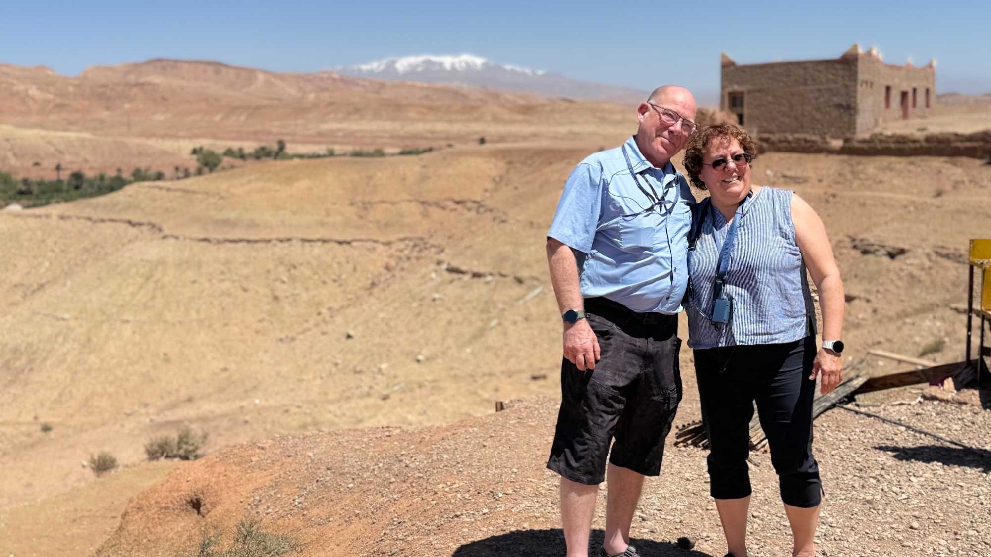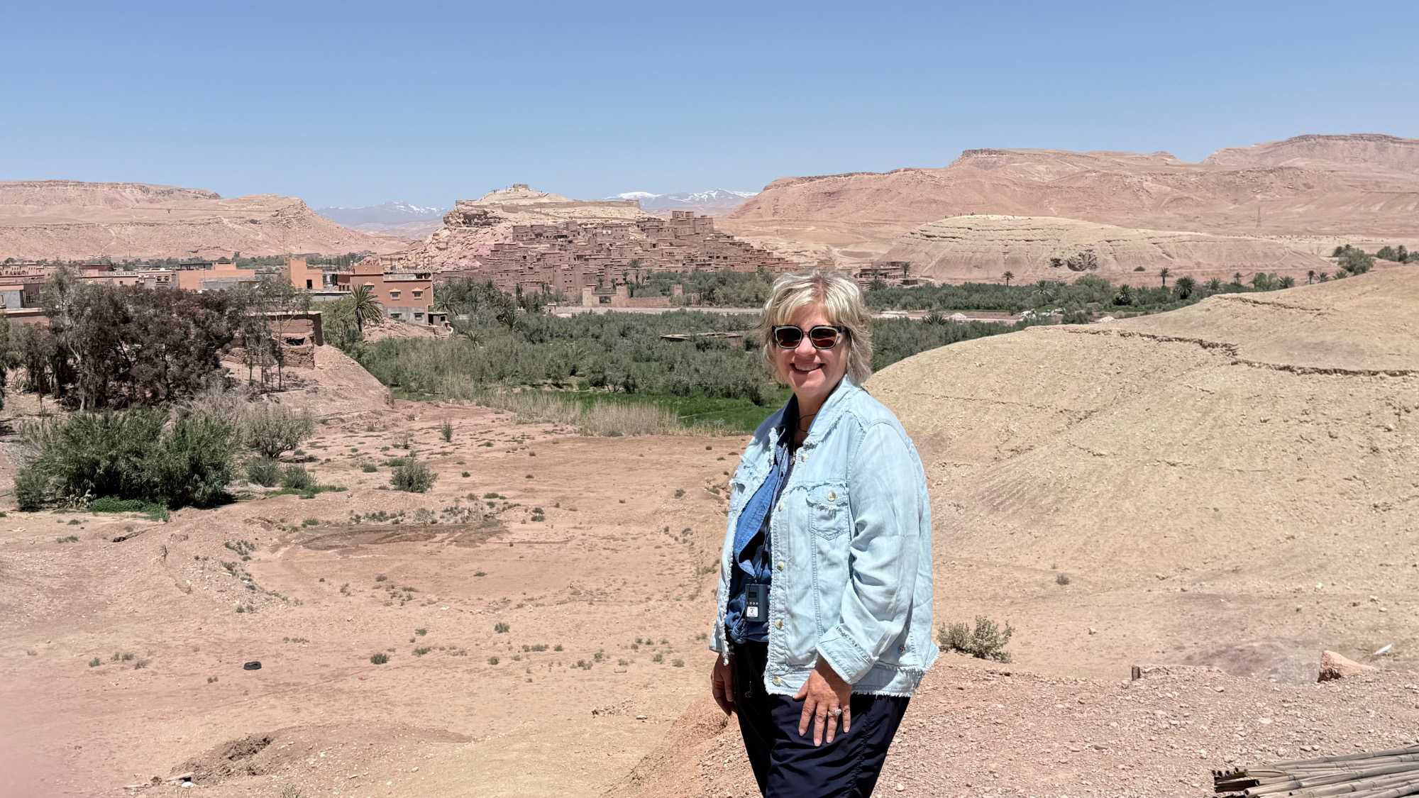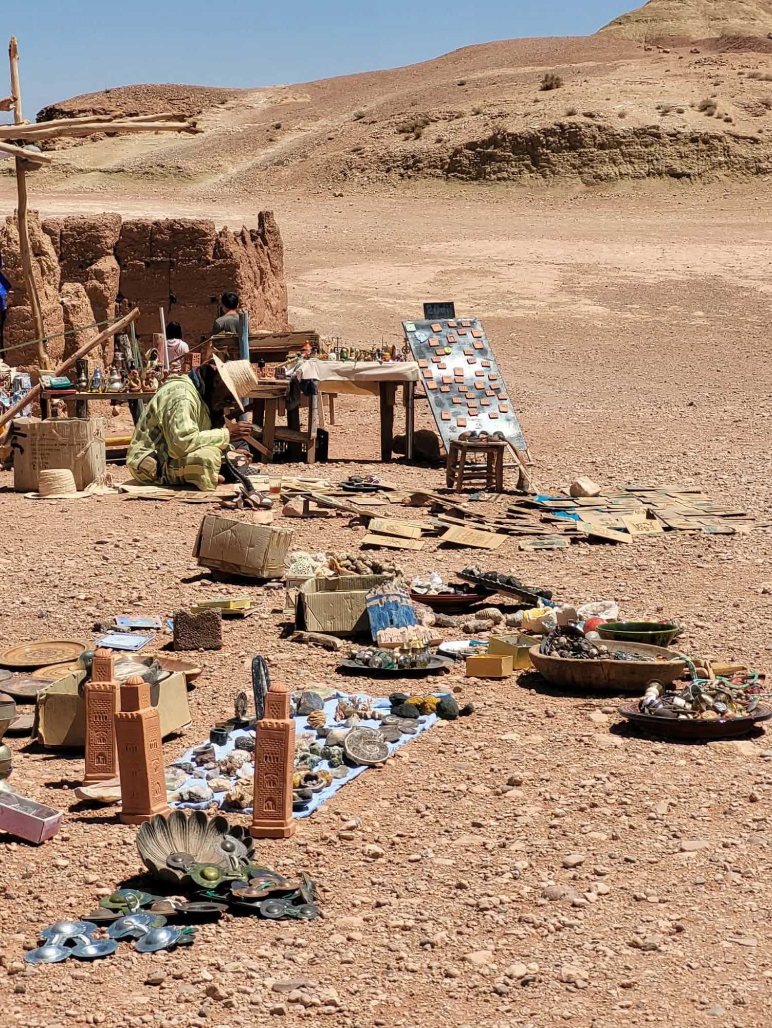 Installés sur une superbe terrasse, nous profitons d’un moment suspendu face à la splendide kasbah d’Aït Ben Haddou, admirant ses teintes ocre et son architecture de terre parfaitement intégrée au paysage.