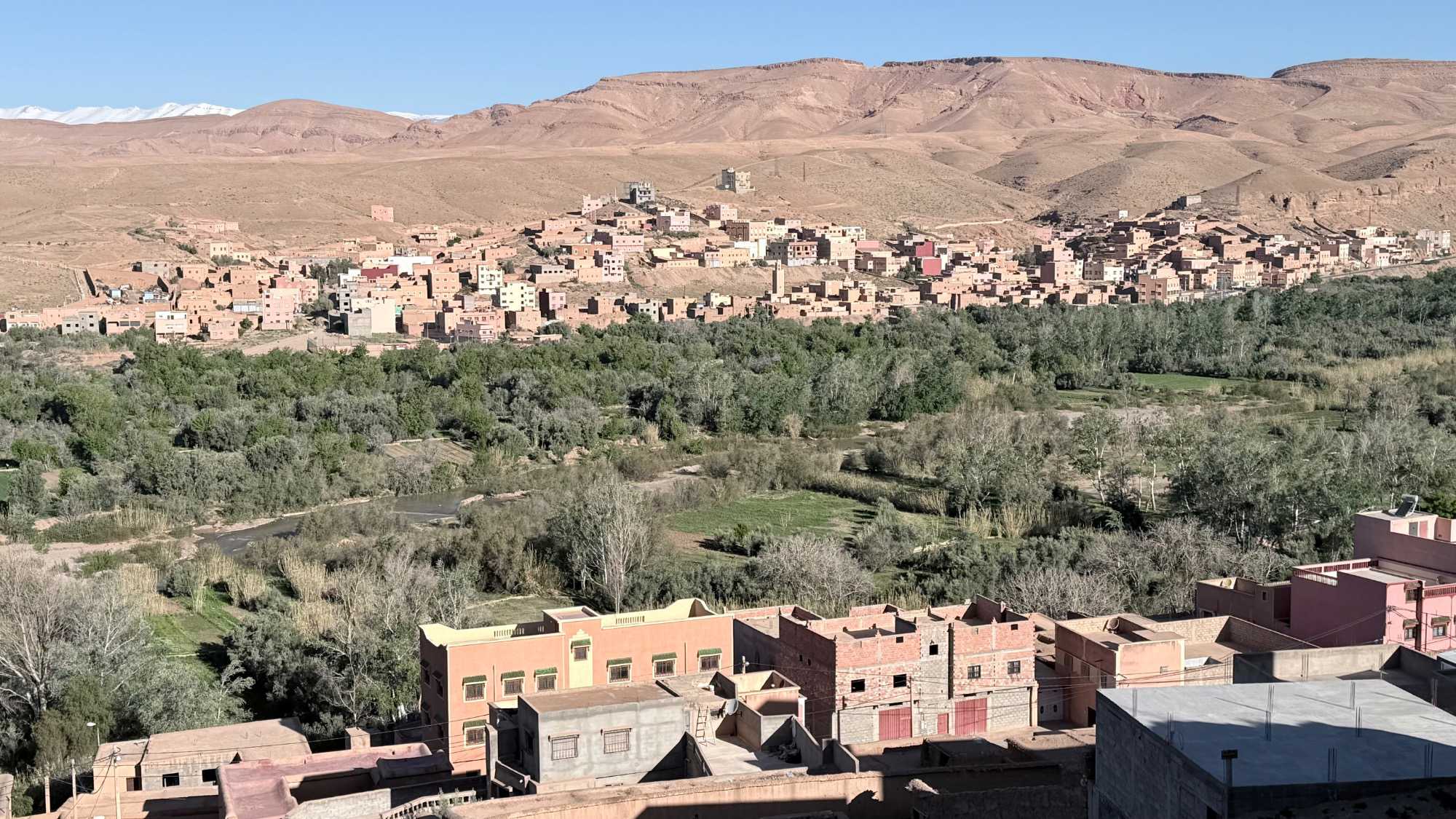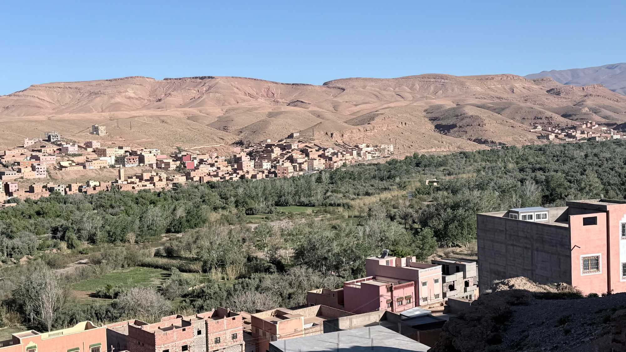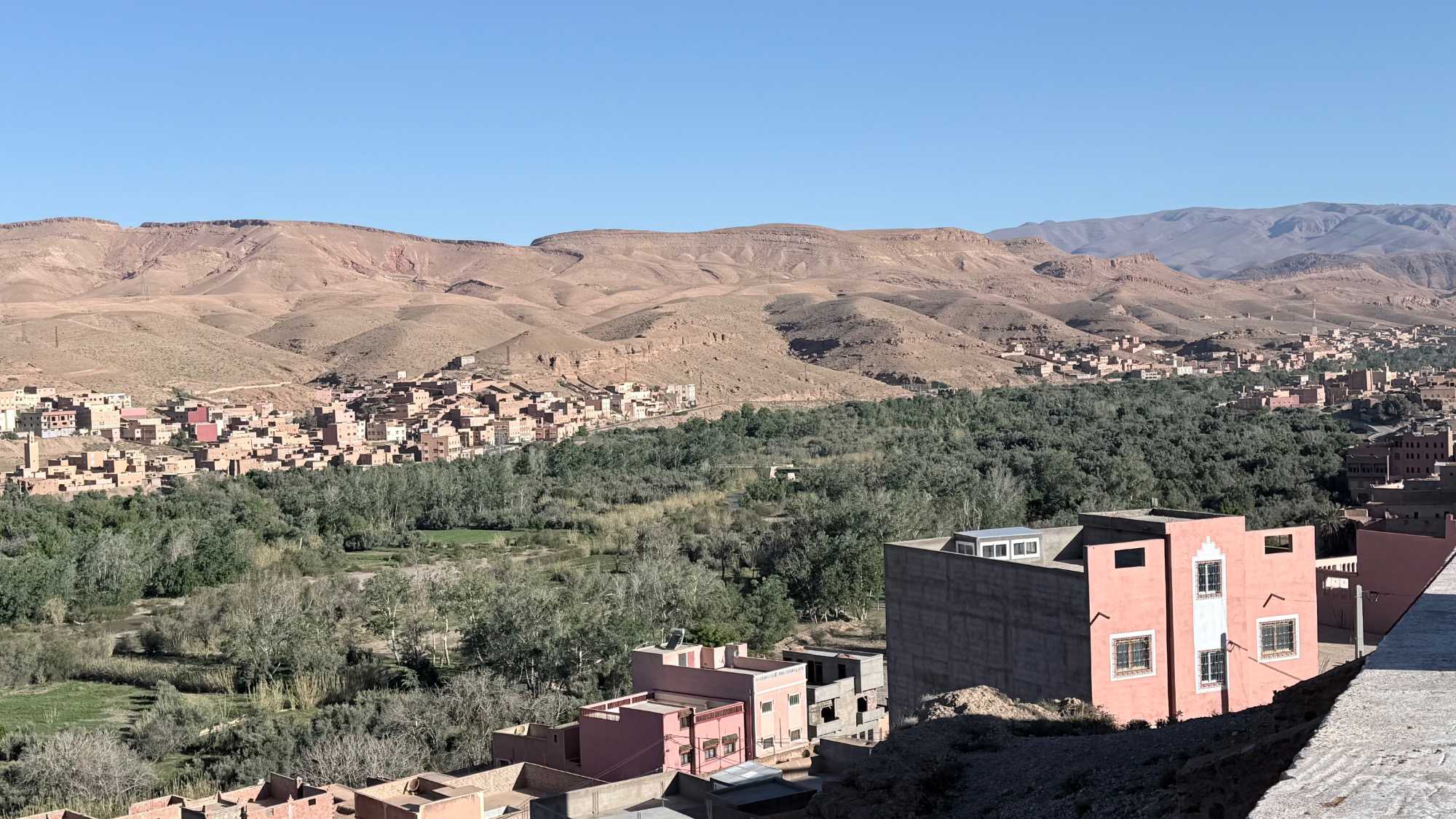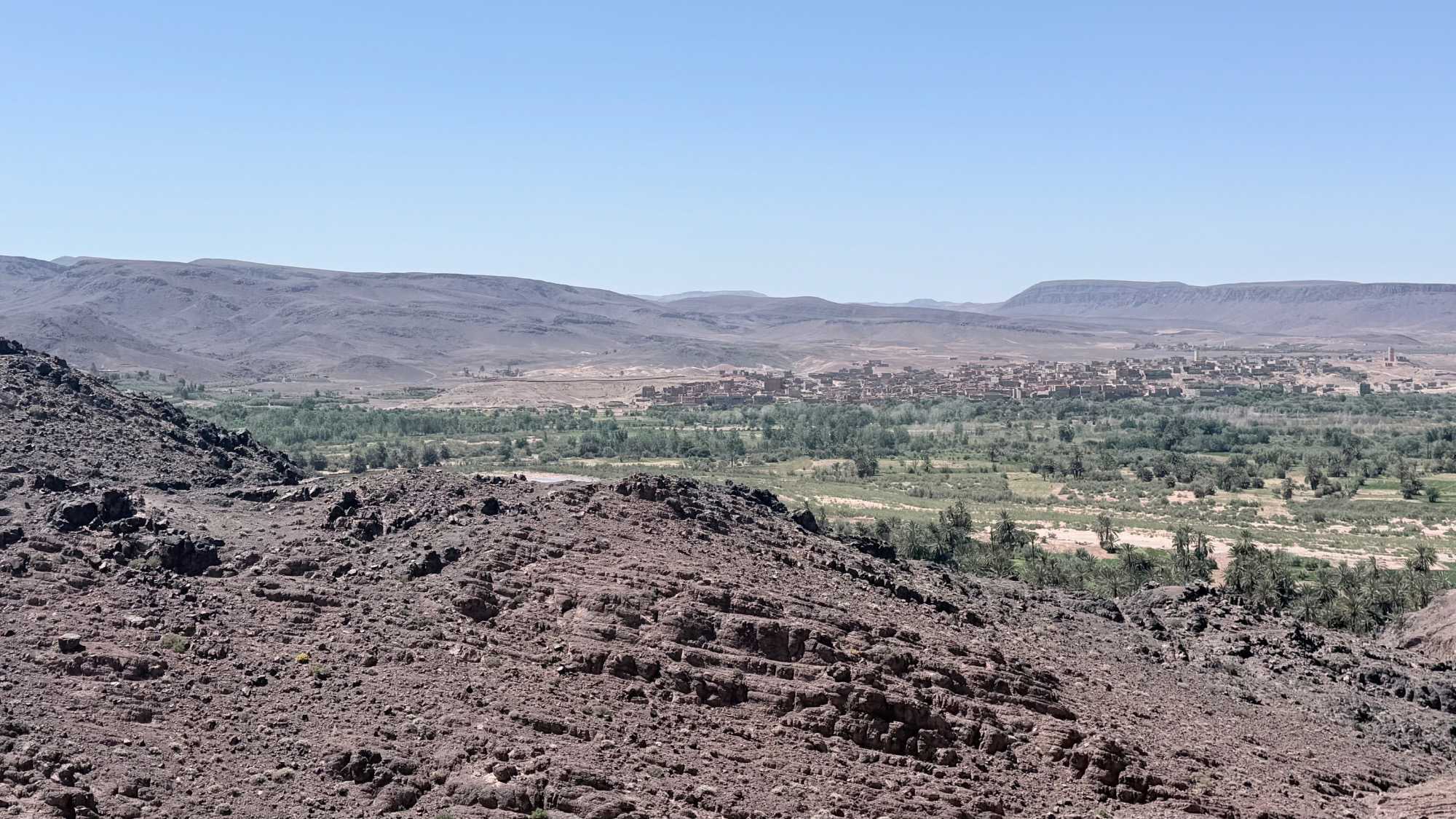 La montée se mérite, mais chaque pas en vaut la peine… et la récompense, une fois au sommet, est à la hauteur de l’effort : une vue imprenable sur la vallée, l’oued et les anciennes habitations qui semblent figées dans le temps.