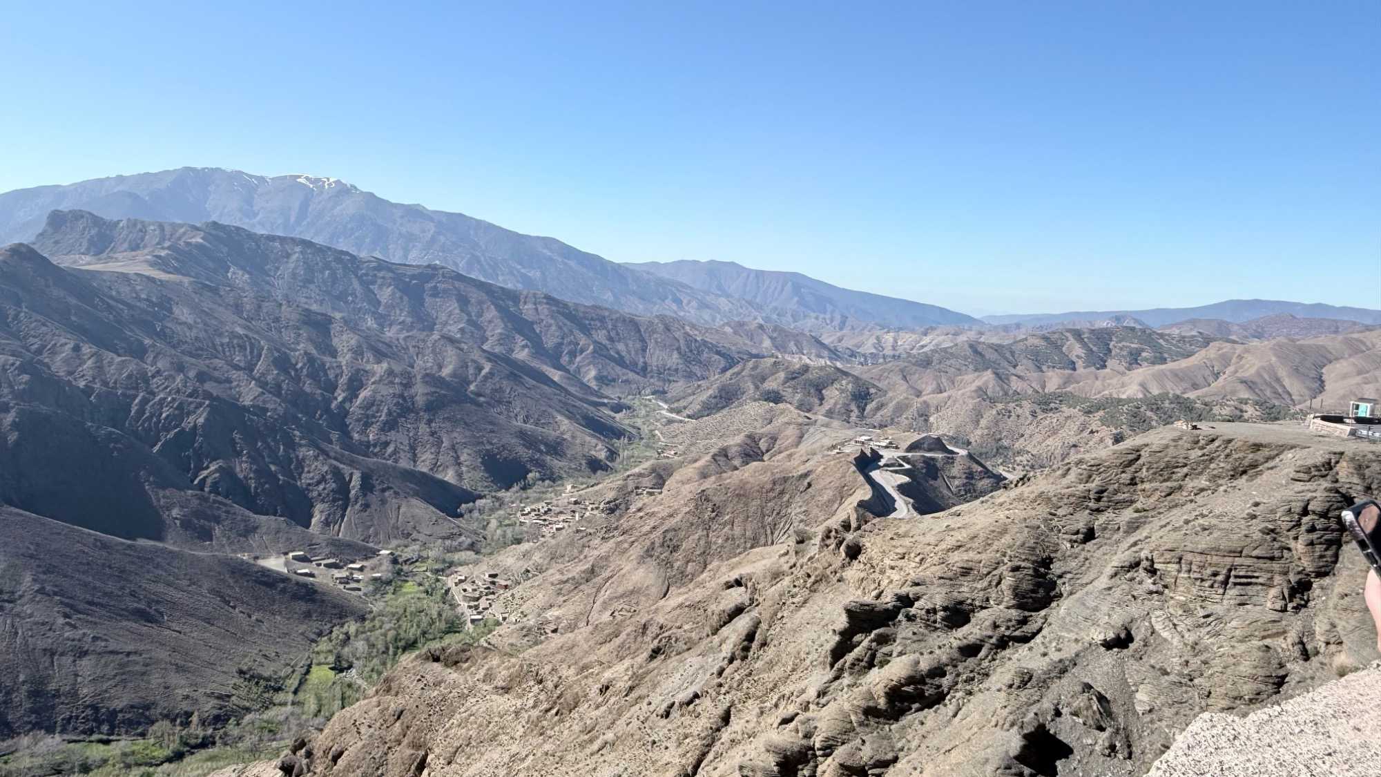 Nous poursuivons ensuite notre objectif à travers les montagnes de l’Atlas, empruntant une route sinueuse autrefois utilisée par les caravanes et aujourd’hui encore essentielle pour relier les régions du sud au reste du pays.