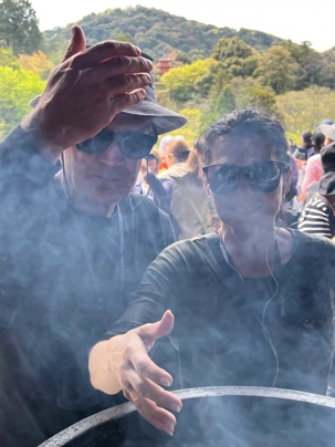 Ce matin, c’est sous un beau soleil que nous reprenons la route vers Kyoto. Nous sommes vraiment chanceux et l’apprécions beaucoup.